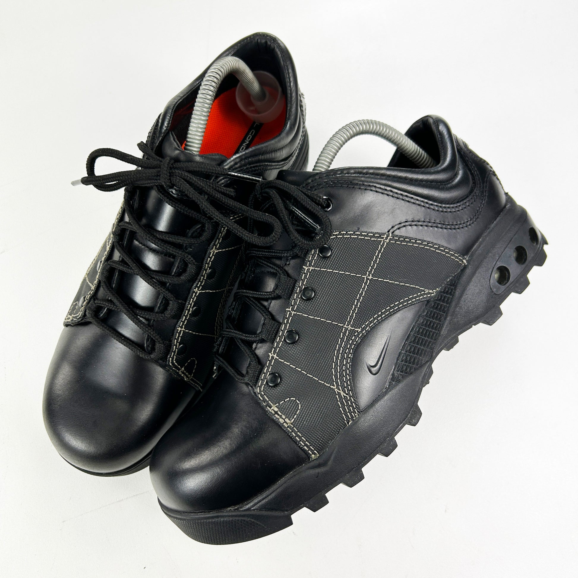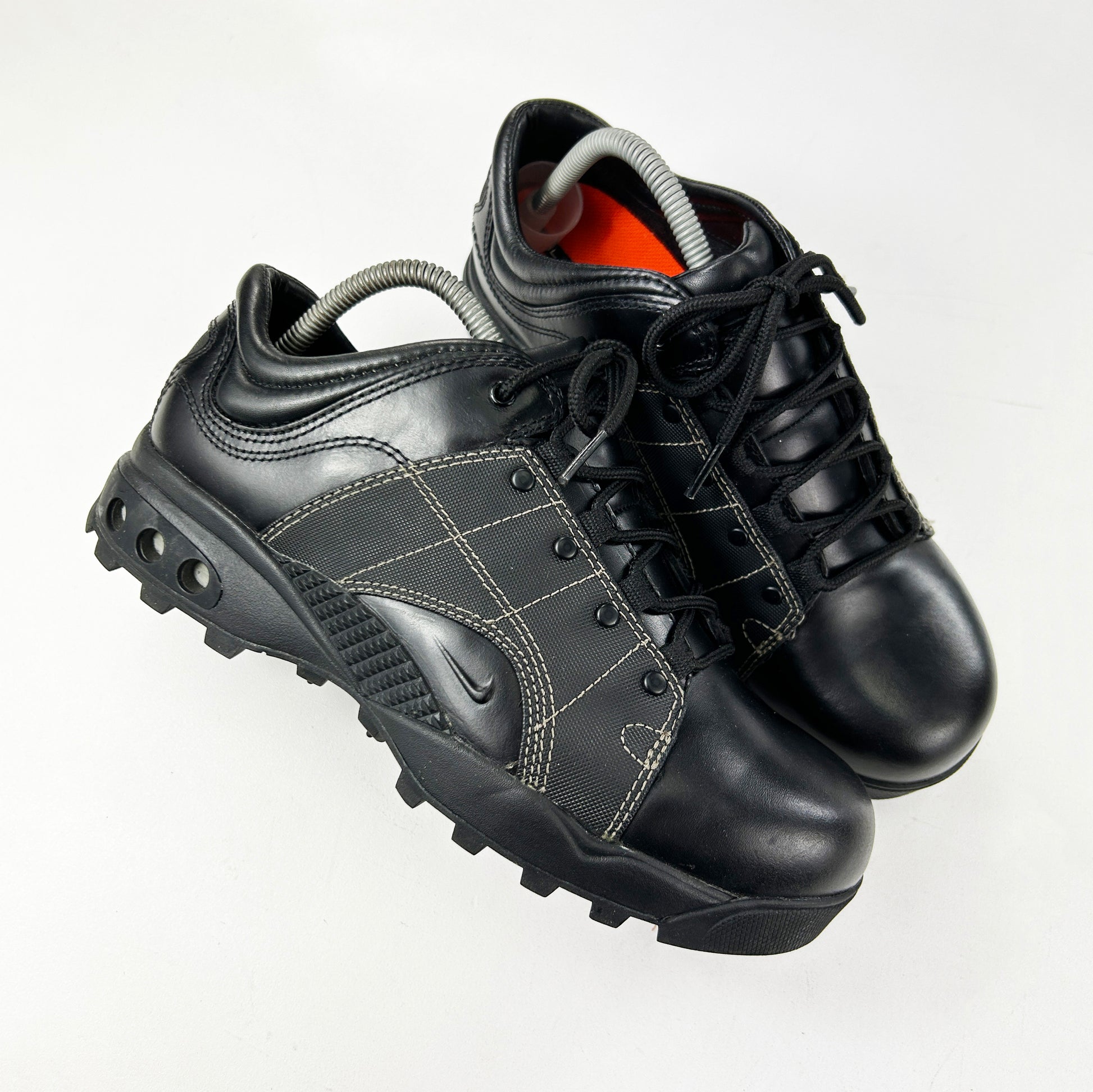 There was a period around 2001 - 2003 where ACG was really playing around with smarter silhouettes. You had boots like the ACG Air Kensington and the ACG Poway that resembled high-tech Chelsea Boots, both donning shiny leather make ups. The Adventurist Low comes from the same era and also dons the same smart, shiny black leather. However, this model is of course more on the technical side of things with the durable nylon panel seen on the lateral and medial sides, the Humara-esque air bags and the aggressively lugged soles. This is certainly an ACG we've never seen before, meaning it must be rare! Especially in this condition: brand new in the box. Grab a rarity! Please read policies before purchasing.
