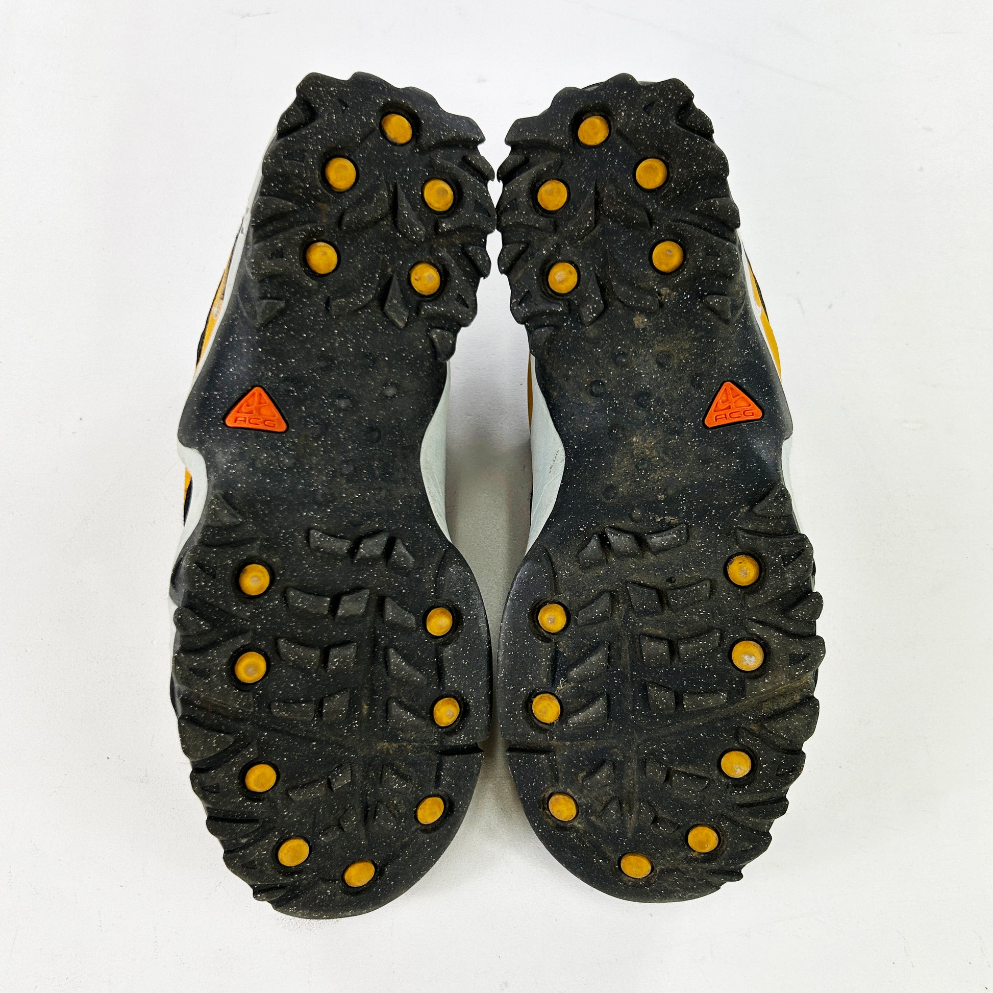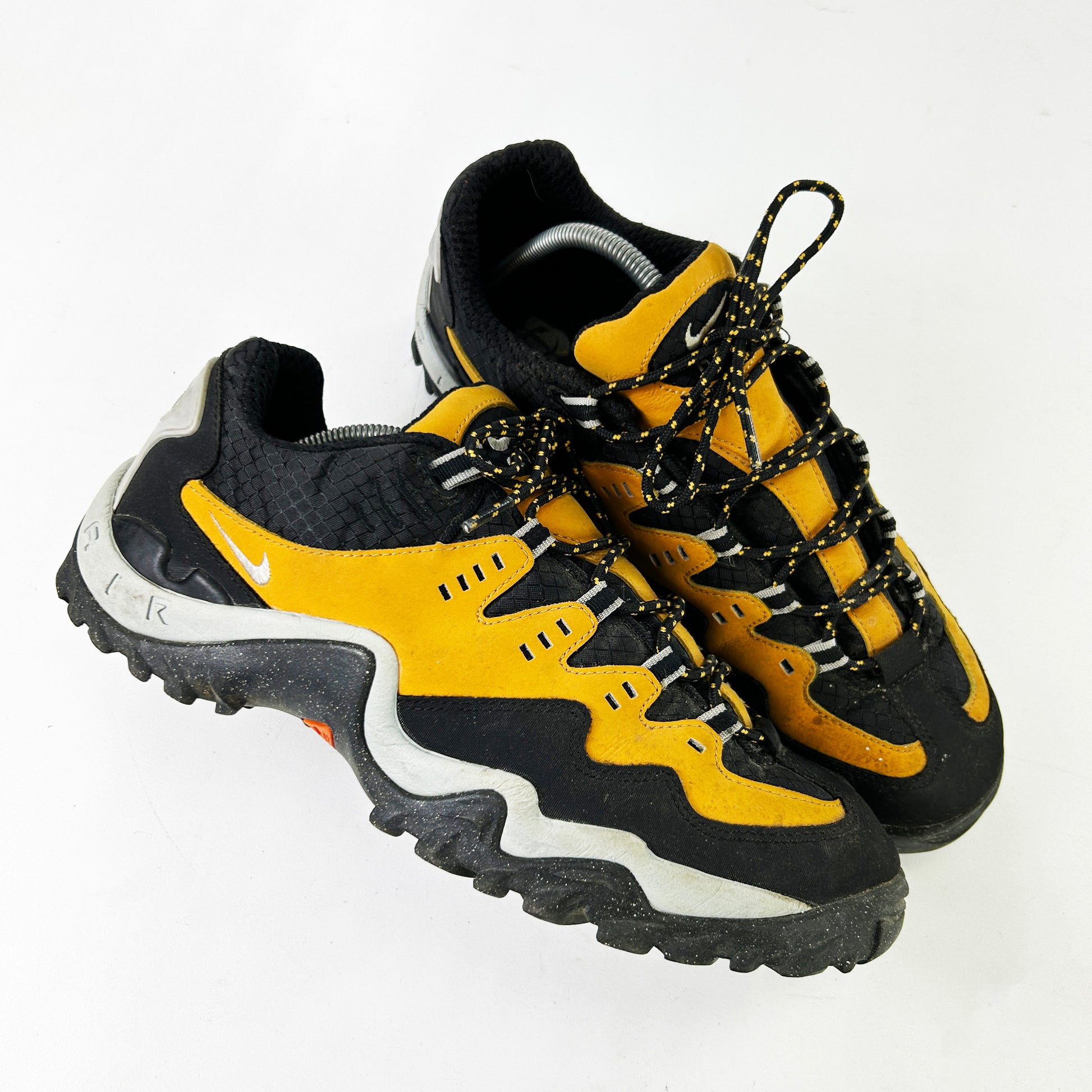 The Gasp was a popular late 90s ACG model which, in our opinion, looked way ahead of their time. They released in mid and low iterations in a broad variety of colourways. Other notable models from the time were the Lahar and the Mada - both of which have recently seen retros. This low pair features a textured mudguard in black, yellow synthetic suede panelling, black ripstop underlays and a black Re-Grind outsole. Overall great condition considering their age, with some minor age related marks.