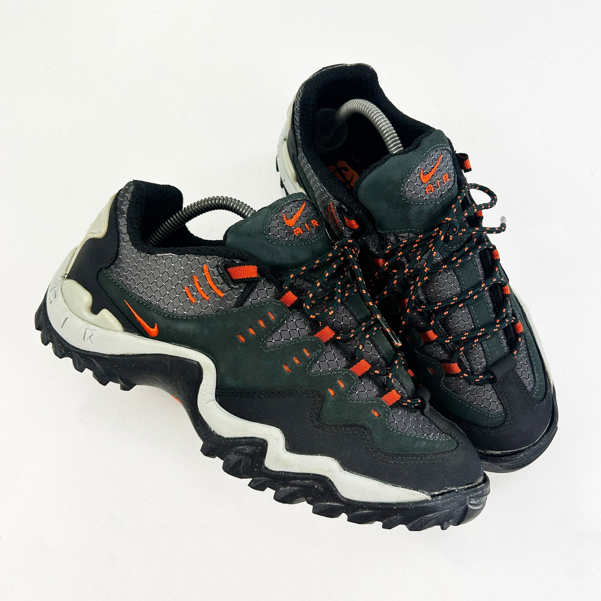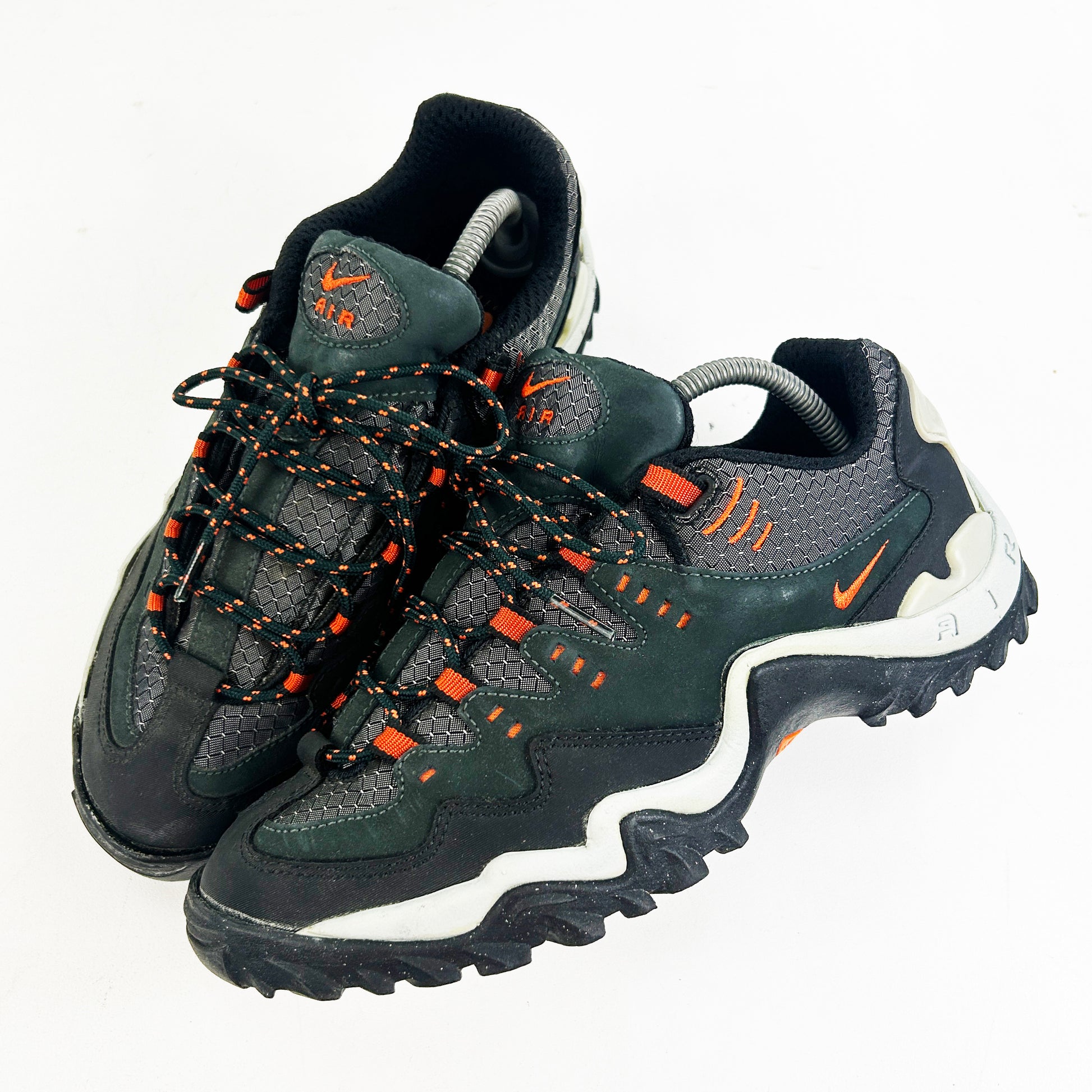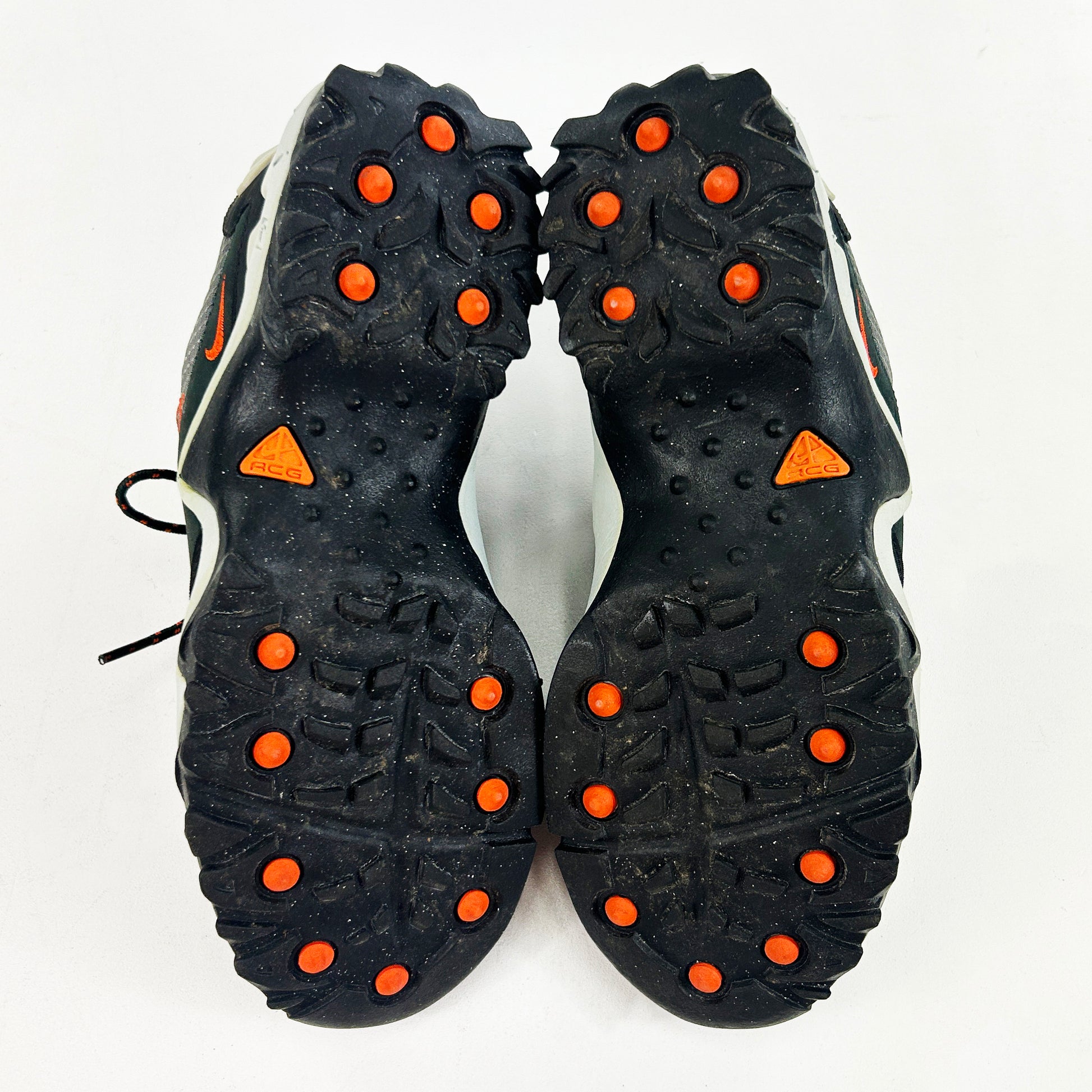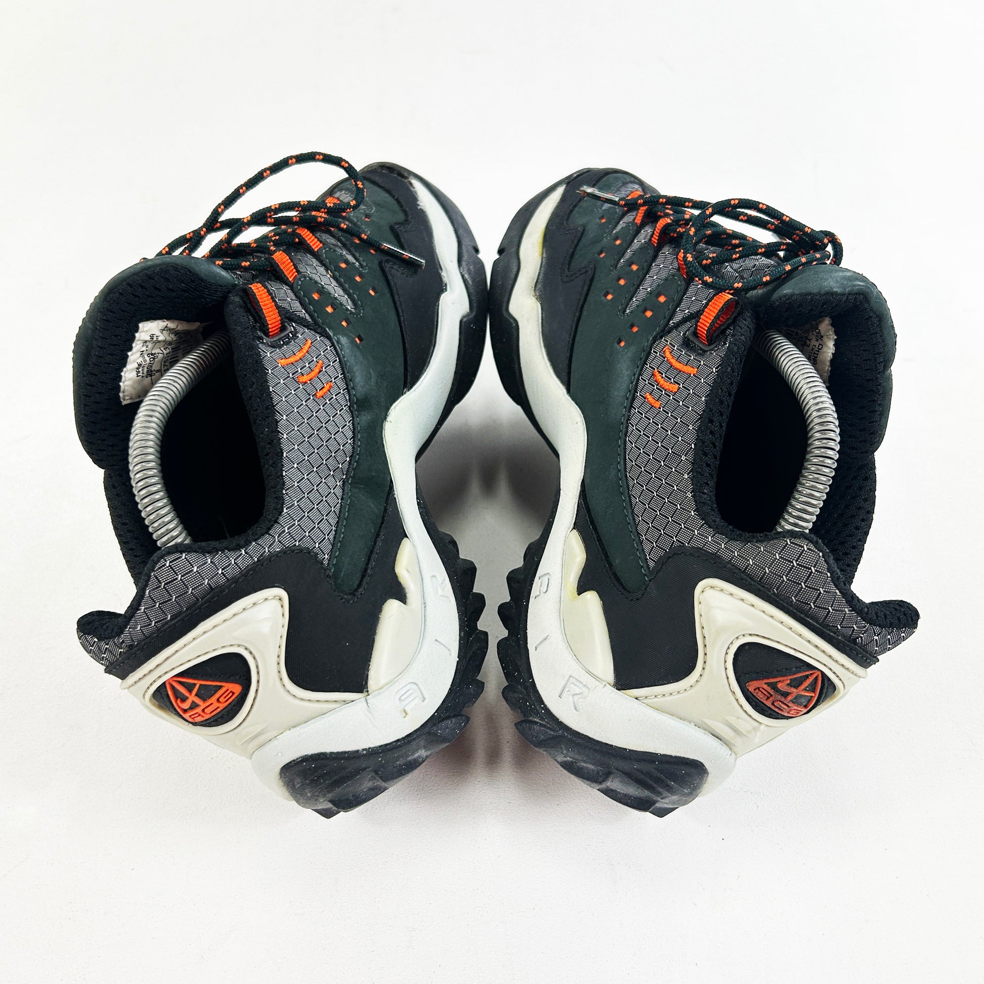 The Air Gasp was a popular late 90s ACG model which, in our opinion, looked way ahead of their time. They released in mid and low iterations in a broad variety of colourways. Other notable models from the time were the Lahar and the Mada - both of which have recently seen retros. This low pair features a textured mudguard in black, dark green suede panelling, grey ripstop underlays and a black Re-Grind outsole. Uppers are in great condition, could do with some glue at the toe caps/elsewhere however midsoles and outsoles themselves are holding up well. Comes with OG box! See policies before purchase.