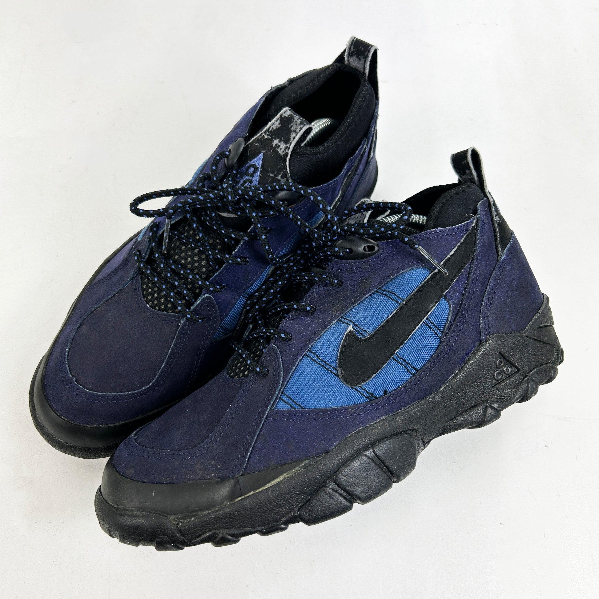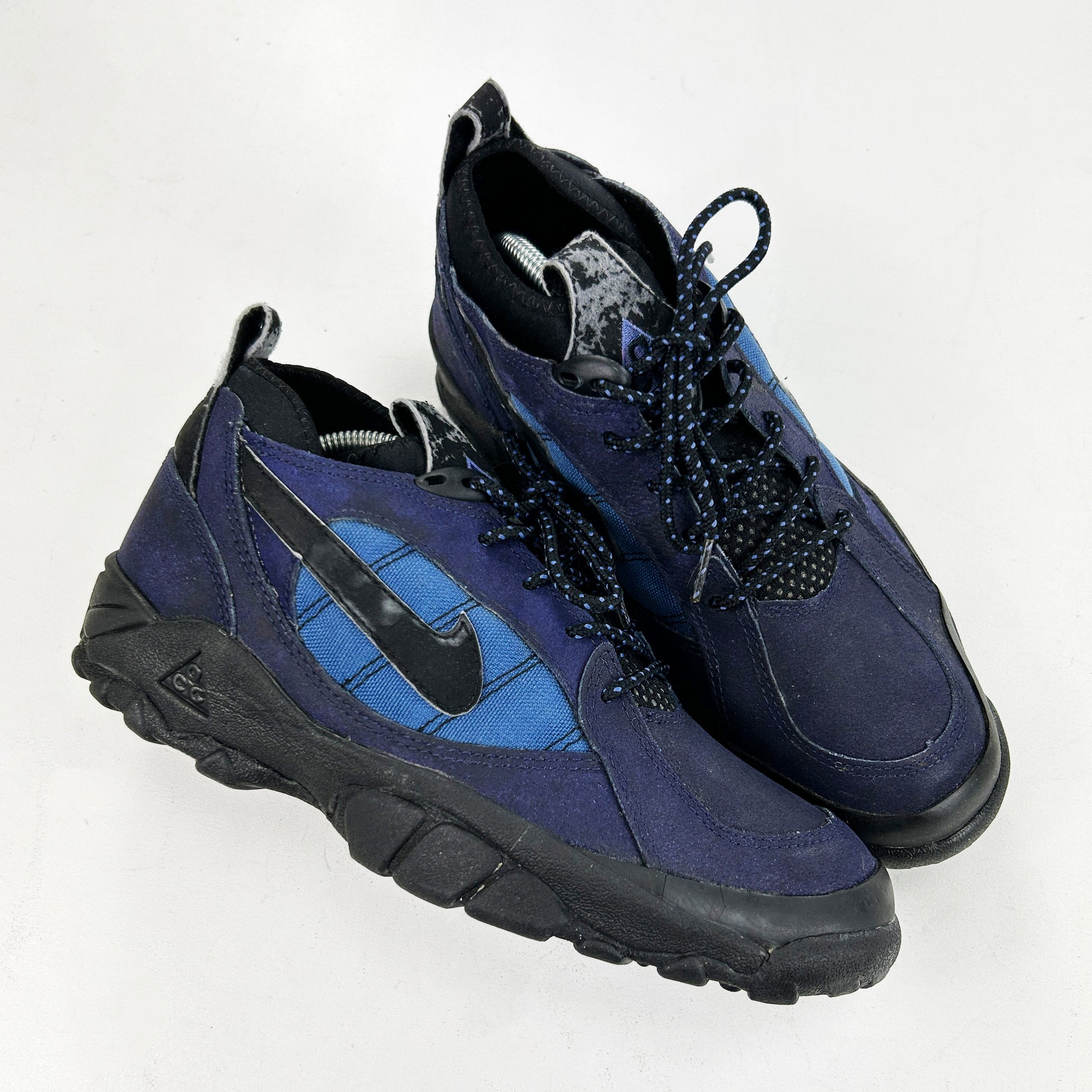 The Rete is a prime example of rare, ACG obscurity. As far as I'm concerned, there's only one other trace of this shoe online anywhere (albeit with no information), I do however have an inkling that this is a Steve Mcdonald (@mcsteve) design. This mid-top hiker has an upper which is mostly comprised of what I think is a coated synthetic suede, with contrast nylon underlays and a neoprene sock liner. Incredibly rare chance to own a pair of these that have been worn sparingly and come with OG box. See policies before purchase, enquire via email with further queries.