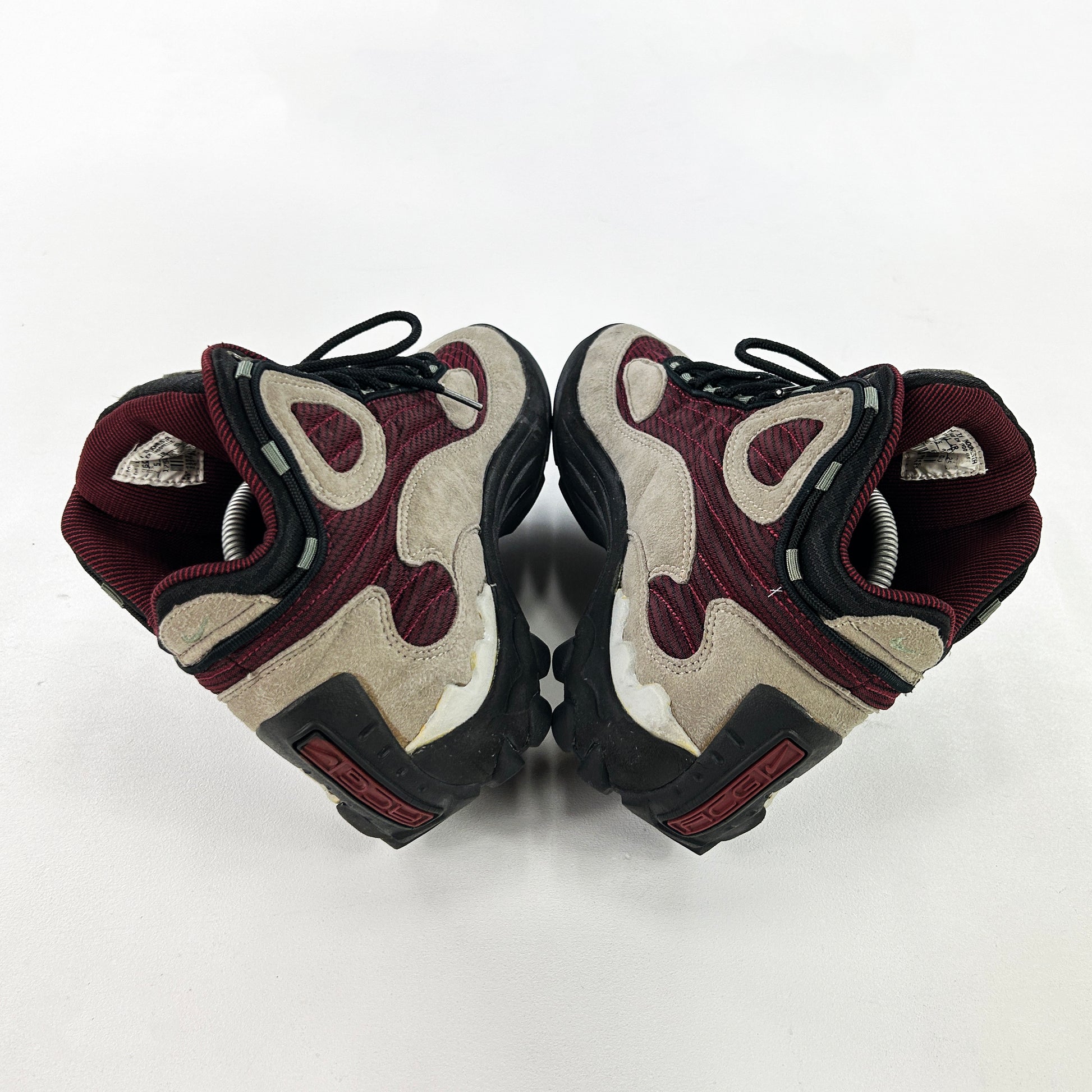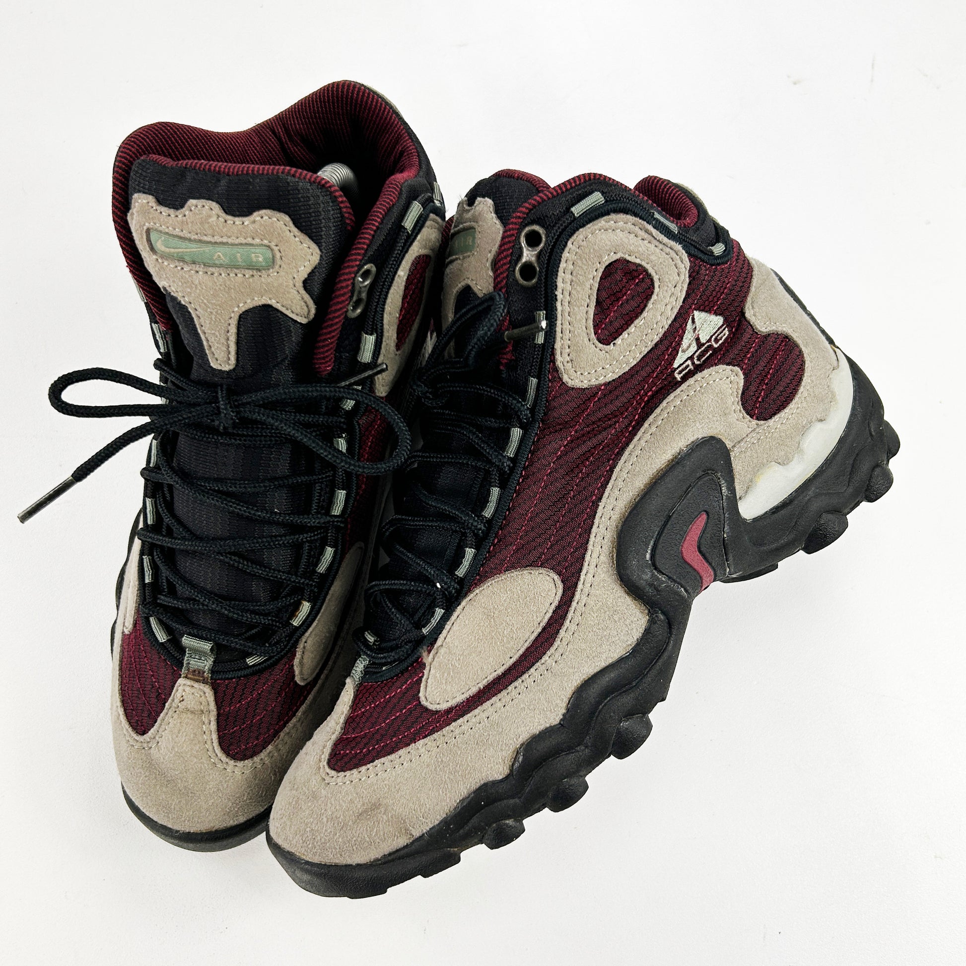 The Talus was included in Gary Warnett's '25 best Nike ACG models of all time' - and for good reason! In his words "The Air Talus looked more like a basketball shoe than a trail design and its low equivalent just seemed ugly, but this one made that midfoot shank the star. Despite that apparent bulk, these were made for hiking, trail running and biking – that same outdoor cross training thinking that birthed the Mowabb half a decade earlier. The more rugged Tumac from the following year couldn’t match these. If you like the Talus, you’re probably a Zoom Tallac appreciator too." A fantastic shoe, often forgotten! These remain in good vintage condition and come with OG box. See policies before purchase.