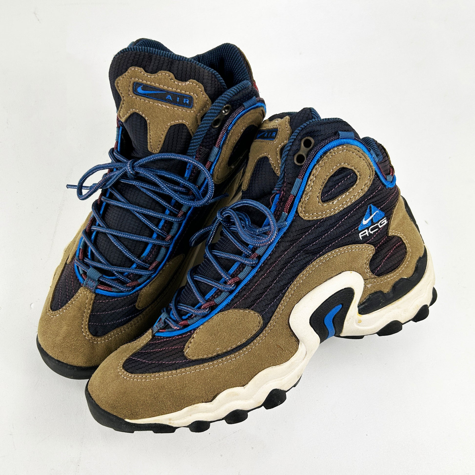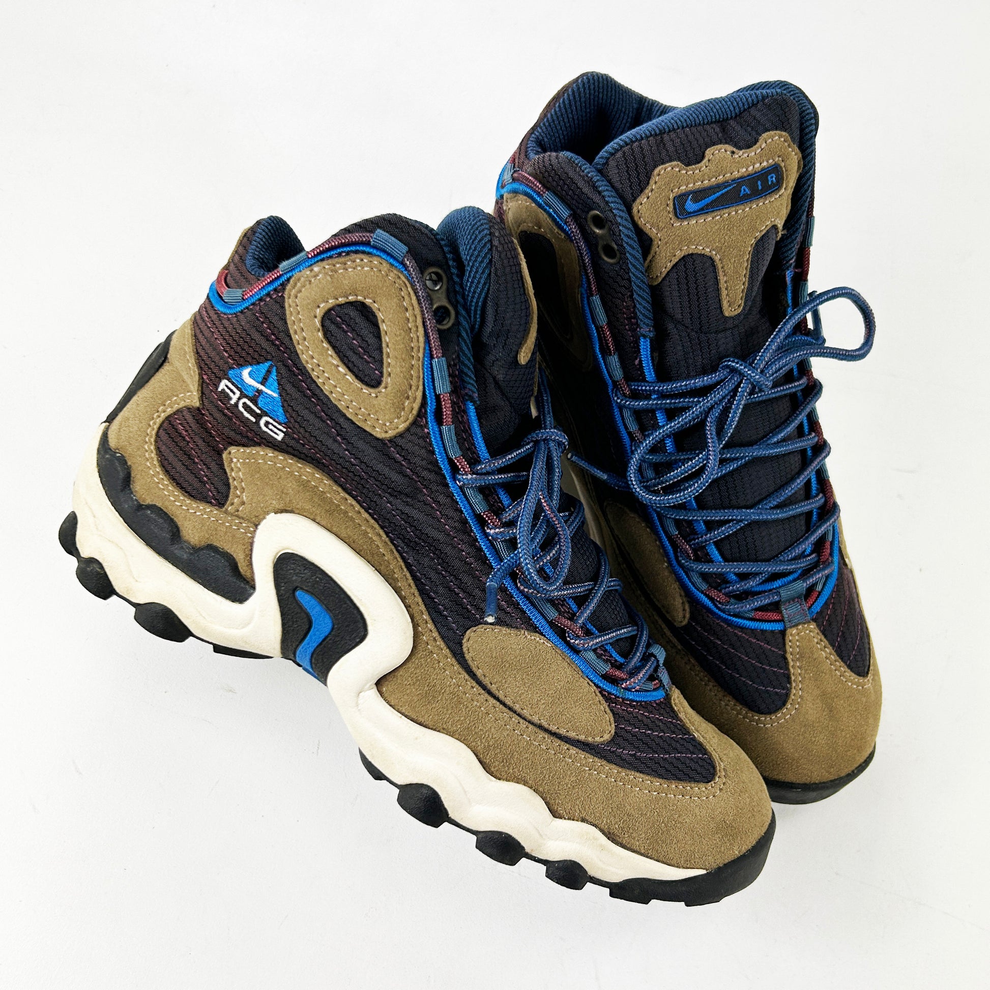 The Talus was included in Gary Warnett's '25 best Nike ACG models of all time' - and for good reason! In his words "The Air Talus looked more like a basketball shoe than a trail design and its low equivalent just seemed ugly, but this one made that midfoot shank the star. Despite that apparent bulk, these were made for hiking, trail running and biking – that same outdoor cross training thinking that birthed the Mowabb half a decade earlier. The more rugged Tumac from the following year couldn’t match these. If you like the Talus, you’re probably a Zoom Tallac appreciator too." A fantastic shoe, often forgotten! These have been worn once or twice, and come with OG box. See policies before purchase.