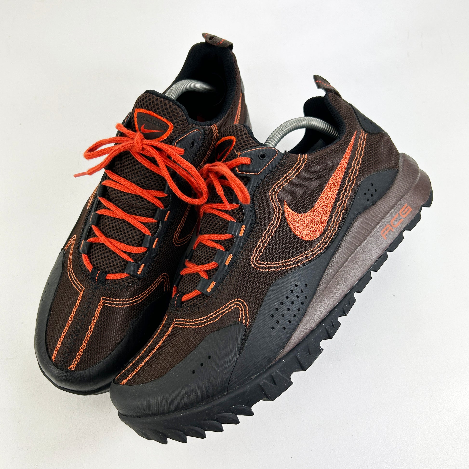 The ACG Wildedge, designed by @mcsteve, released in a large variety of vibrant colourways, with both mid and low iterations. The high-tech, seamless upper features a full mesh composition, bonded rubber panels, contrast stitch detailing and a breathable mesh tongue. Here we have one of the best colourwas, with a dark burgundy mesh upper, black rubber overlays, burgundy midsole and hits of red stitching. Probably worn once or twice, honestly could pass as new. Comes with box.