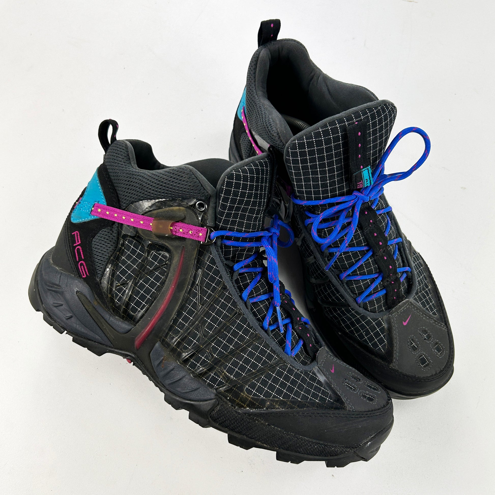 An extremely technical, lightweight and versatile hiking boot which, at the time, was unlike anything else on the market. Designed by @peterfogg, not to mention this is his favourite shoe he ever designed! Honestly the list of technology and details on this pair is so extensive the character limit on insta captions wouldn't even cope. These remain in amazing condition. The blue/purple colourway is particularly hard to come across. See policies before purchase.