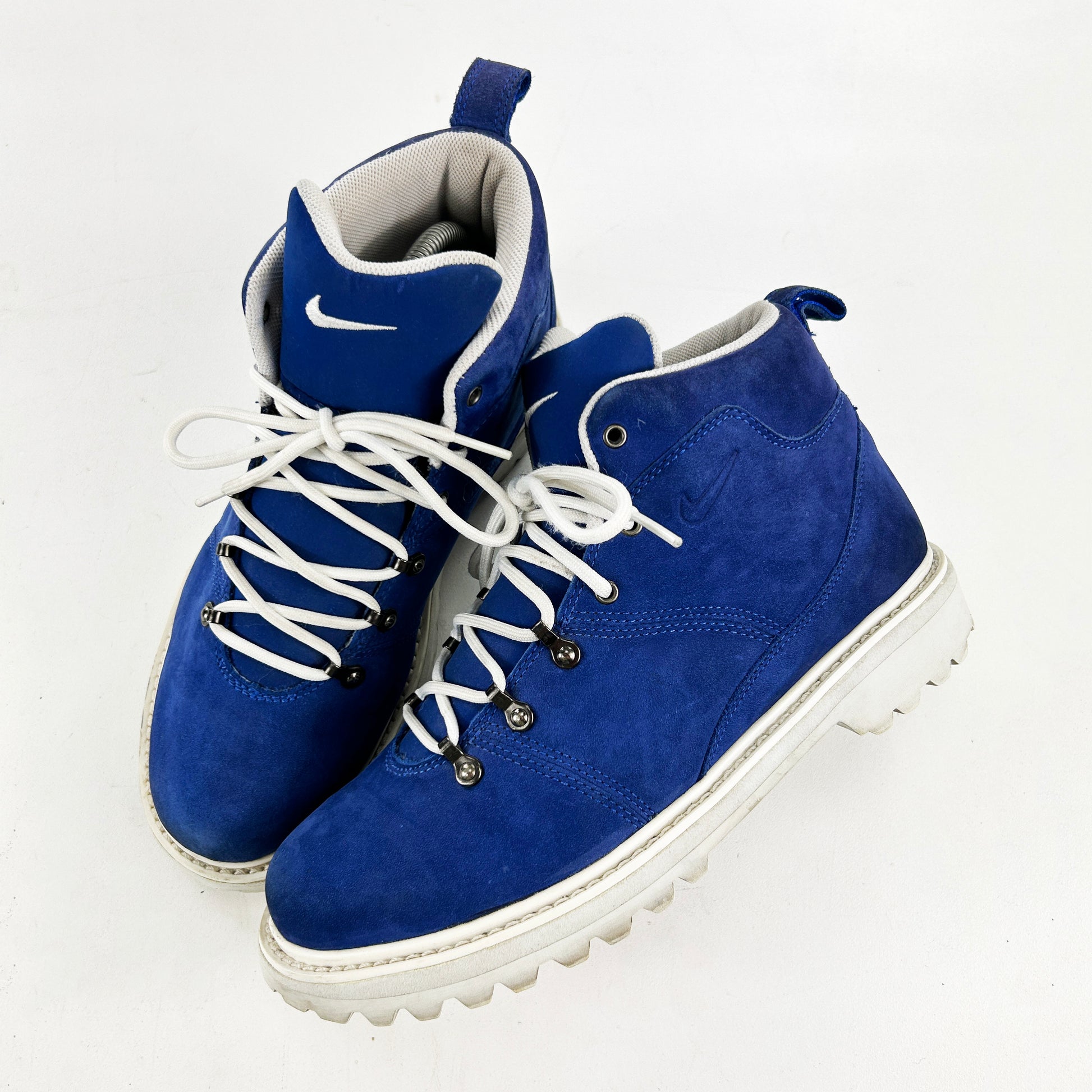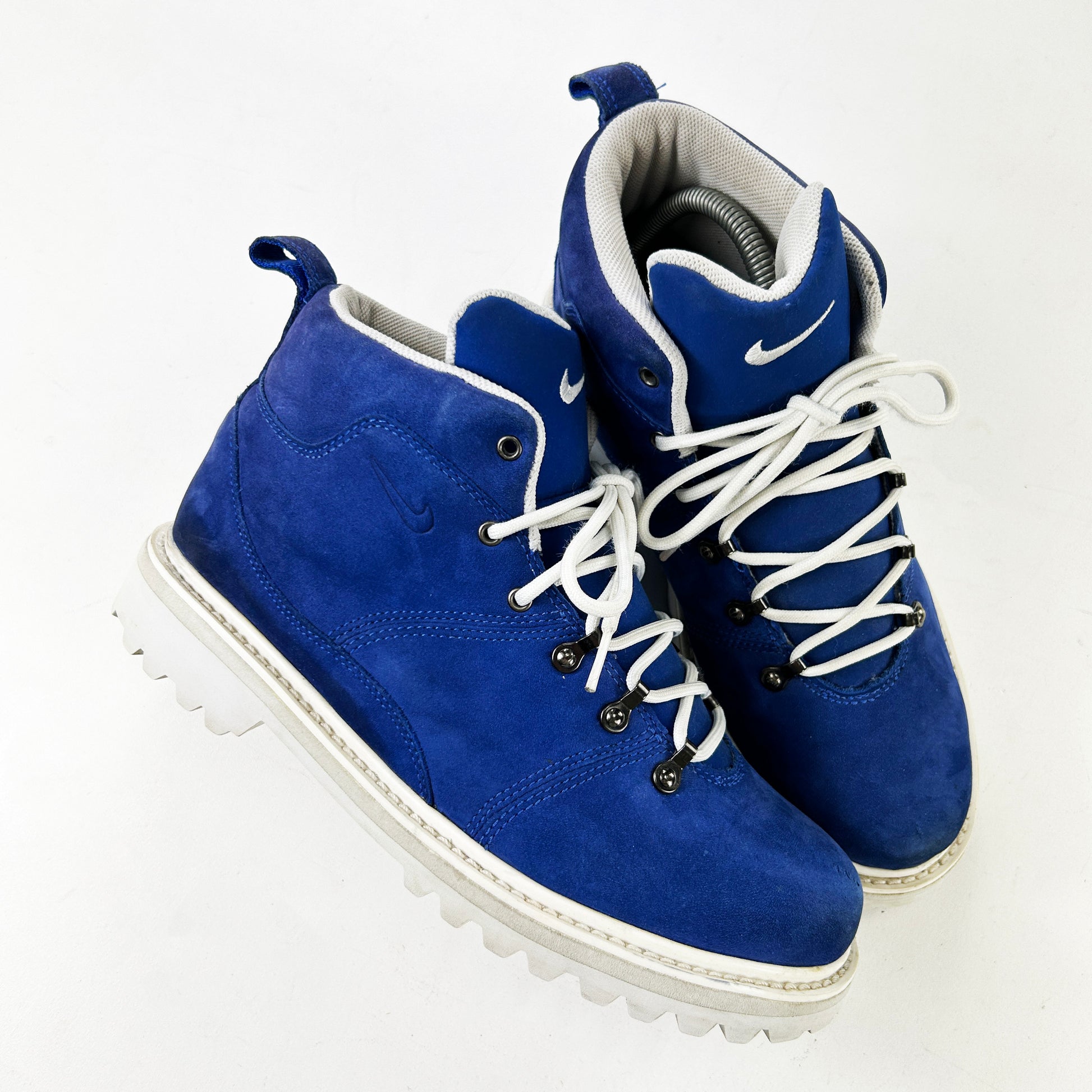 1998 was a great year for Nike footwear design in general, especially Nike ACG – the era of footwear from 1997 to 2003 is a time that really excites us. ACG were pumping out tonnes of different styles over this period from high tech, ahead of the time technical trail running shoes to more toned down, tradition walking boots like the ones we have for sale here. The sheer number of models released over this time makes it difficult to ID some models and this pair was no exception - there was no info online about these whatsoever, but we got there in the end. The Apprentice Mid was a wmns model, that released in a variety of more vibrant colours. These remain in amazing condition! See policies before purchase. Very rare.