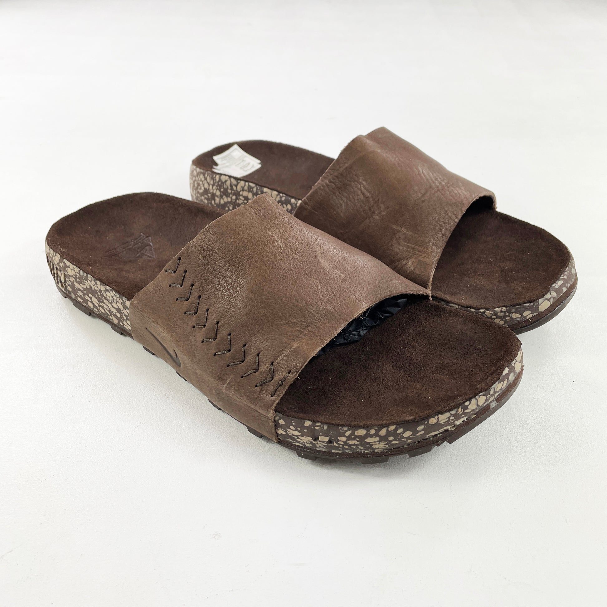 Back again with more Nike Considered obscurity, this time in the form of the Tekapo Slide from 2007. The silhouette features a minimal construction, with a rubber and cork like blend making up the midsole, embossed and stitched leather straps for the forefoot, more embossing at the heels and one of our favourite outsoles, the waffle-esque considered outsoles that feature on many of the considered models. Worn sparingly, great condition and very rare!