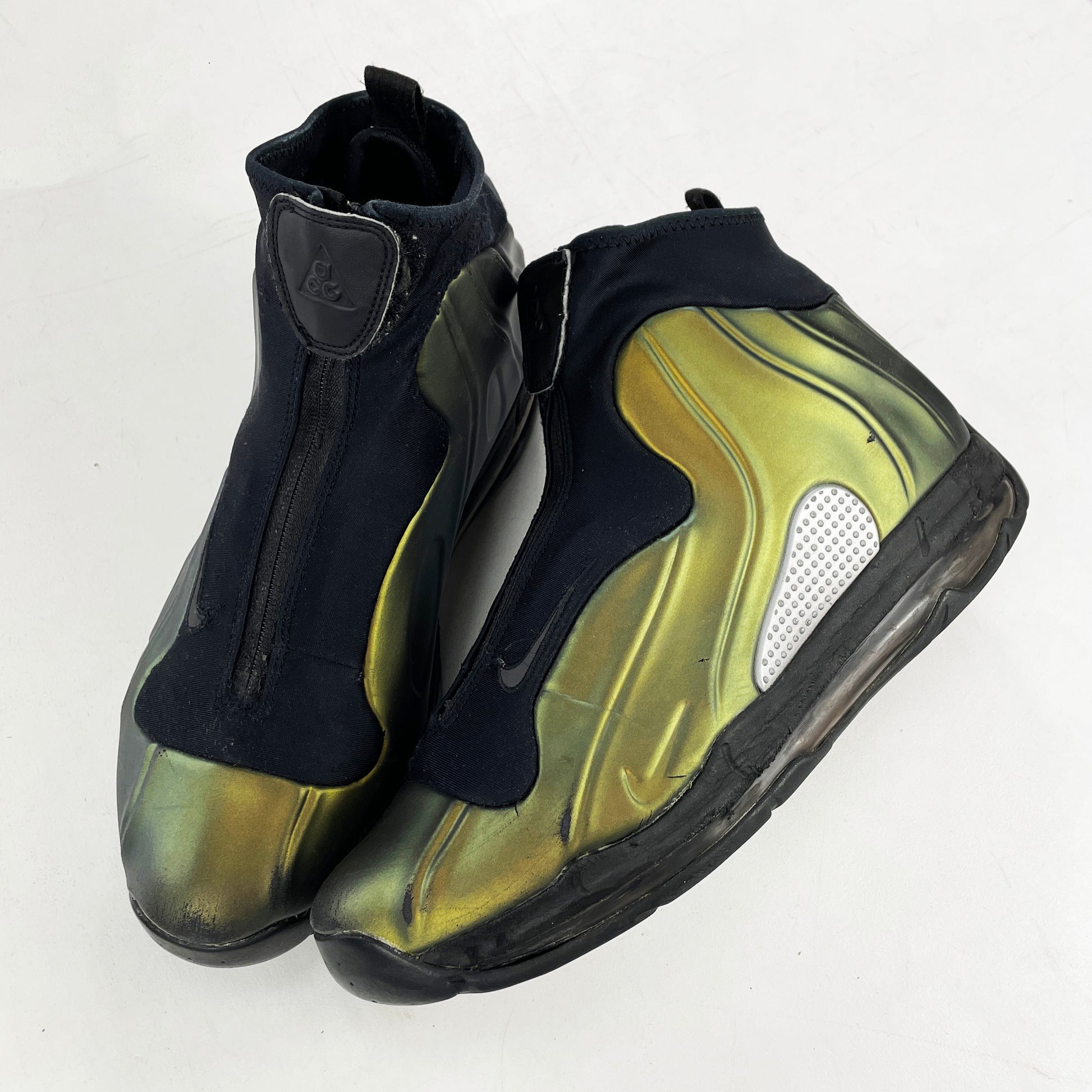 As far as modern ACG models go, this might be up there with the craziest. The i-95 Posite Max got its name from the Interstate 95 Highway that spans the Eastern seaboard from Florida to New England. This metallic gold colourway released first, shortly followed by an all black pair. They feature a whole heap of Nike technology including a Total Air Max sole unit, a Foamposite upper and a completely sealed, stretch shroud with waterproof zips covering the laces. Back in 2012, you'd want all the tech you could get to compensate for $250 rrp! These have seen use, but are still ready to be worn and enjoyed.
