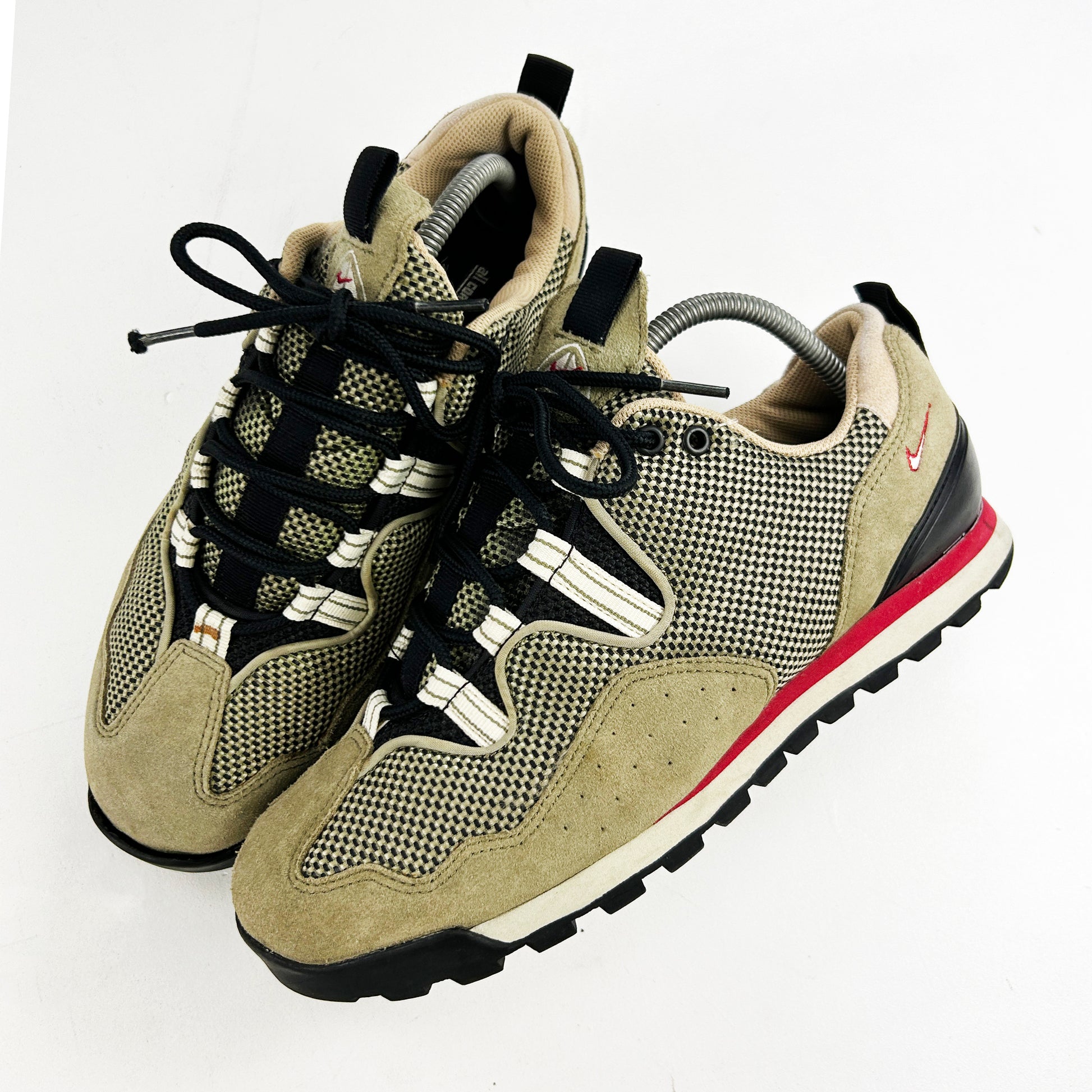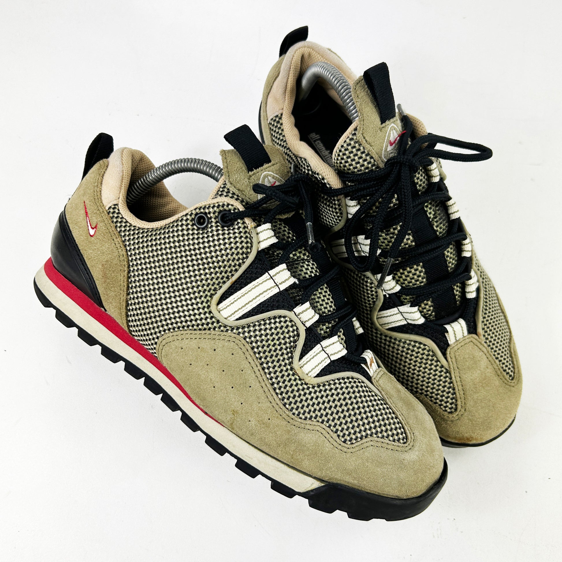 The Lava Dome was one of the original models in the initial ACG lineage. SInce then, it has been reinvented and reinterpreted in to upwards of 10 different variations. This one though, the 3, has got to be our favourite, and one that doesn't come up for sale enough. Low top, detail heavy and with some stand out colourways, the Lava Dome 3 could easily be mistaken for a skate shoe from the same era. Vintage condition, with some age related marks. Heel seems to have been reglued by previous owner, toe caps peeling. Please read policies before purchase.