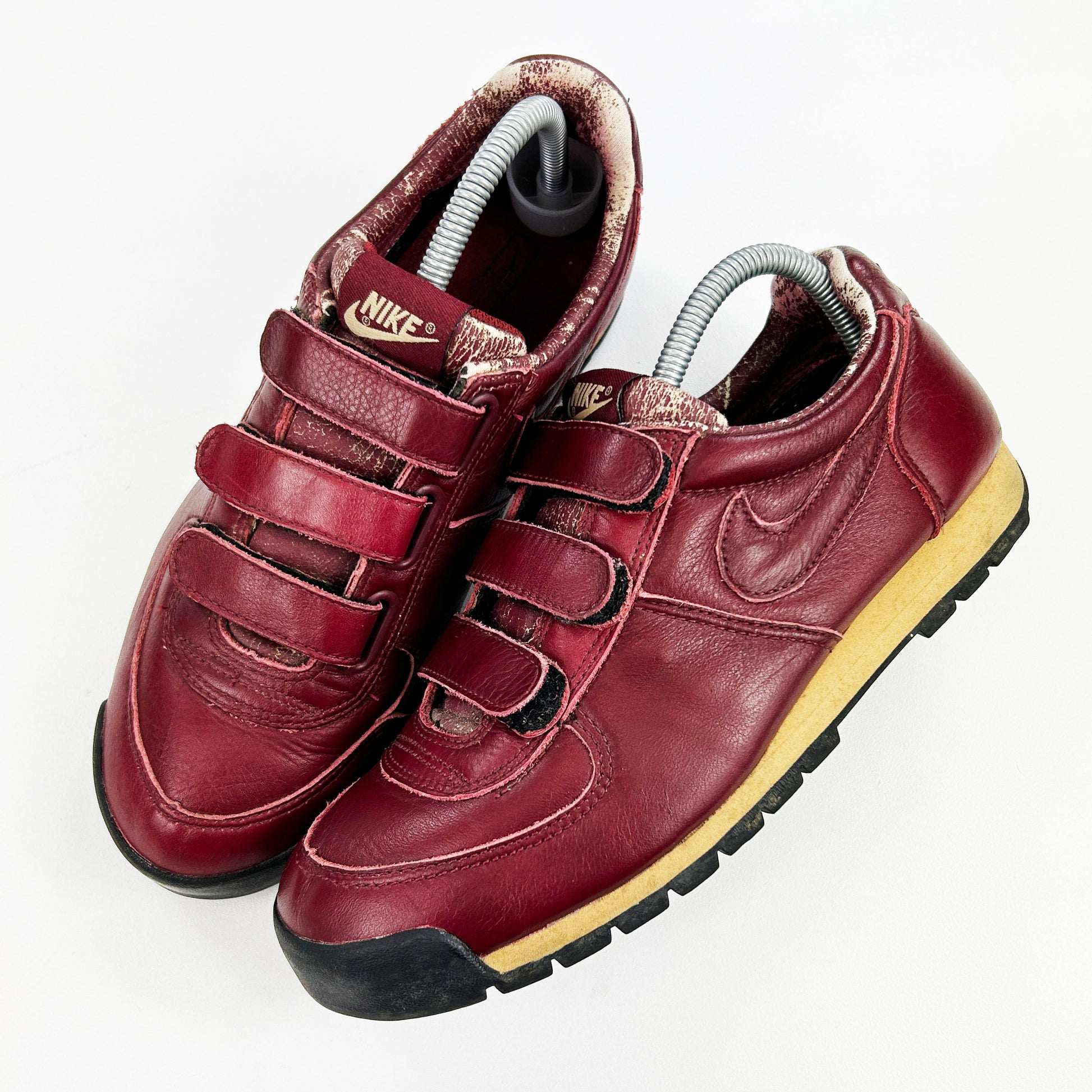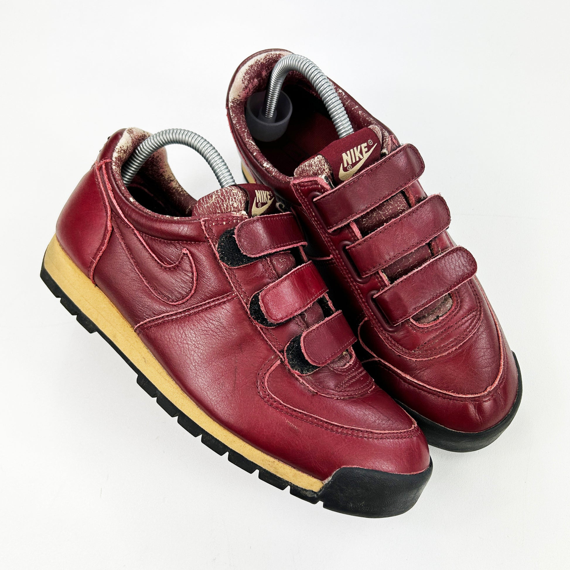 The Lava Dome is often seen as the birth of Nike ACG. The Lava Dome released in 1981 and was shortly followed by the release of the Magma and Approach in 1982. Nothing screams ACG staple more than the Lava Dome with its incredibly simple yet effective design. In 2002 this velcro iteration released as a wmns model, featuring a full candy red leather upper paired nicely with a dark beige midsole and a black outsole. Been looking for a pair of these for so long, glad to finally list a pair up for sale. The leather has aged beautifully, and the patina on the heel lining is spot on. Incredibly rare!