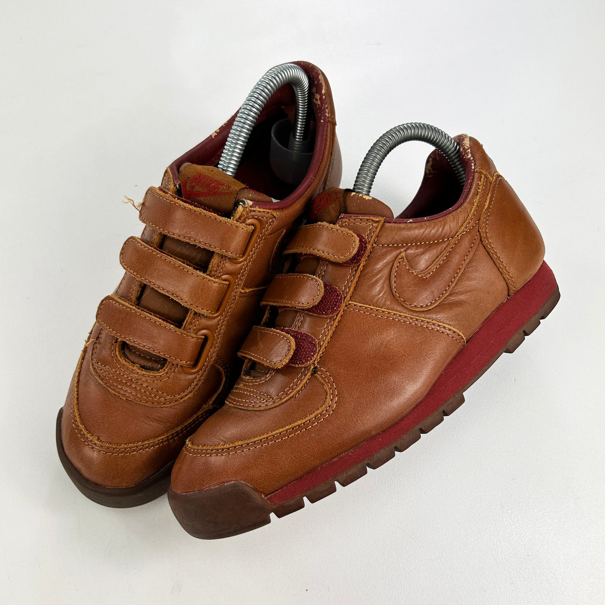 The Lava Dome is often seen as the birth of Nike ACG. The Lava Dome released in 1981 and was shortly followed by the release of the Magma and Approach in 1982. Nothing screams ACG staple more than the Lava Dome with its incredibly simple yet effective design. In 2002 this velcro iteration released as a wmns model, featuring a full grain brown leather upper paired nicely with a dark red midsole and a brown outsole. Happy to have another pair of these hit the site so soon after the last pair.