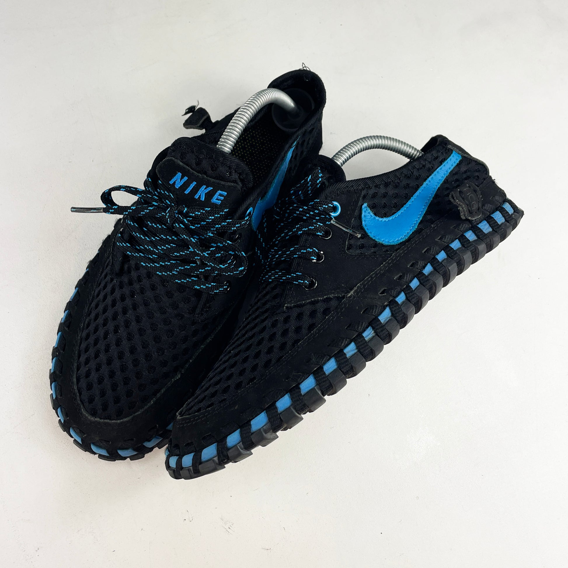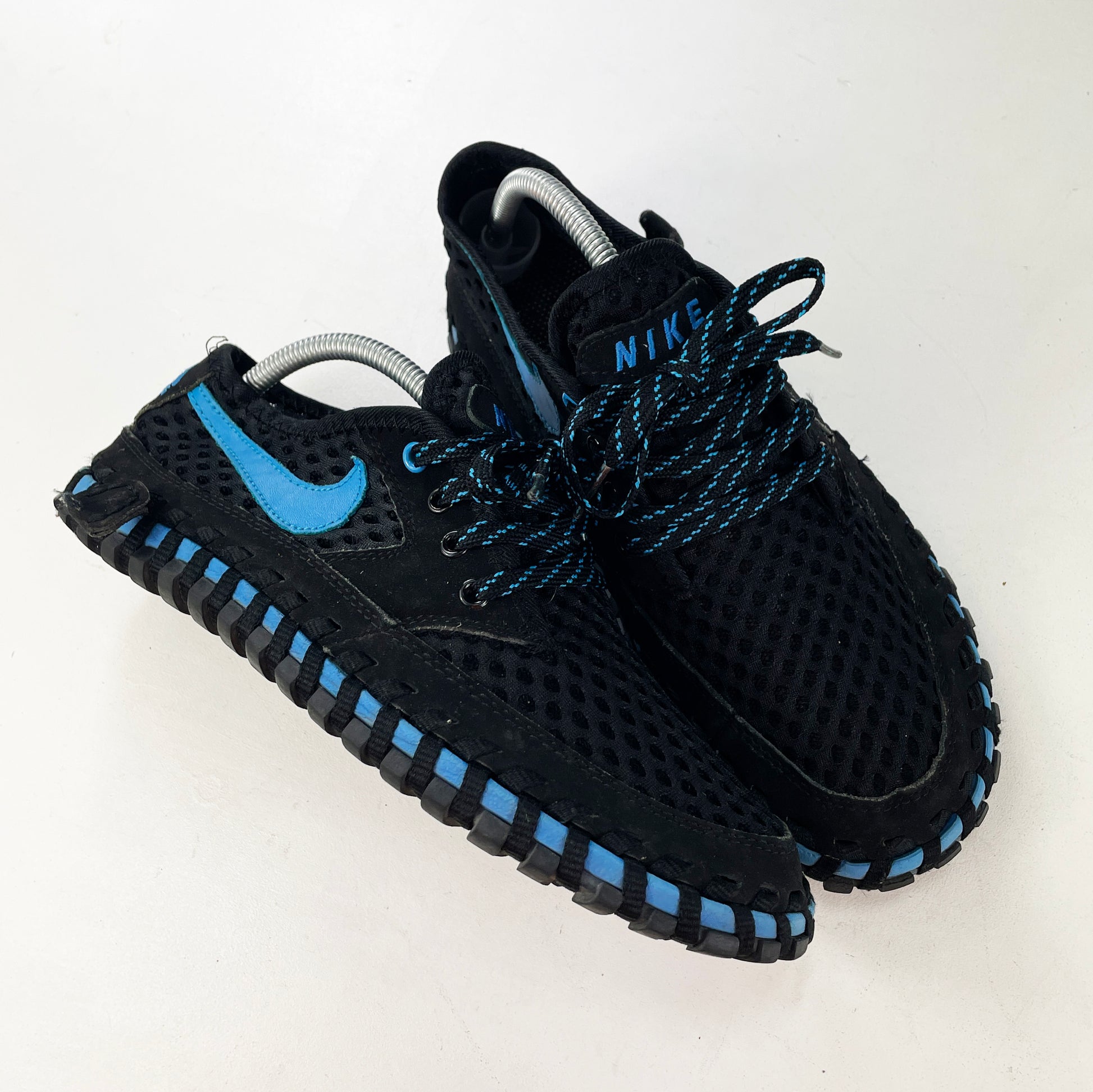 This silhouette was one of the last pairs to ever use @mcsteve's incredible Considered woven sole tooling. Sitting atop this is a simple upper, consisting of breathable mesh, suede panelling, zig-zag stitch detailing and contrast branding. Fantastic condition, ready to be worn. Seen here in a black/blue colourway. 2 pairs available!
