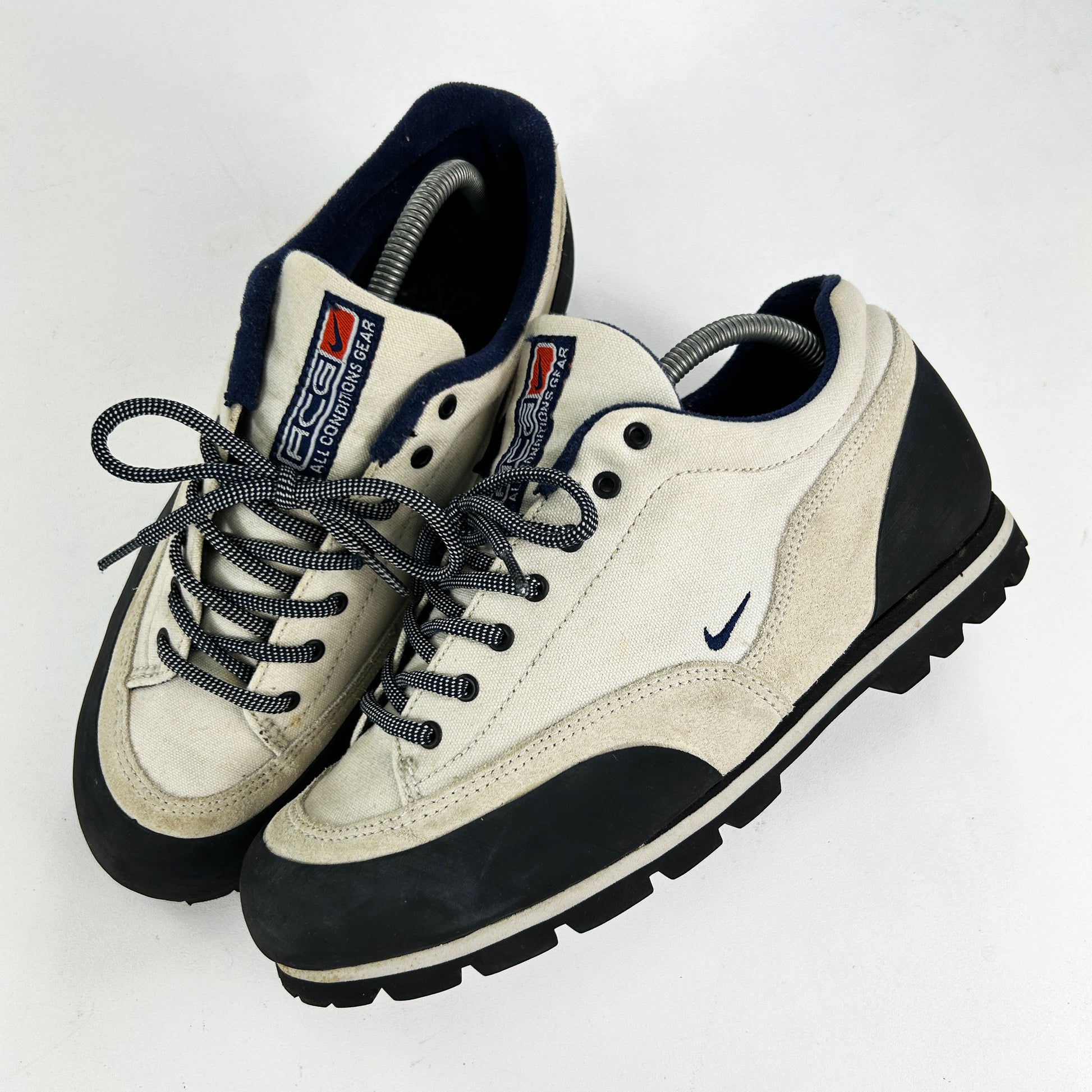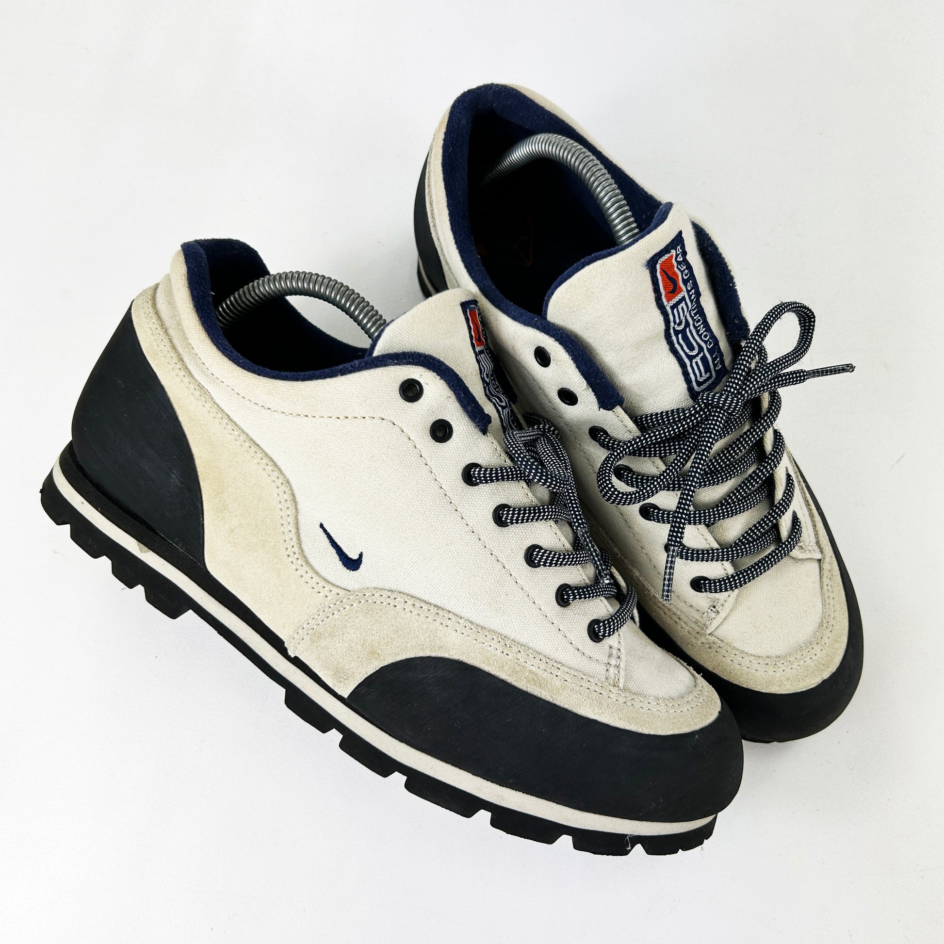 The Magneto is a super clean late 90s ACG model with a low top silhouette. A hemp-like canvas is the main upper material, paired with a suede in the same colour. A prime example of simple yet effective design. They remain in impeccable condition, worn very lightly. Undoubtedly rare. See policies before purchase.