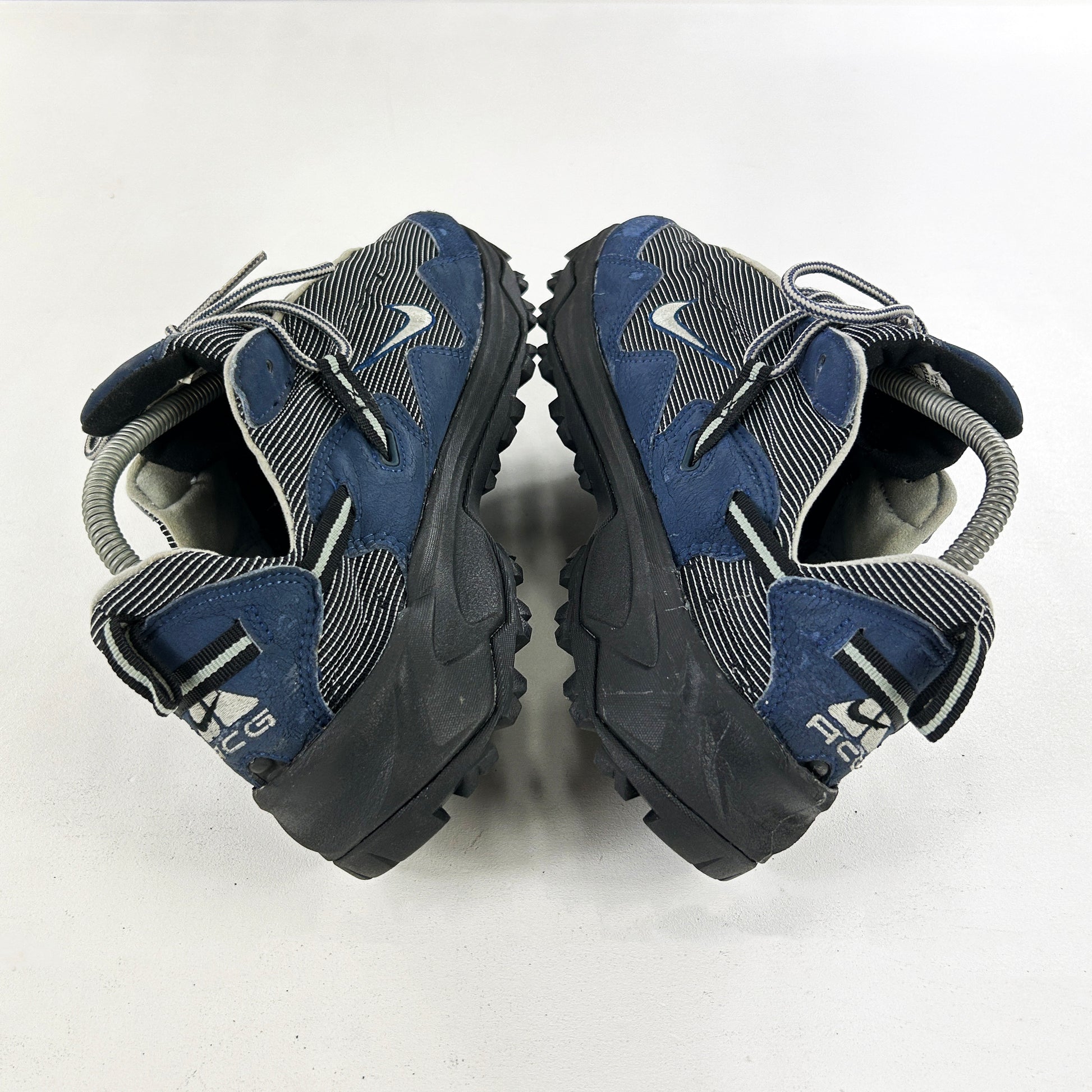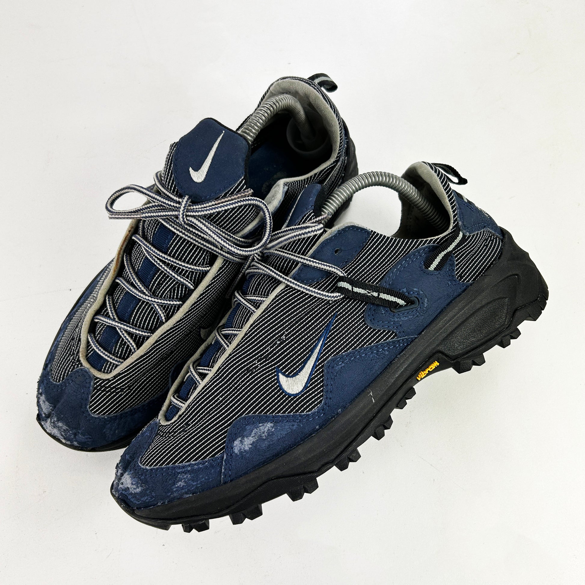 Dubbed the Pocketknife due to its versatility and its ability to be folded up, this practical all round walking shoe was an instant hit in Japan, quickly gaining a cult following and a wide variety of exclusive co.jp colourways. The Pocketknife was rightly voted one of the best ACG’s of all time by Complex in 2013. This OG 97 blue colourway was in need of resoling, taking a Virbam Ghiaccio sole. Annoyingly, the synthetic leather on these tends to crumble, this crumbling is present on both pairs, which may effect the reglue.