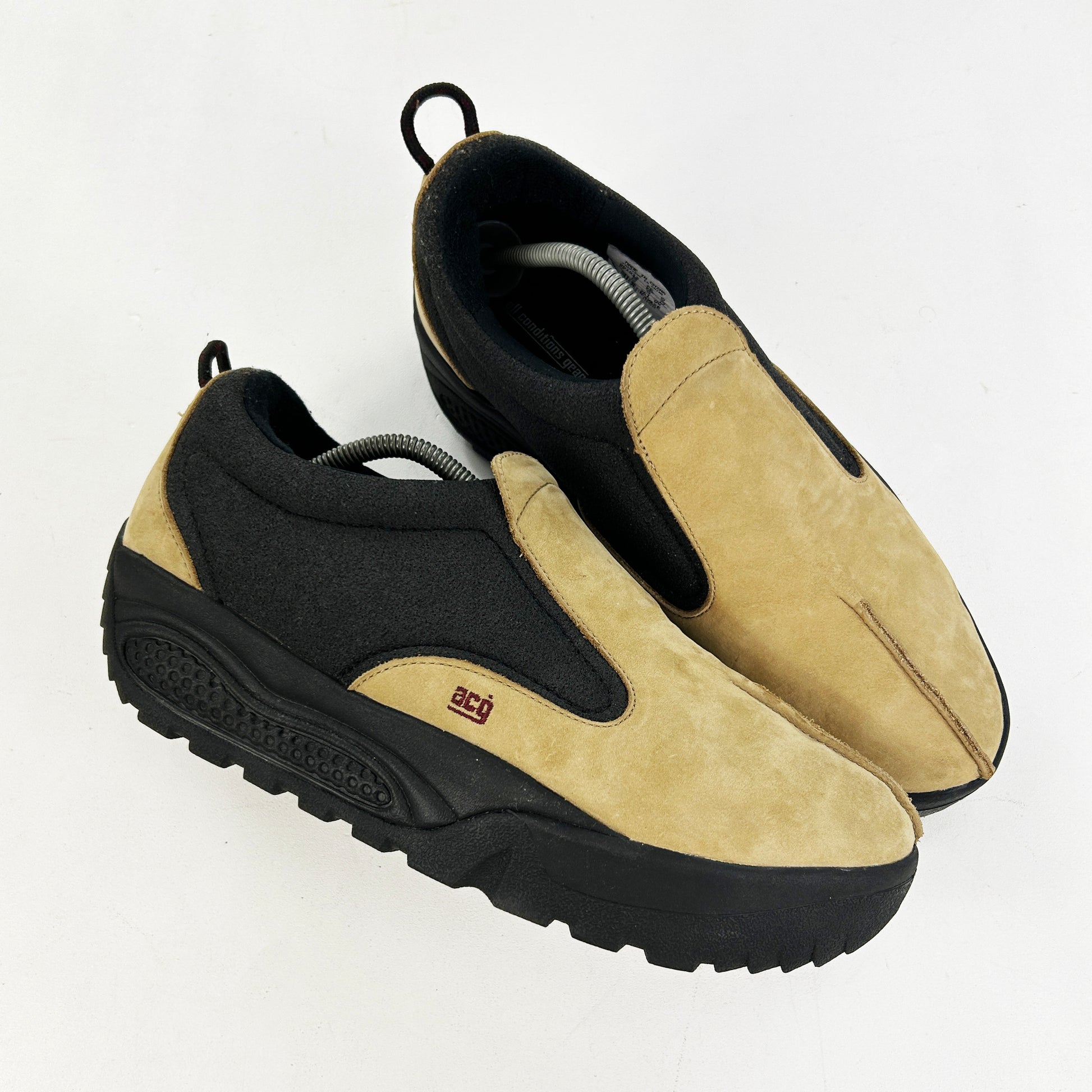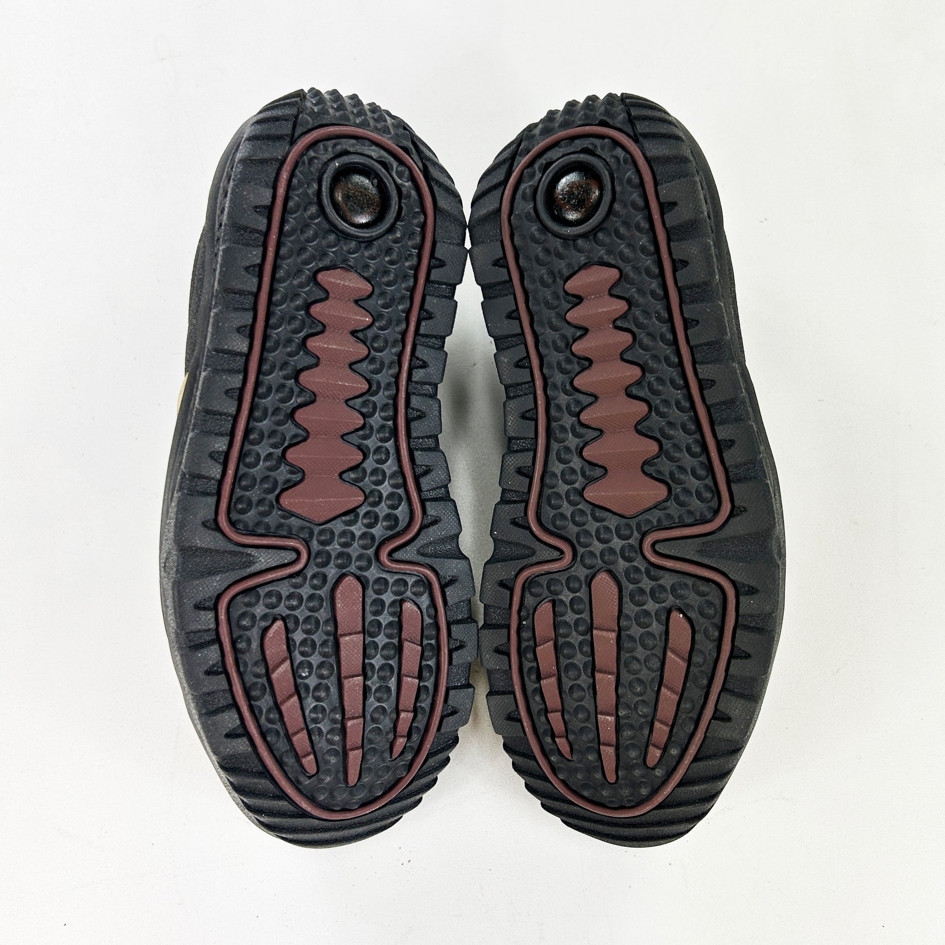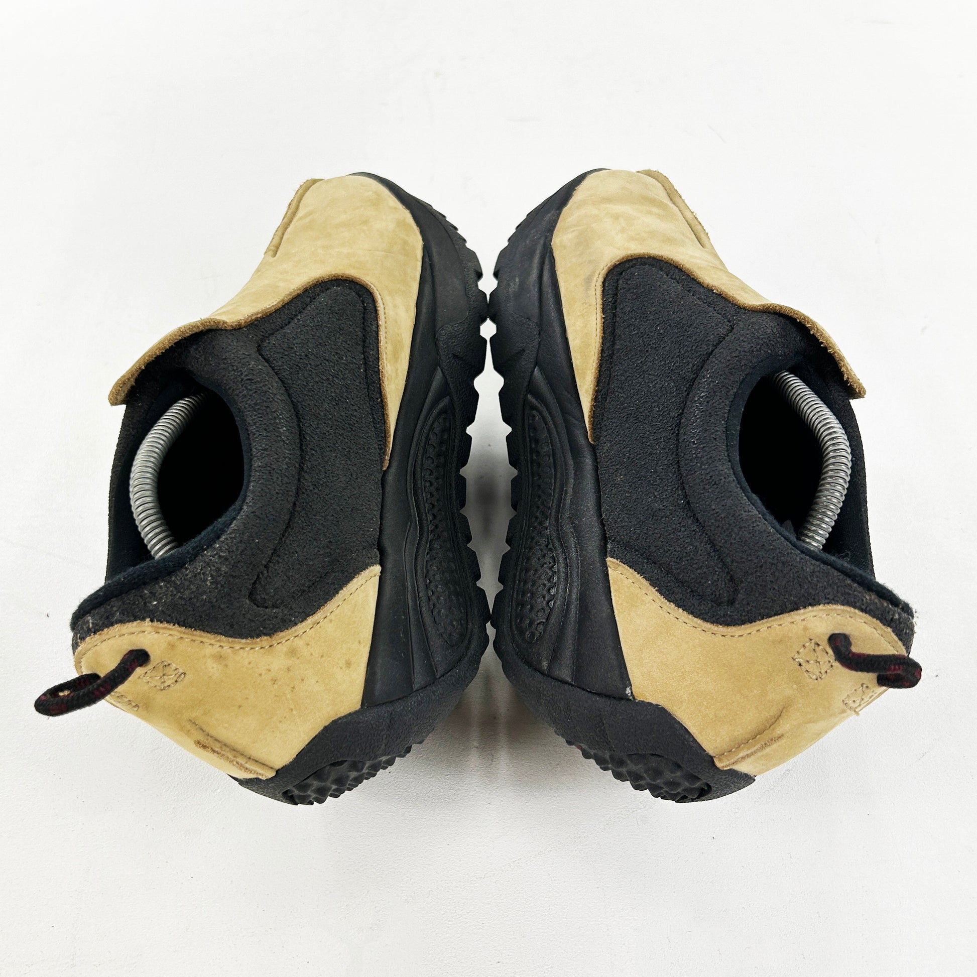 The Ridgeback released in 2 colourways; a full black with yellow branding and this khaki one pictured, with black and hits of Auburn. The silhouette features a supple suede and durable rubber upper, with dart detailing at the toe and heel, ACG branding and a paracord heel pull all of which sit atop ACG’s snow sport sole unit. This pair is brand new in OG box, very hard to find nowadays in this size and condition. See policies before purchase.