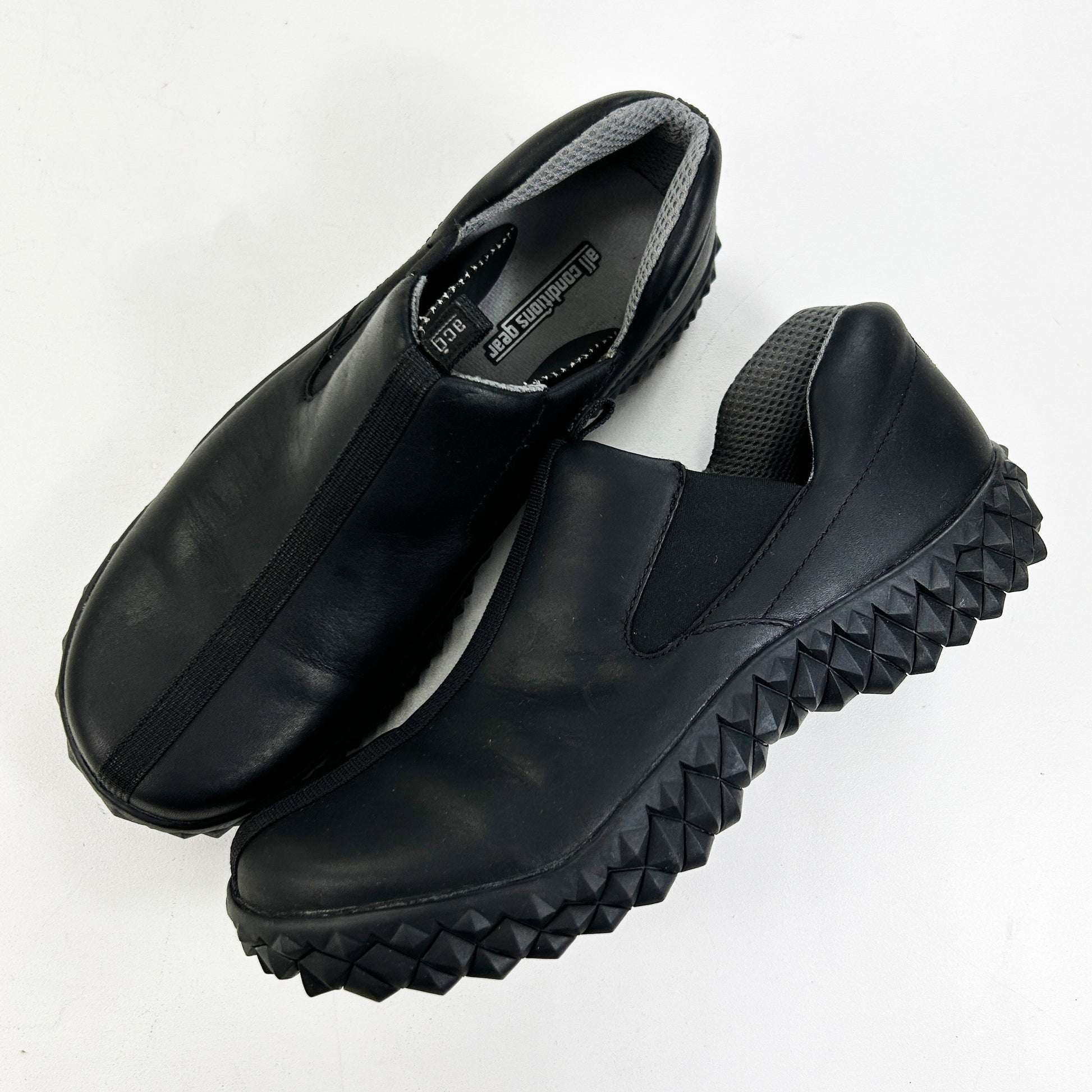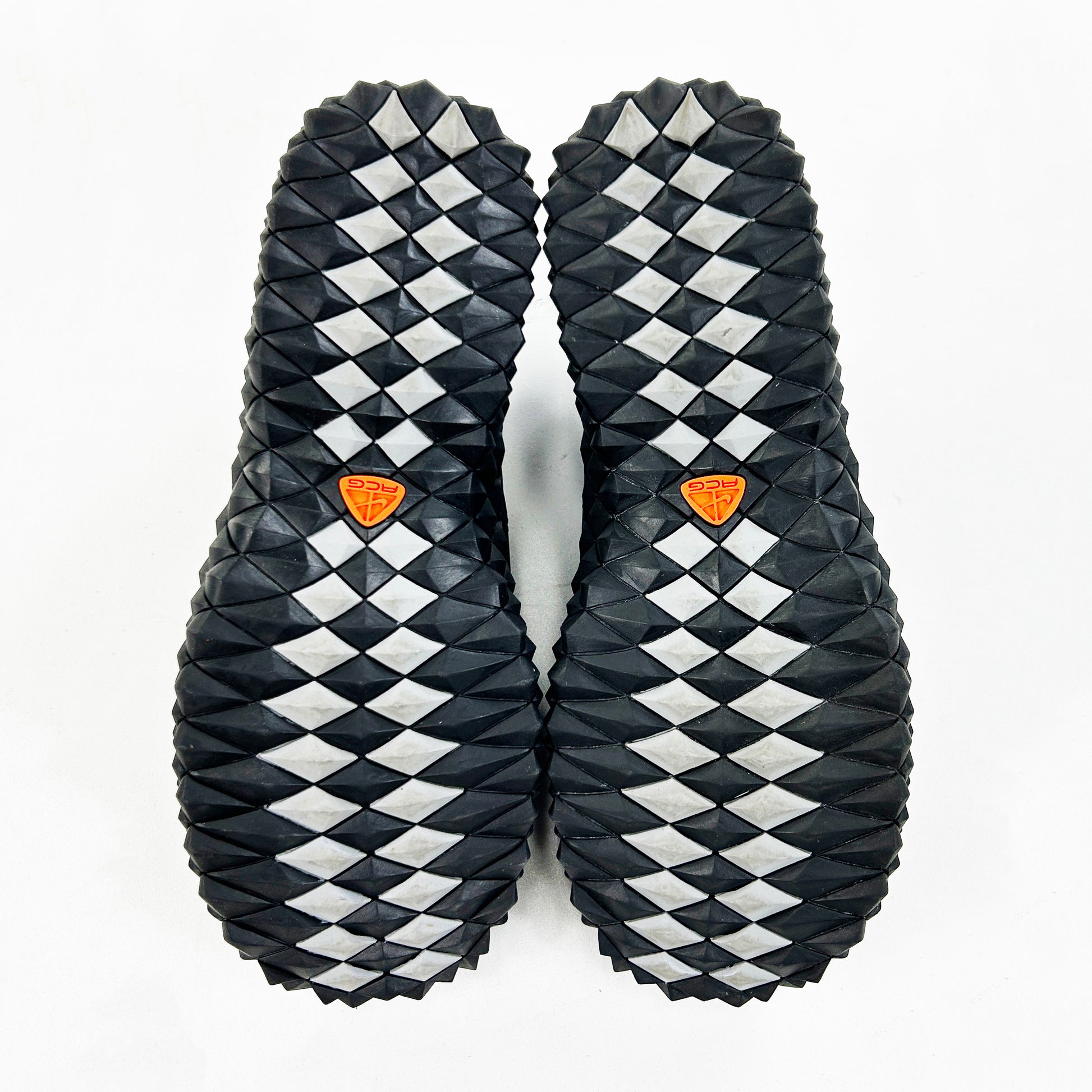 2001 was a great year for Nike footwear design in general, especially Nike ACG – the era of footwear from 1996 to 2003 is a time that really excites us. ACG were pumping out tonnes of different styles over this period from high tech, ahead of the time trail running shoes, more toned down traditional leather walking boots and pairs like the Rollback, which were a bit more leftfield in design. The Rollback released in both suede and leather iterations, in a total of 5 or so colourways. They feature a stripped back upper with a nylon webbing strip down the forefoot, elastic insert entry and an embossed Swoosh on the inside heel. What the upper lacks in notability, the sole tooling makes up for - a stark contrast, which makes this pair so unique. These are brand new, in the box. See policies before purchase.