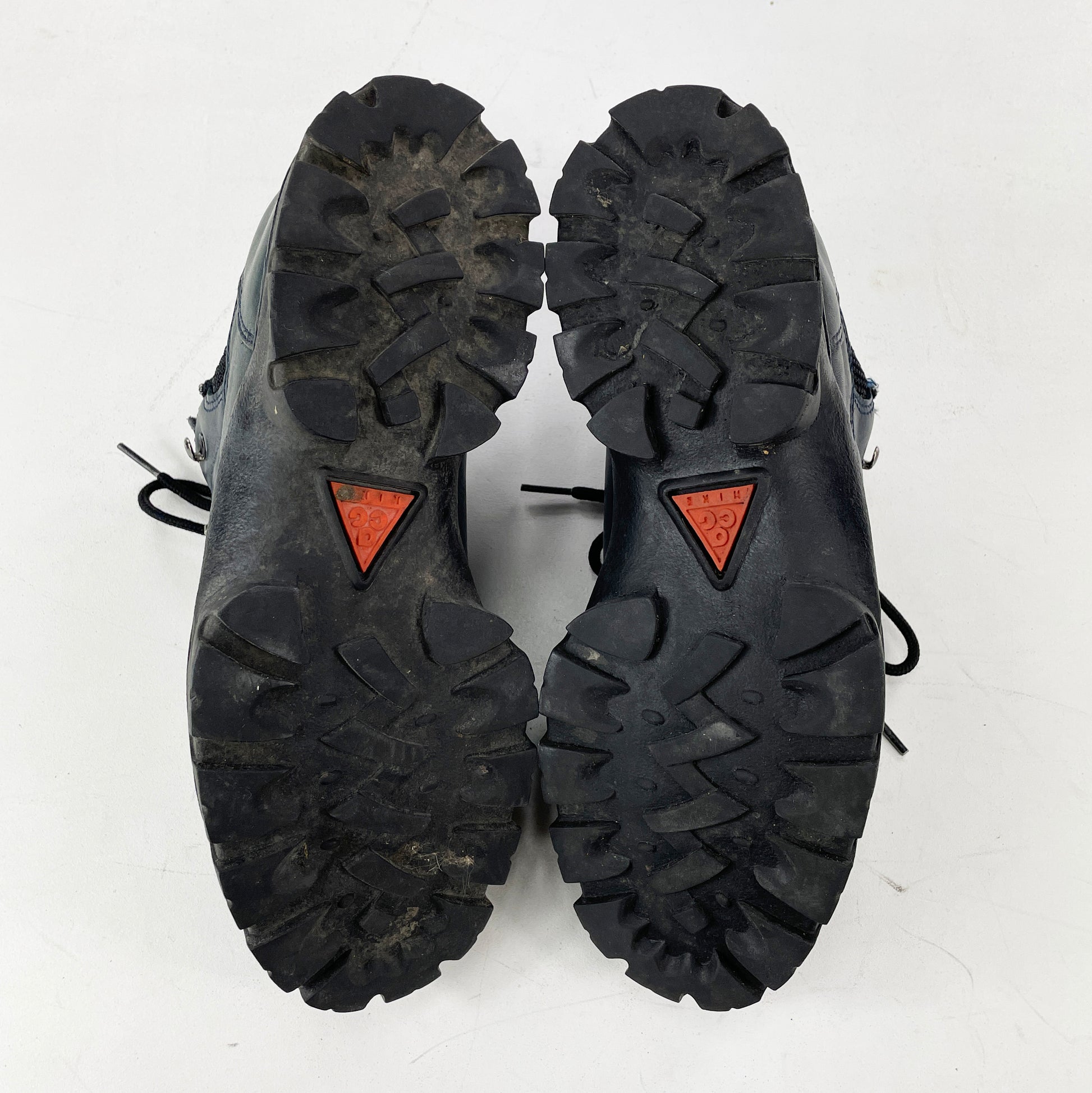 1996 was a great year for Nike footwear design in general, especially Nike ACG – the era of footwear from 1996 to 2003 is a time that really excites us. ACG were pumping out tonnes of different styles over this period from high tech, ahead of the time technical trail running shoes to more toned down, tradition leather walking boots like the ones we have for sale here. The sheer number of models released over this time makes it difficult to ID some models, if anyone knows the name of this model please comment! Overall, these are in good vintage condition, no notable flaws, no separation, and no signs of crumbling anywhere, but consider age before wearing. Also, look at that tongue label!