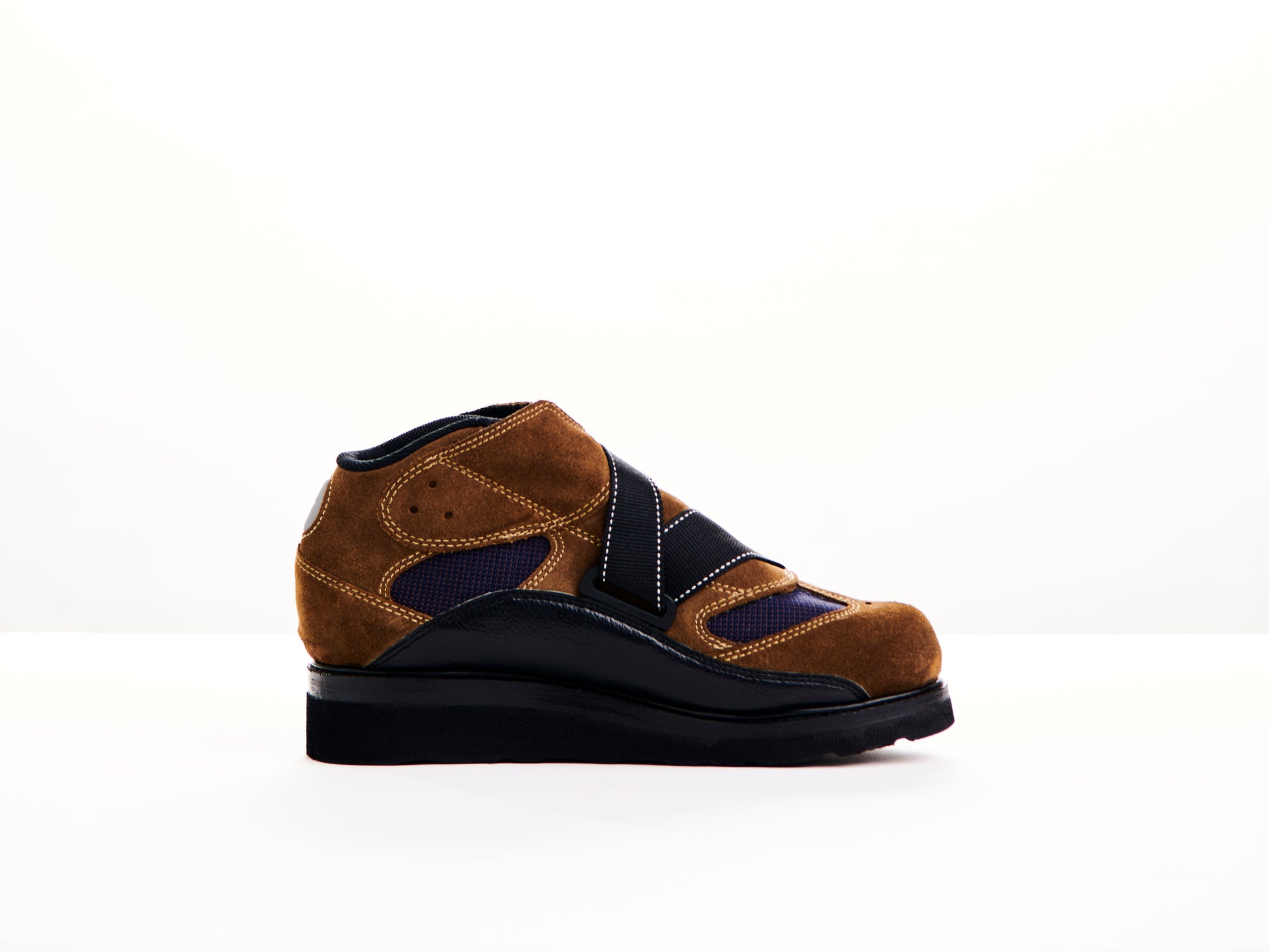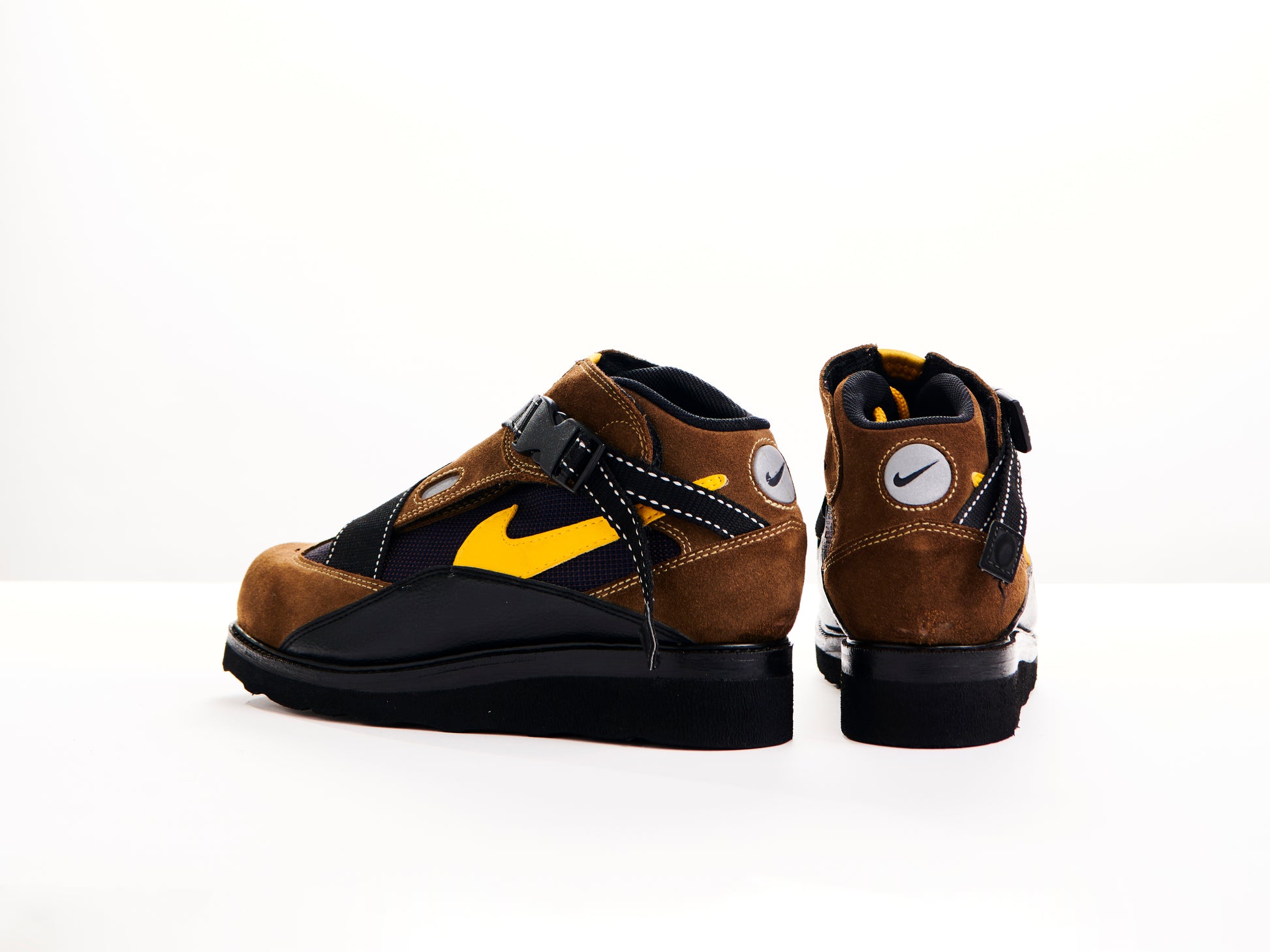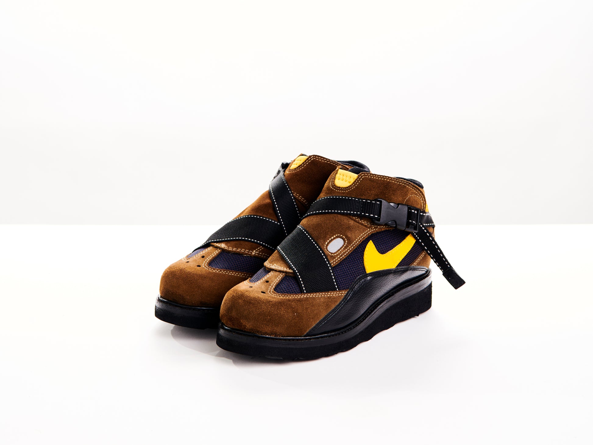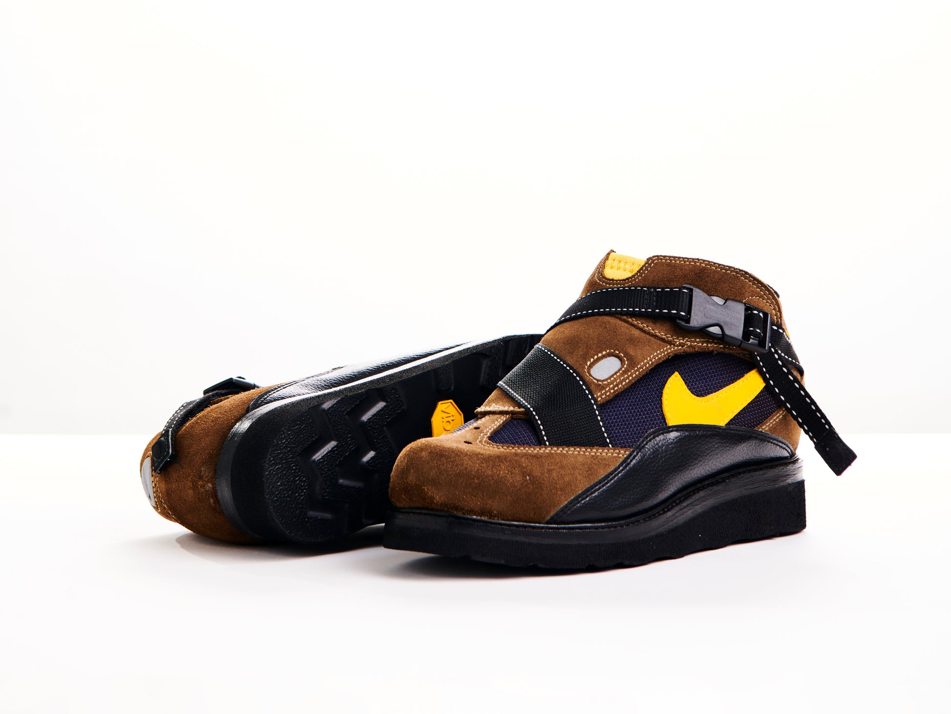 The Supa Pooh-Bah was one of many ACG cycling models released throughout the 90s. It was the successor to the Pooh-Bah, featuring slightly different panelling and a velcro shroud to cover the laces. A great model with that true 90s ACG look. This pair, reCONSTRUCTED by Samuel Falzone, features a black storm welt, leather heel wedge and a Vibram outsole.