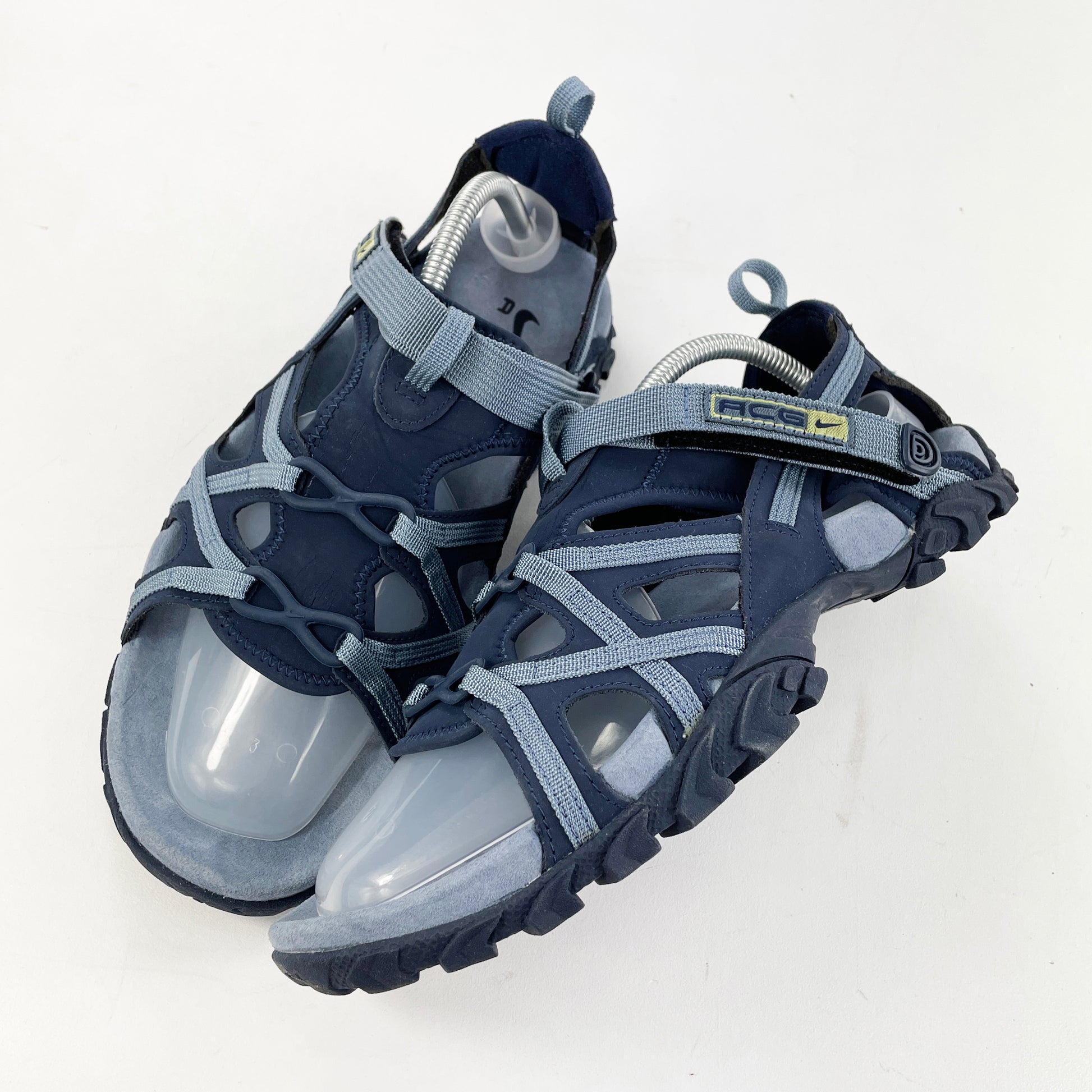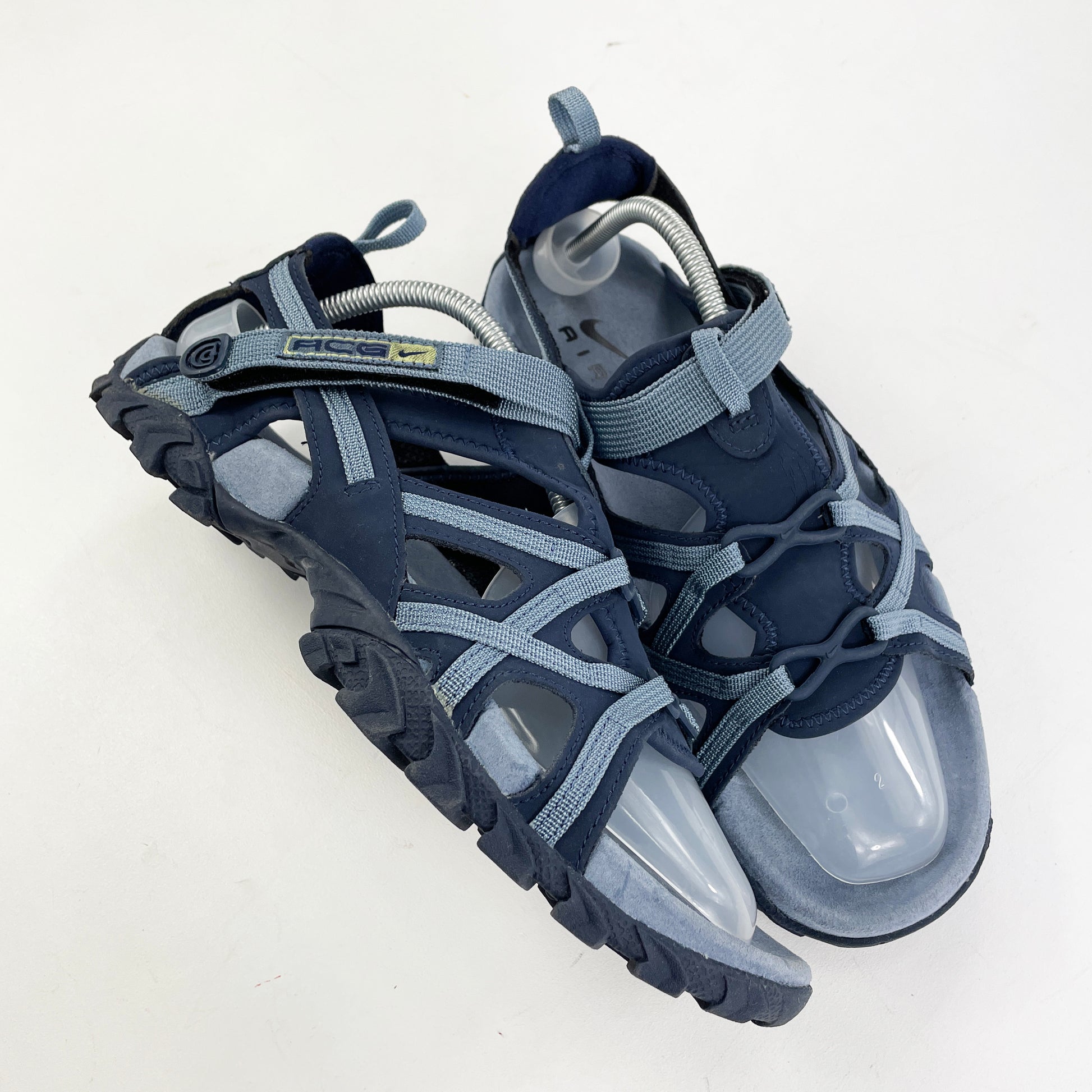 The Terreo sandal released in quite a broad range of colourways, it was one of many models on the roster of ACG sandals at the time. The Terreo was a top-seller, with its foot hugging neoprene panelling and stretchy rubber rings that connect the durable nylon tape from the medial and lateral sides. This pair is brand new in the og box.