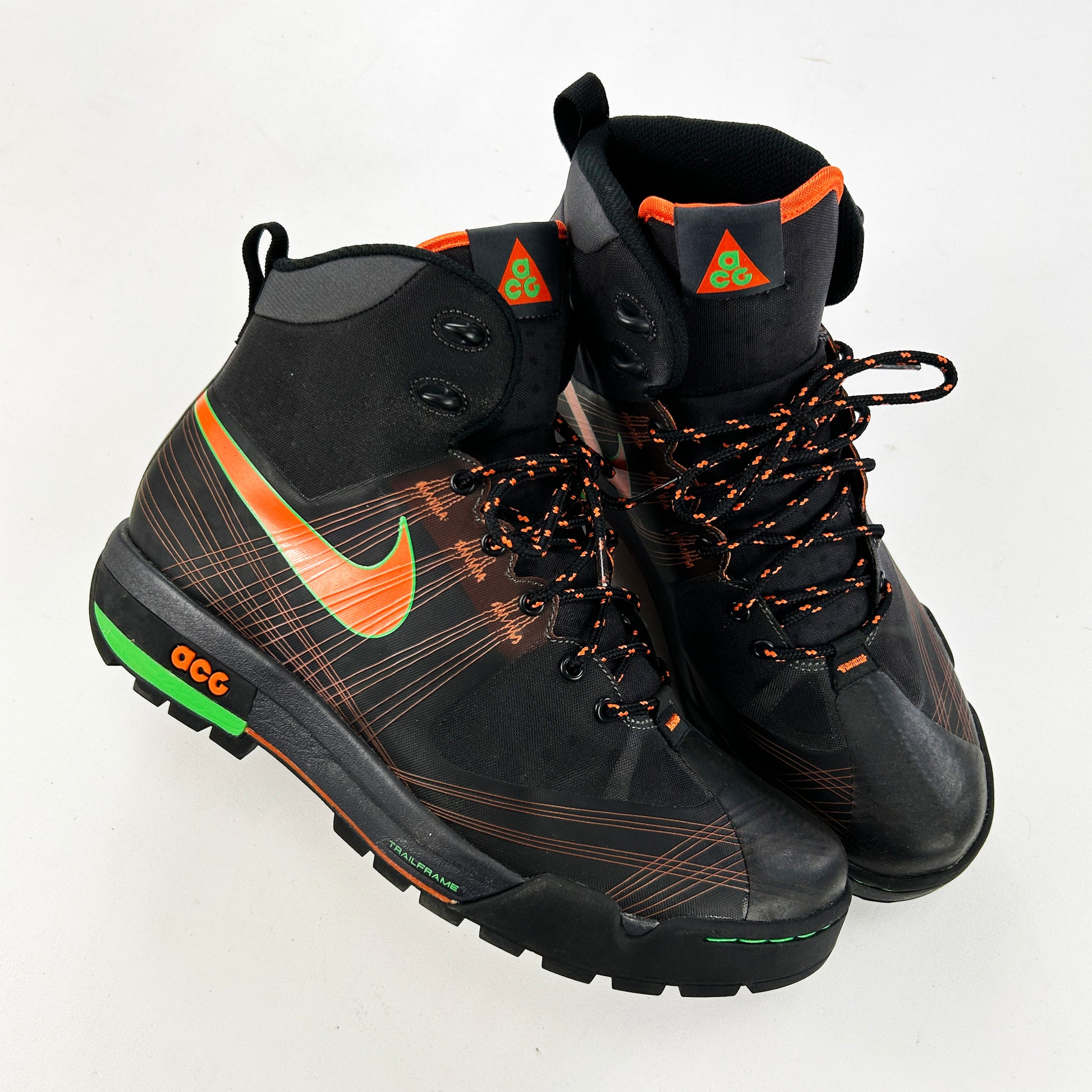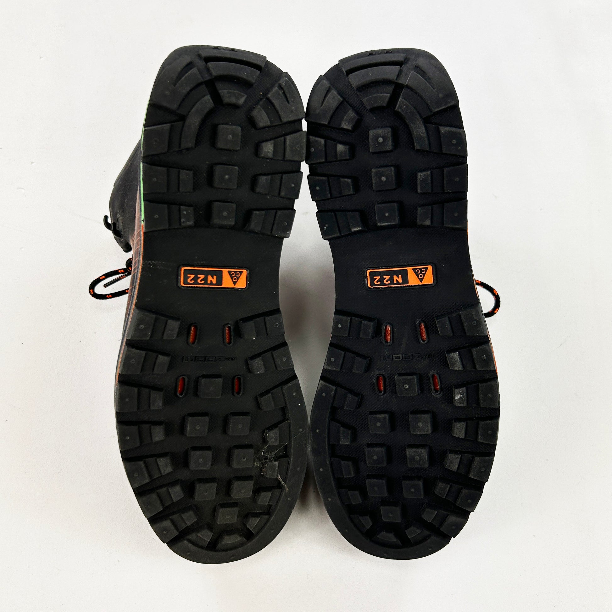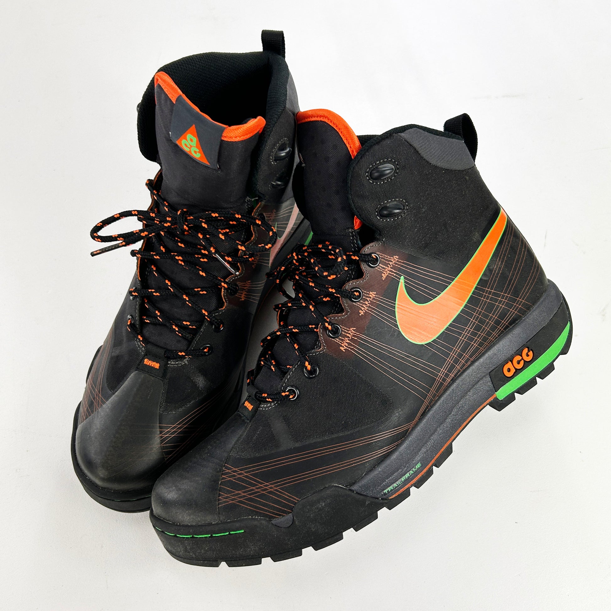 Additionally, the outsole of the Nike ACG Ashiko is designed for exceptional traction and durability. It features a rugged and aggressive tread pattern, allowing for reliable grip on various surfaces, including wet or uneven terrain. This helps ensure stability and prevents slips or falls while navigating through outdoor environments. This pair is lightly worn with og box! Not something you see often.