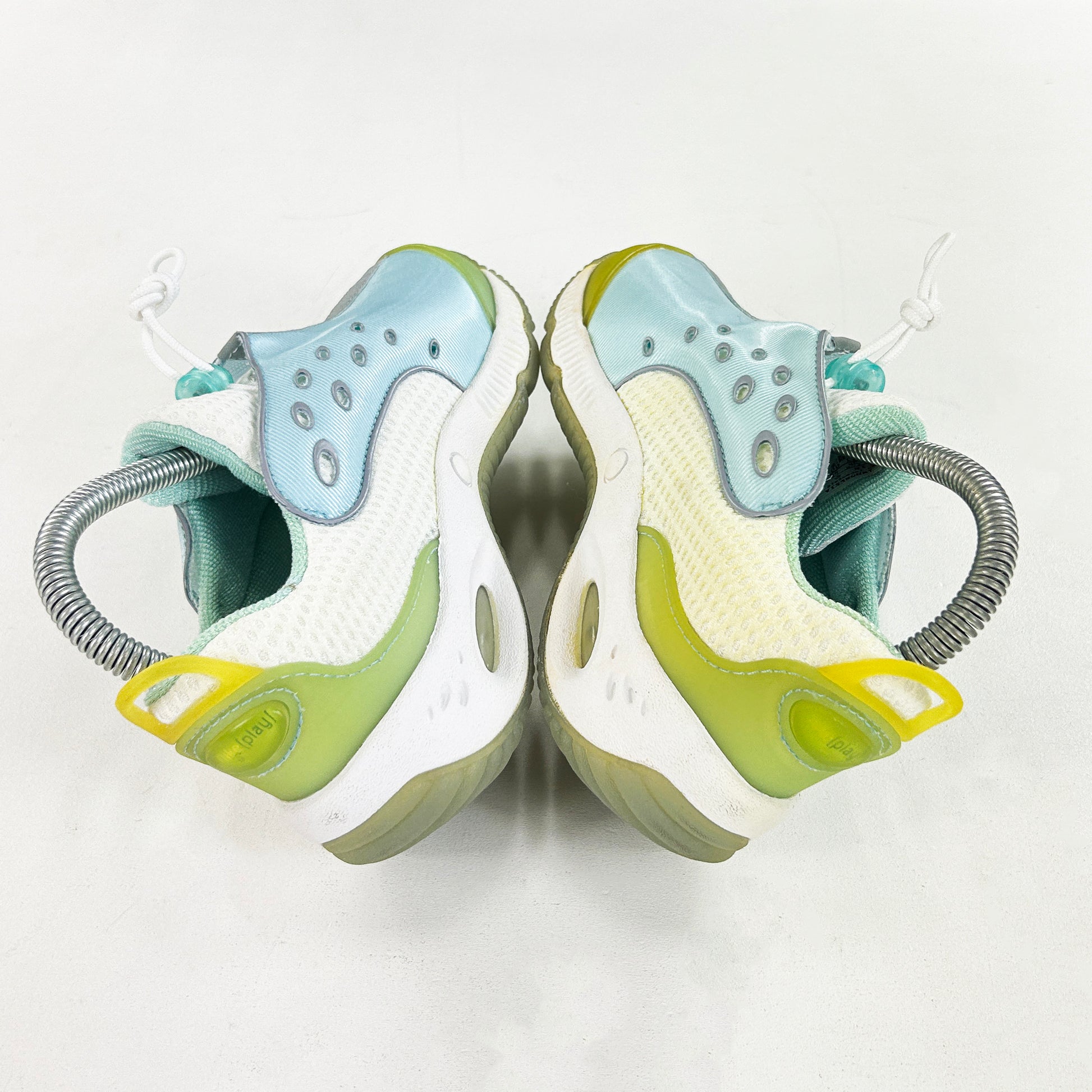 The early noughties was an amazing time for leftfield, out of the box Nike designs throughout all categories. However, Nike Play, the kids shoe category, is one group of product that is often completely overlooked. Nike kids shoes aren't just micro versions of pre-exisiting models like the Shox, TN, 95 etc, there were some genuinely amazing kids-only models, and the Flutterby is a prime example. I would assume, like the kids-only Nike x Lego Bionicles shoes these probably went up to a UK6, I wish they went up to full adult sizes! Super rare, brand new with the box. Definitely the smallest pair we've ever had. See policies before purchase.