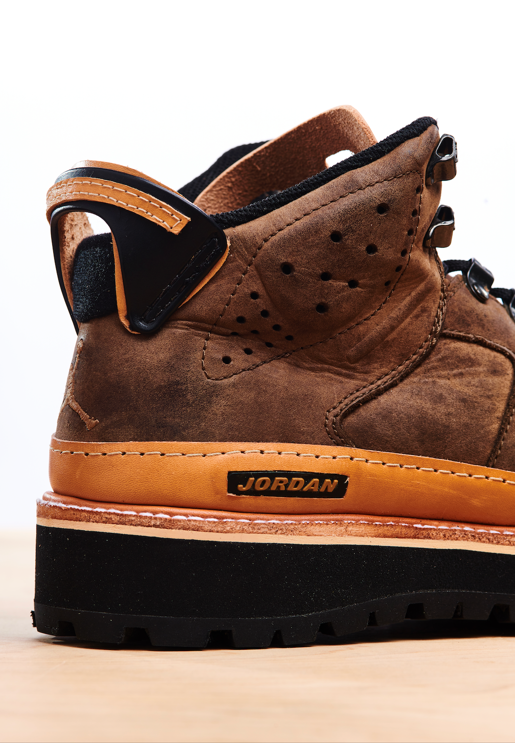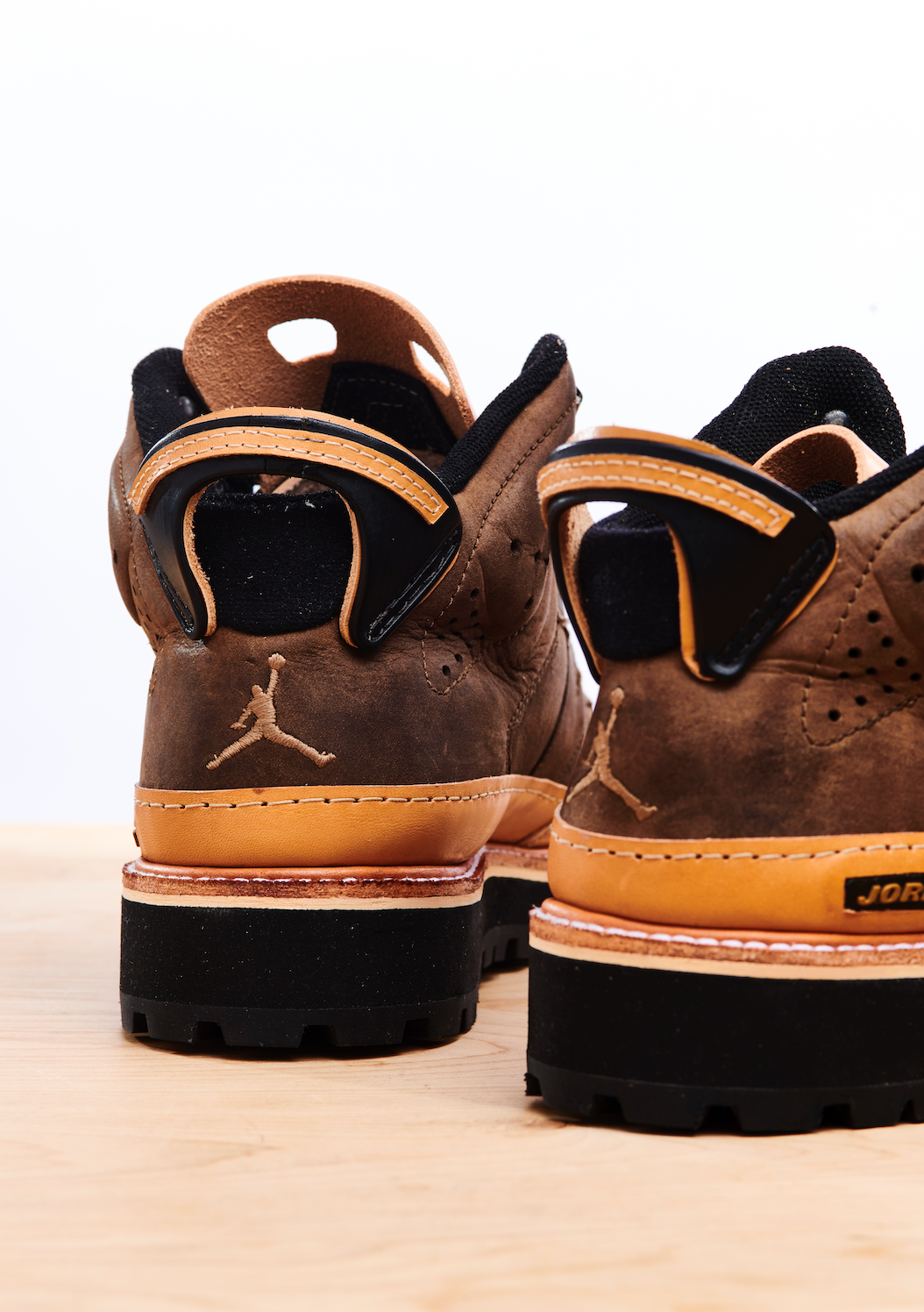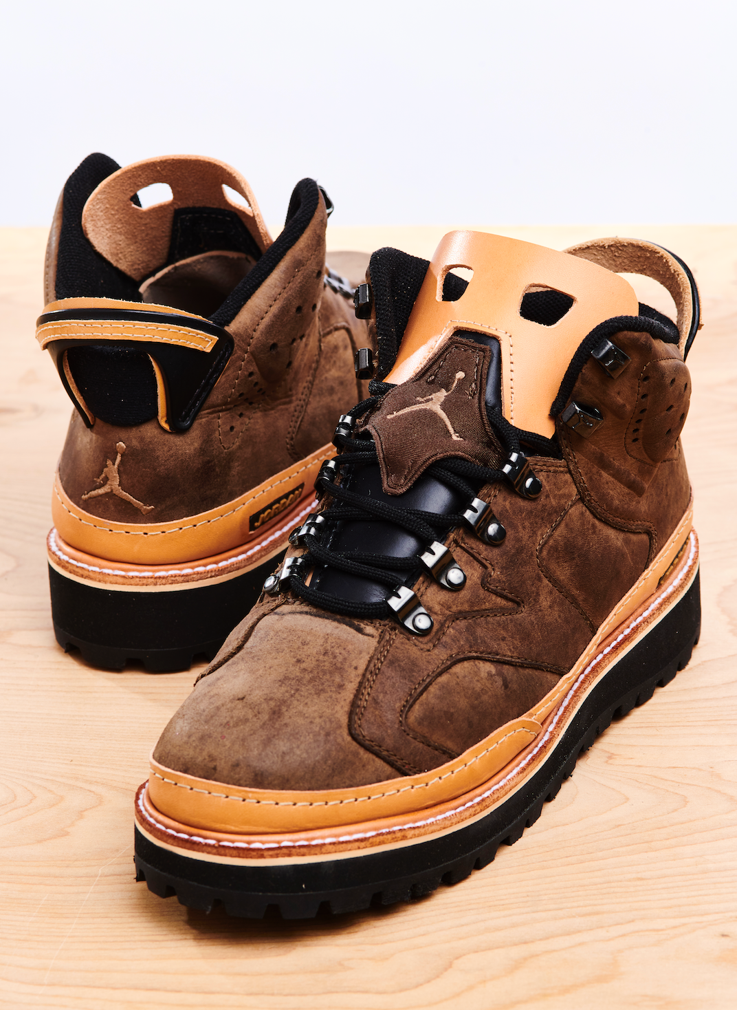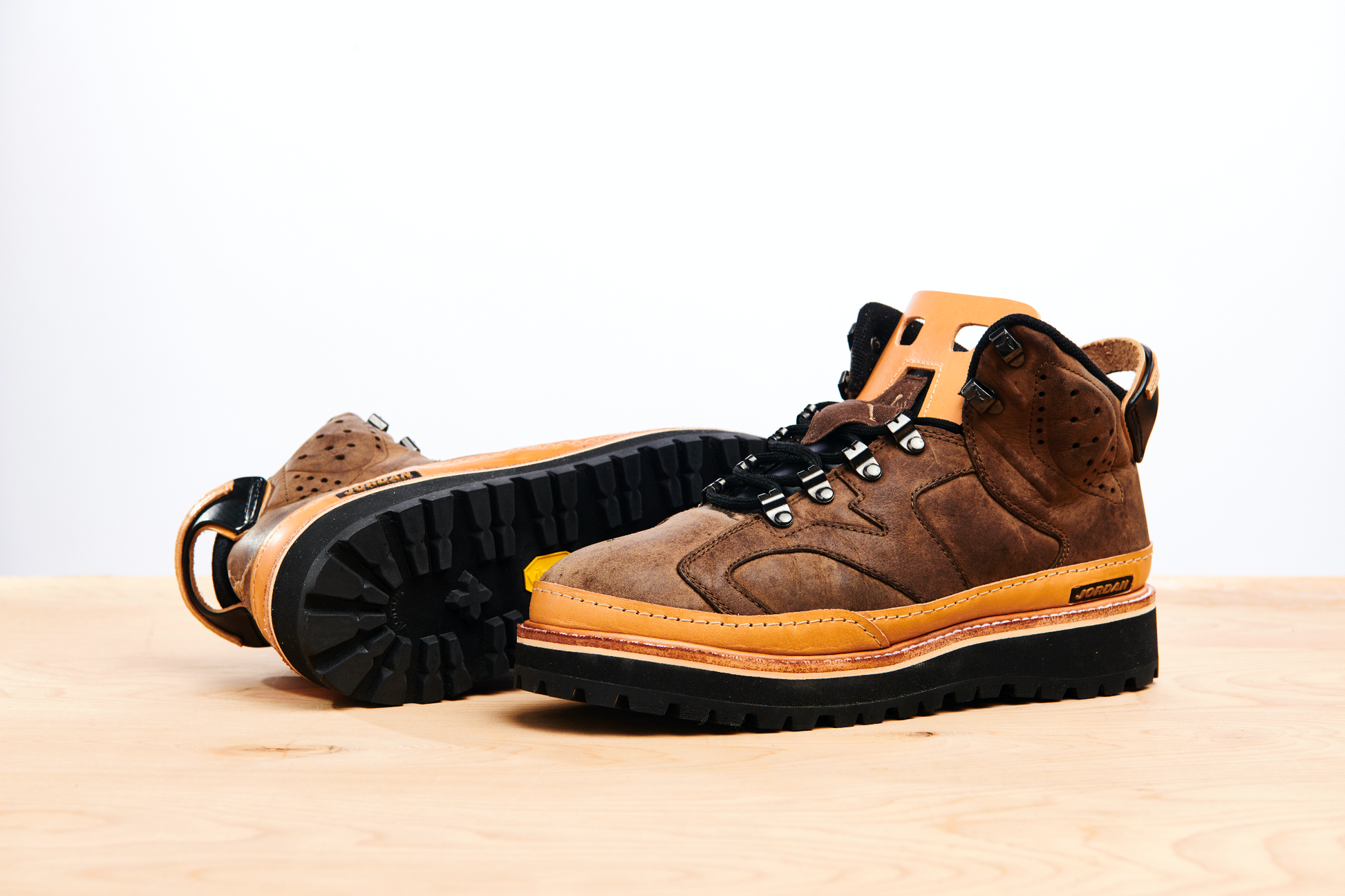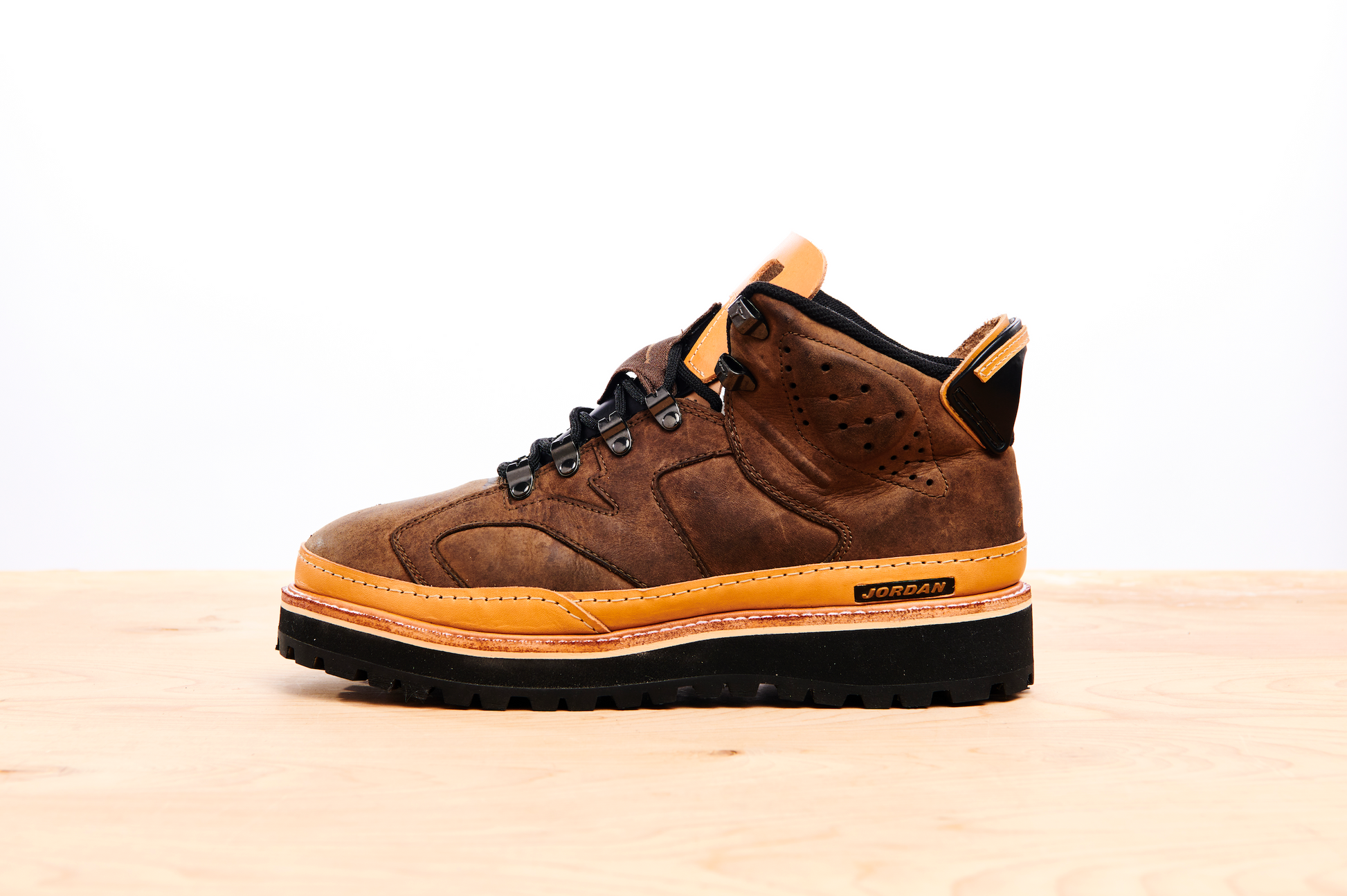 The AJB6, standing for Air Jordan Boot 6, was released at a time when boot sales were at an all time high. Footwear from brands such as Timberland and Lugz was incredibly popular around that time and Nike tried to shoot their shot and seemingly failed, with most of them ending up on sales racks. There was however a slight cult following for this silhouette in Washington DC! We're a huge fan of weird Nike hybrids and it doesn't get much weirder than this! Samuel Falzone has reCONSTRUCTED these in a vegetable tanned leather, with a rebuilt leather tongue and heel pull, a storm welt, EVA base and Vibram outsole. The leather has also been fully reconditioned.