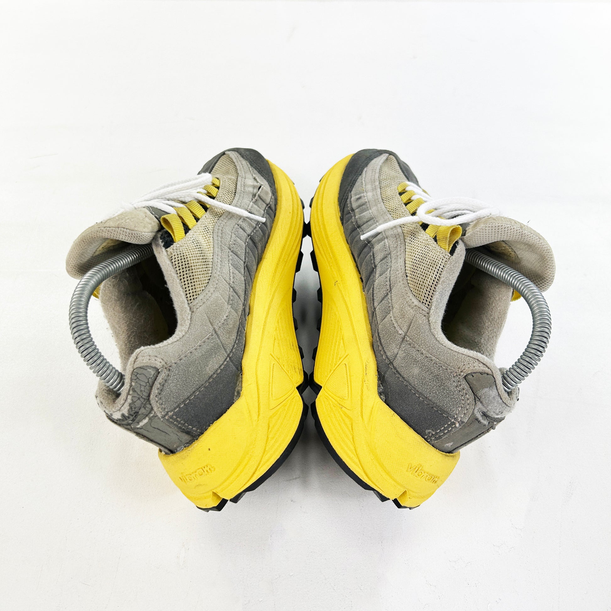 Undoubtedly Sergio Lozano’s most successful design, the Air Max 95 was originally intended for larger, more powerful runners pounding the pavement and demanding maximum cushioning. The design took shape via cues from the human body, with a lacing system inspired by a set of ribs, a spine-inspired outsole and a mesh and suede upper representing muscle fibres. This bold inspiration called for a layered upper construction with synthetic suede, stitched and compression moulded for maximum support without bagging out over time. As with most vintage pairs, the soles on these had crumbled. We've paired them up with a yellow Sphike sole - a perfect match. See policies before purchase.