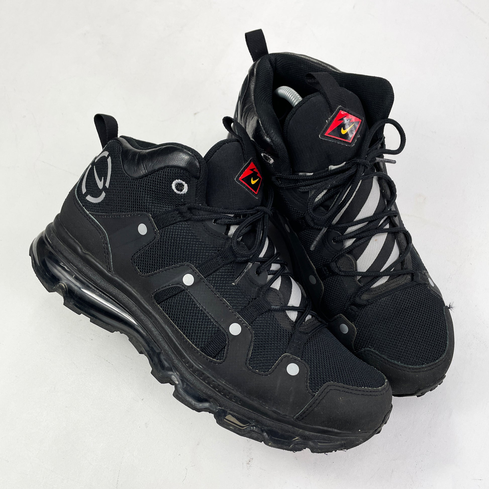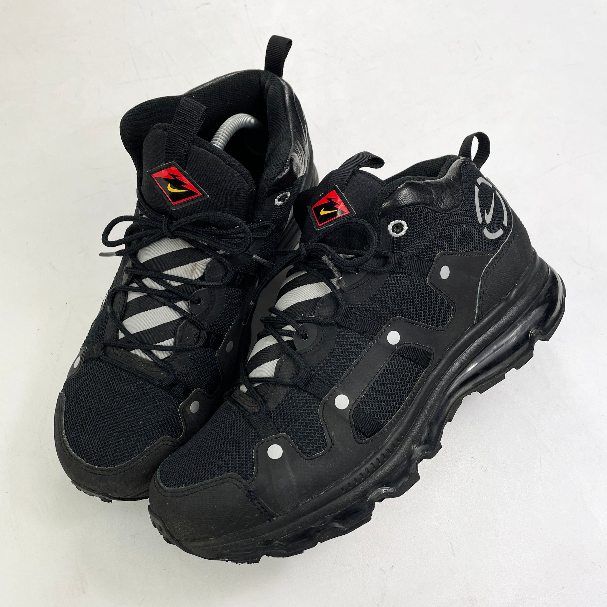 In 2013 the 1997 Terra Minot received the same treatment as the Sertig did in 2012. The Minot originally released in 1997 with a Zoom Air unit infused trail sole, this modern update sees the Minot fitted with a 360 degree Air Max sole. They feature rubberised bumpers, 3M reflectivity and durable nylon with some leather details. They released in 3 colours and are fairly hard to get your hands on these days. Great condition, fully wearable.