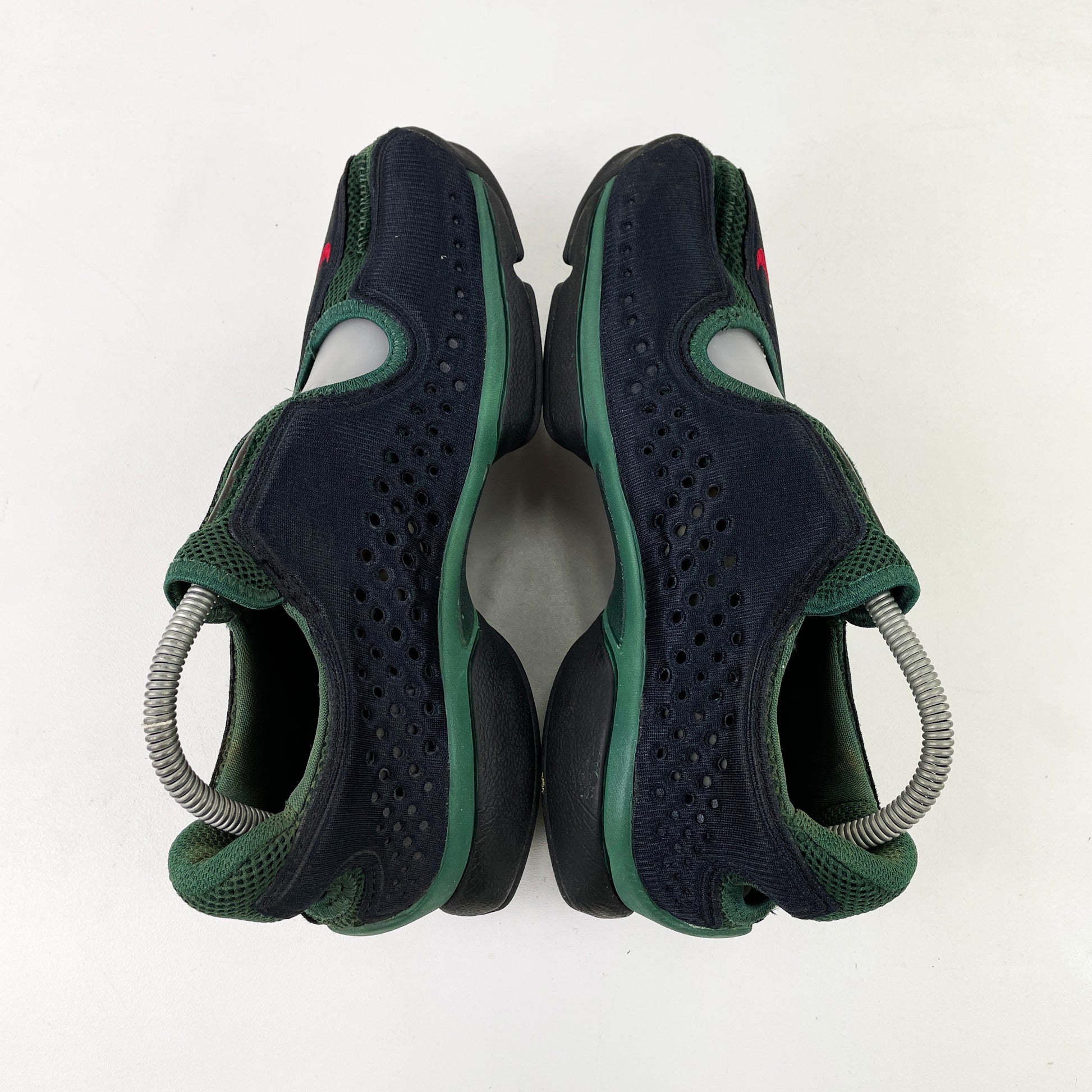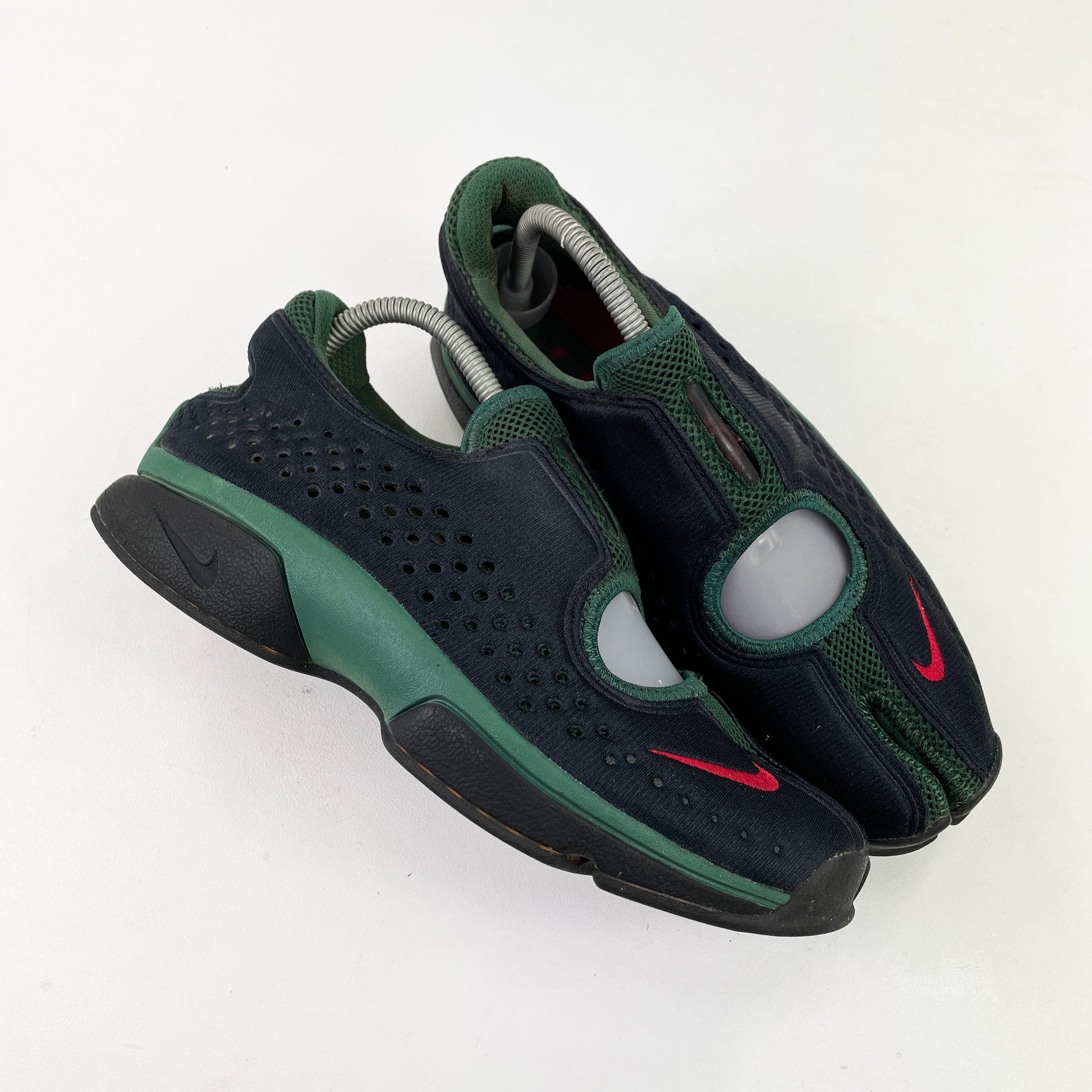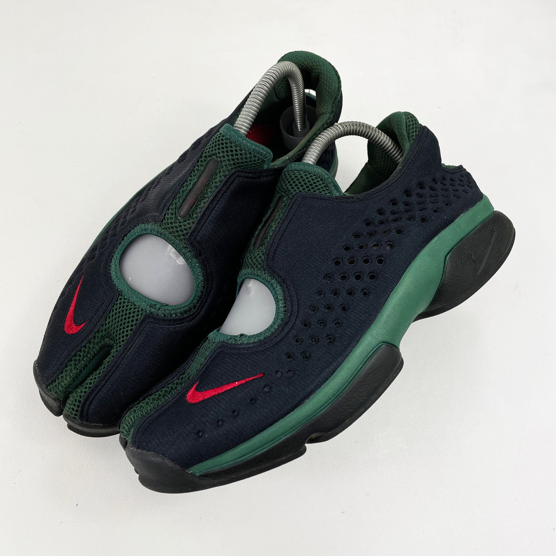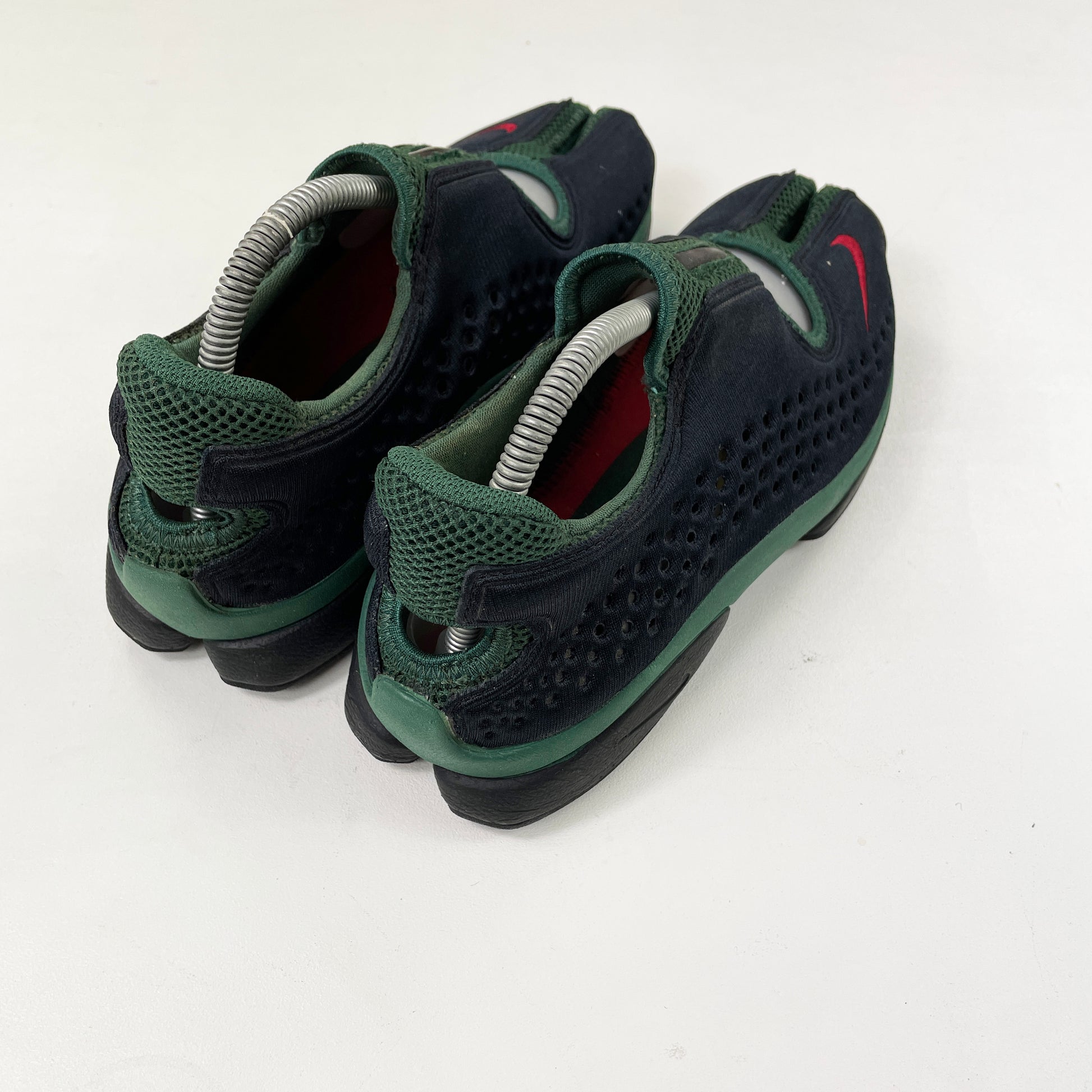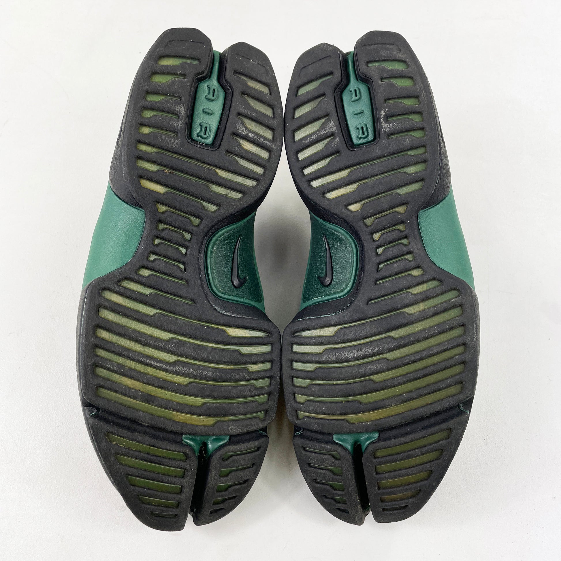 The Air Rift 2 took the Rift’s signature split toe and open silhouette but modernised it with true turn of the millennium styling. The model was simplified by removing all the straps turning it into a full slip on, with perforation details sweeping across the lateral sides from the heel to the toe. This pair, in the original Rift colour inspired by the Kenyan flag, are in amazing condition, worn lightly. Comes with OG box!