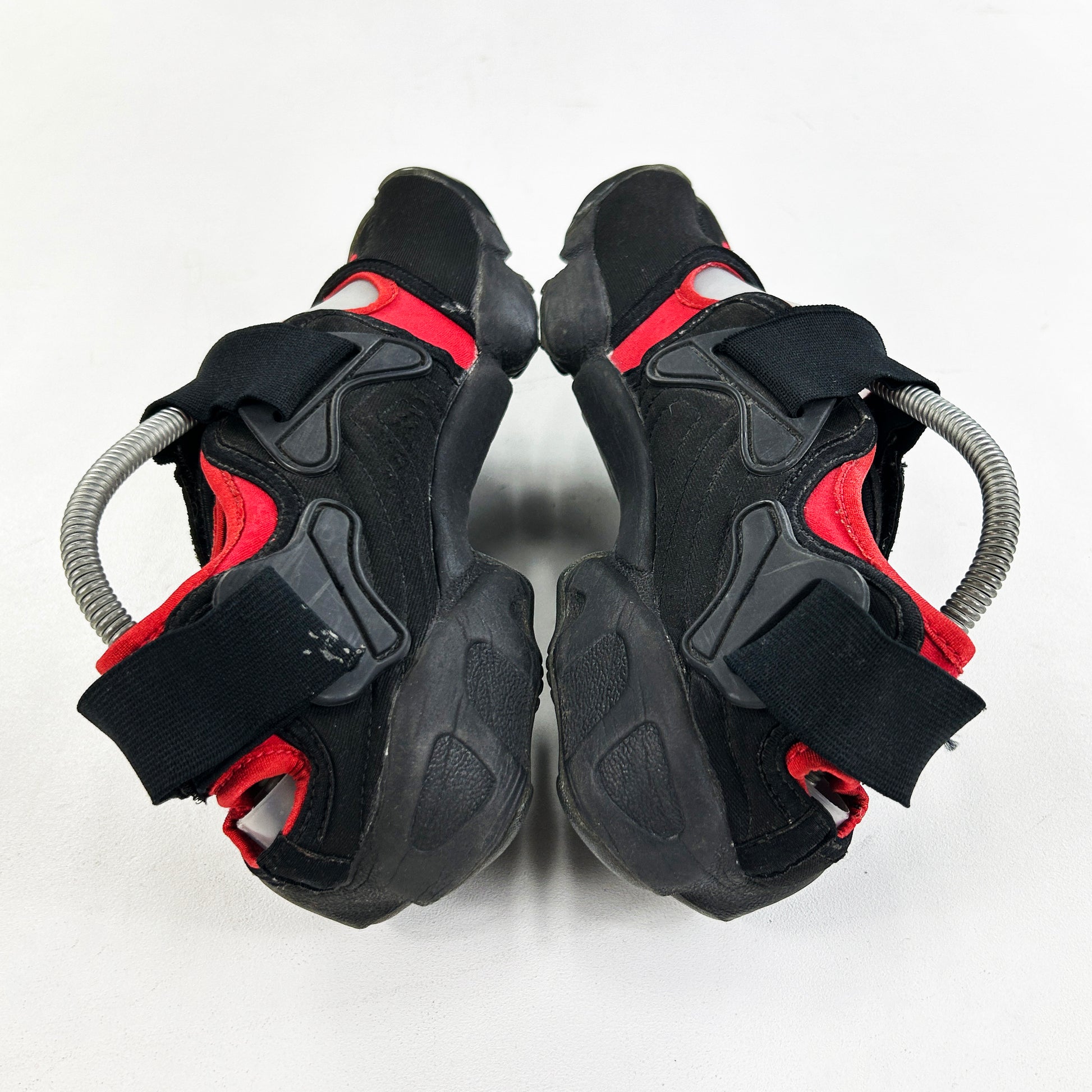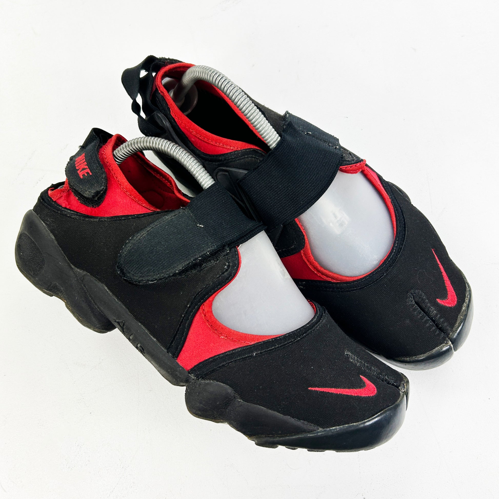 Contrary to popular belief, according to Steve MacDonald the original Air Rift was actually not designed by Kip Buck and Tinker Hatfield. MacDonald states that the Rift was actually designed by a sewer within Nike in the mid 90s, who then seemingly had their design stolen. They were designed with the aim of replicating the feeling of barefoot running. The original release, in 1996, featured a black pair with green and red accents, a colourway which was inspired by the Kenyan flag. The model is named after the Great Rift Valley in Kenya, where the country splits in two; this is one of the reasons behind the split toe design. Good, used condition. See policies before purchase.