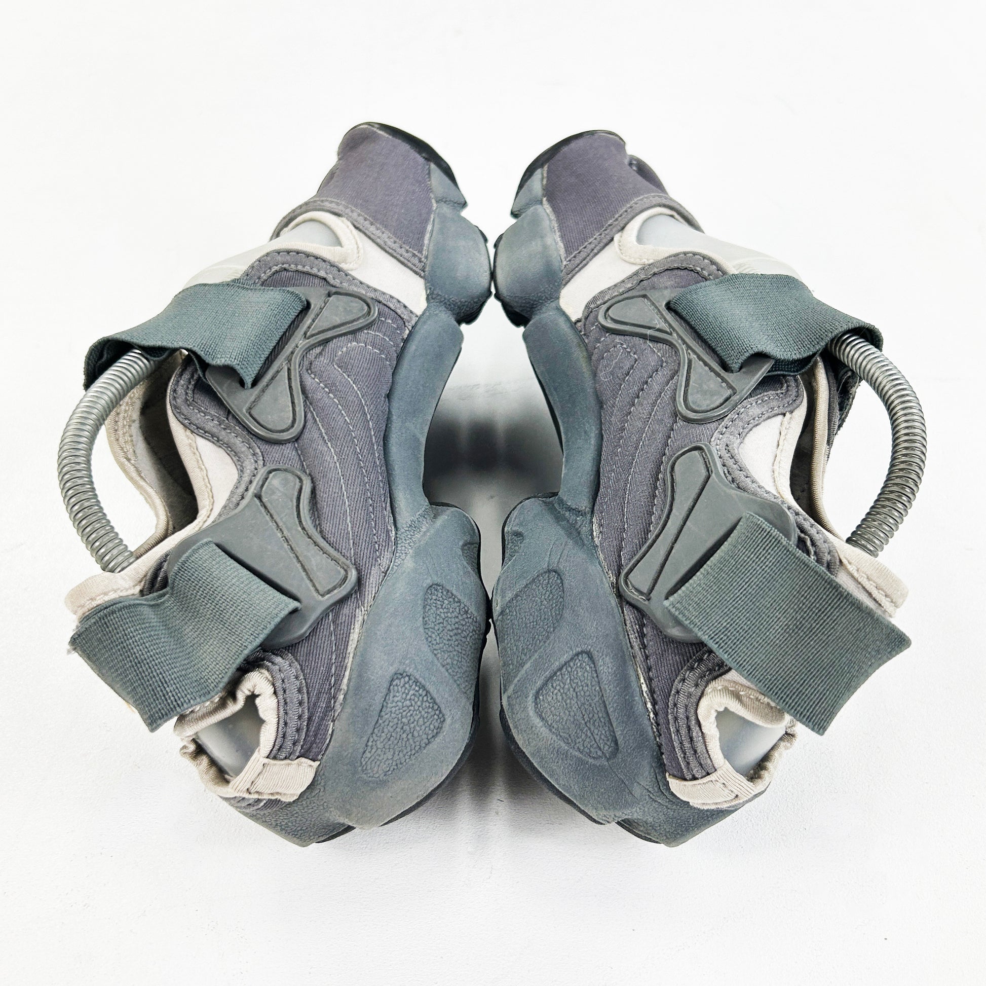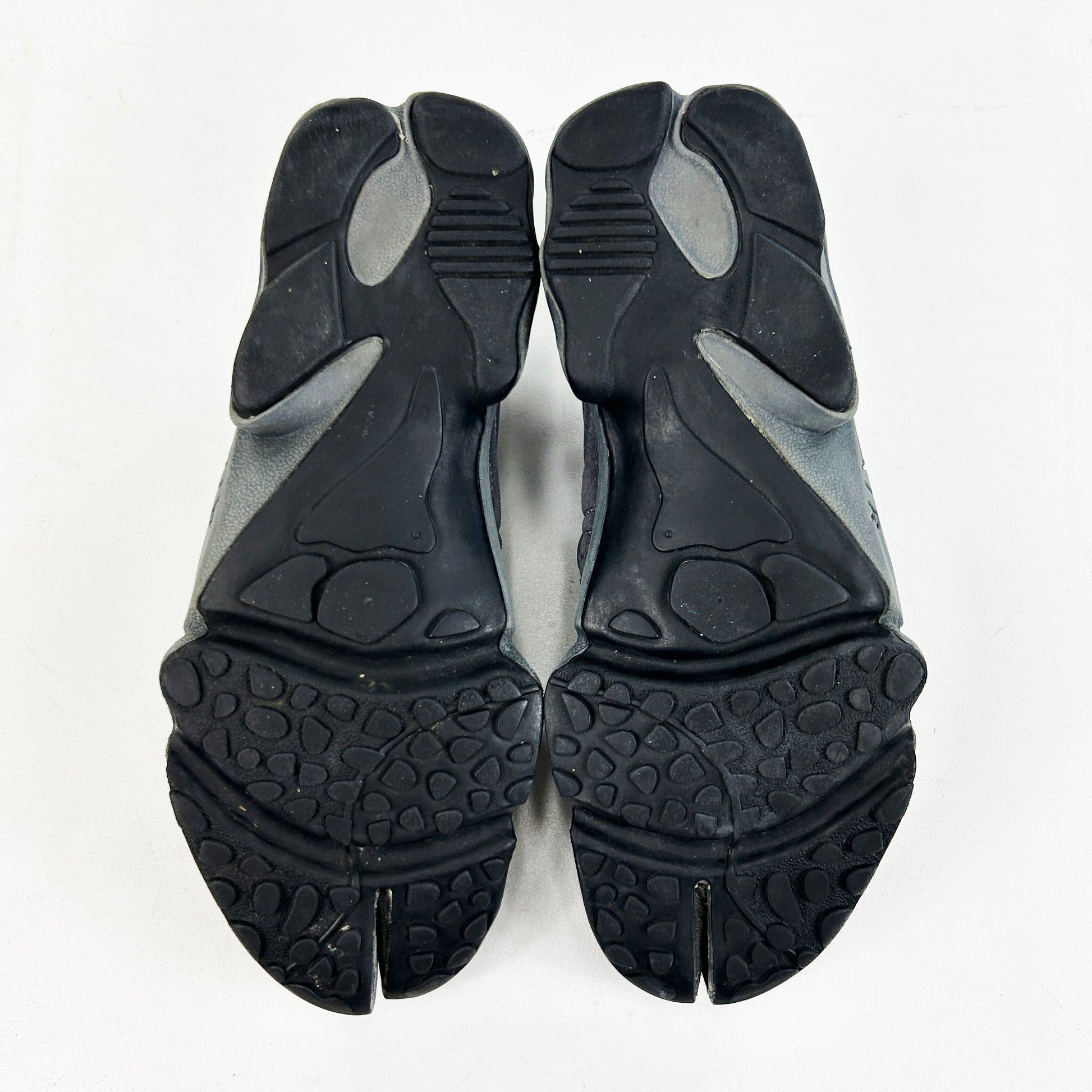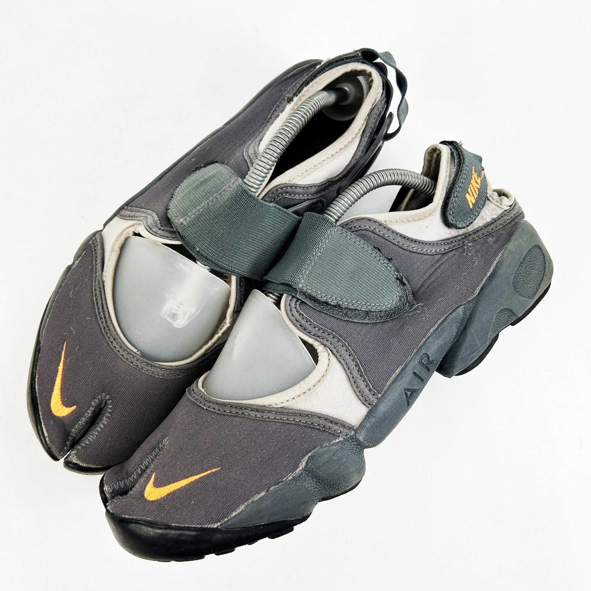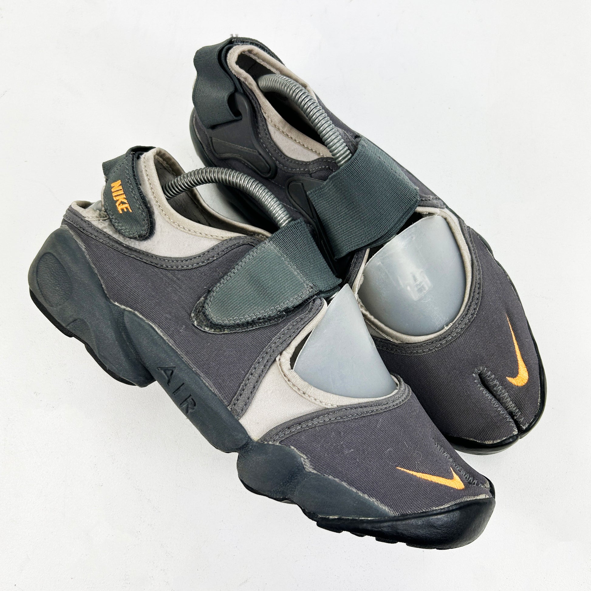 Contrary to popular belief, according to Steve MacDonald the original Air Rift was actually not designed by Kip Buck and Tinker Hatfield. MacDonald states that the Rift was actually designed by a sewer within Nike in the mid 90s, who then seemingly had their design stolen. They were designed with the aim of replicating the feeling of barefoot running. The original release, in 1996, featured a black pair with green and red accents, a colourway which was inspired by the Kenyan flag. The model is named after the Great Rift Valley in Kenya, where the country splits in two; this is one of the reasons behind the split toe design. Used condition. See policies before purchase.