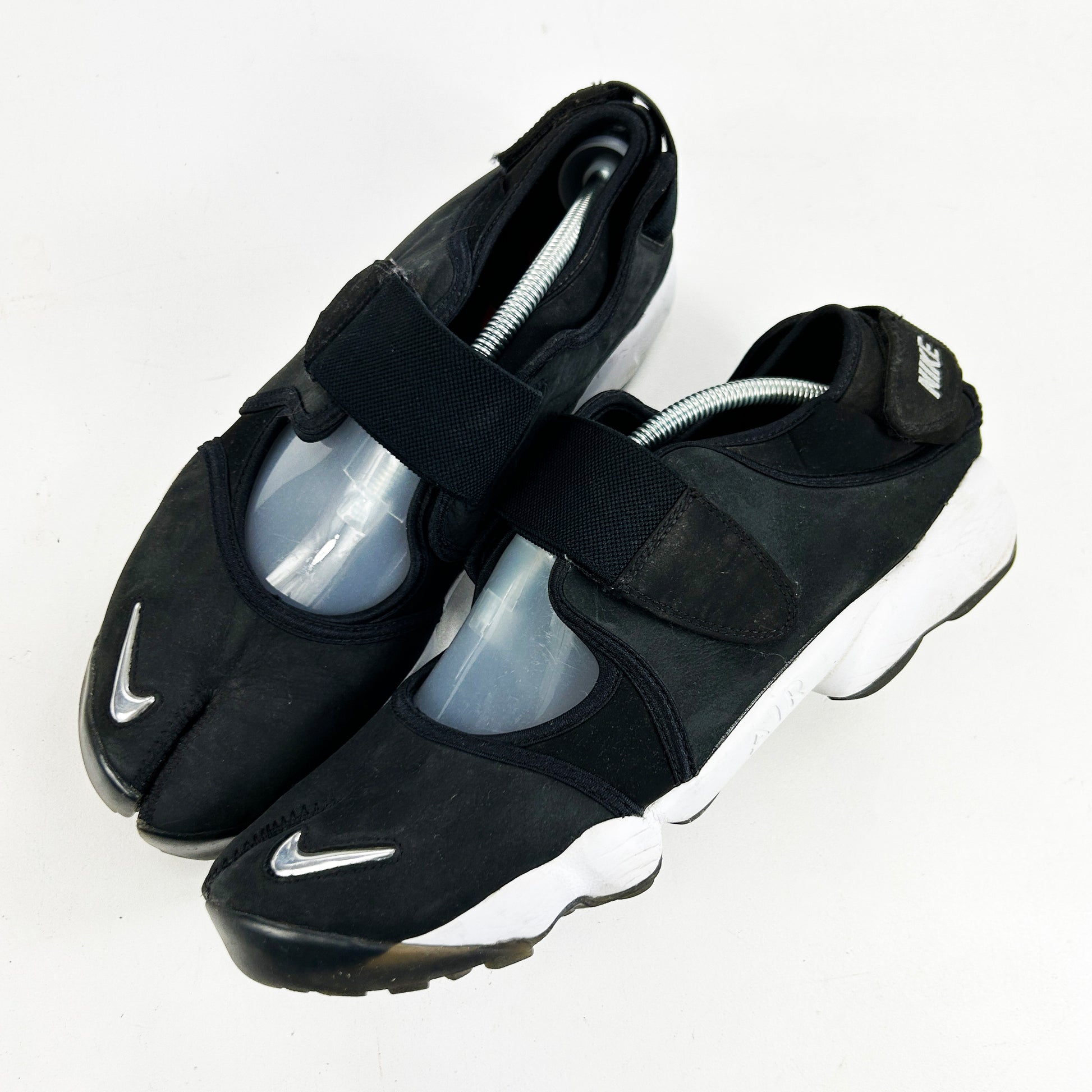 2016 marked the 20th anniversary of the Air Rift, one of Nike's most iconic left-field silhouettes. For the occasion Nike released a handful of new colourways, although this pair in particular was the official anniversary edition. It featured matte leather uppers, with neoprene panelling and a jewel Swoosh (this was the first and only time a jewel Swoosh was implemented on the Rift). Thes remain in a good, used condition. There are rips to the neoprene at the lateral side heel strap area, however this shouldn't affect wear as the fabric is dual-layered. See policies before purchase.