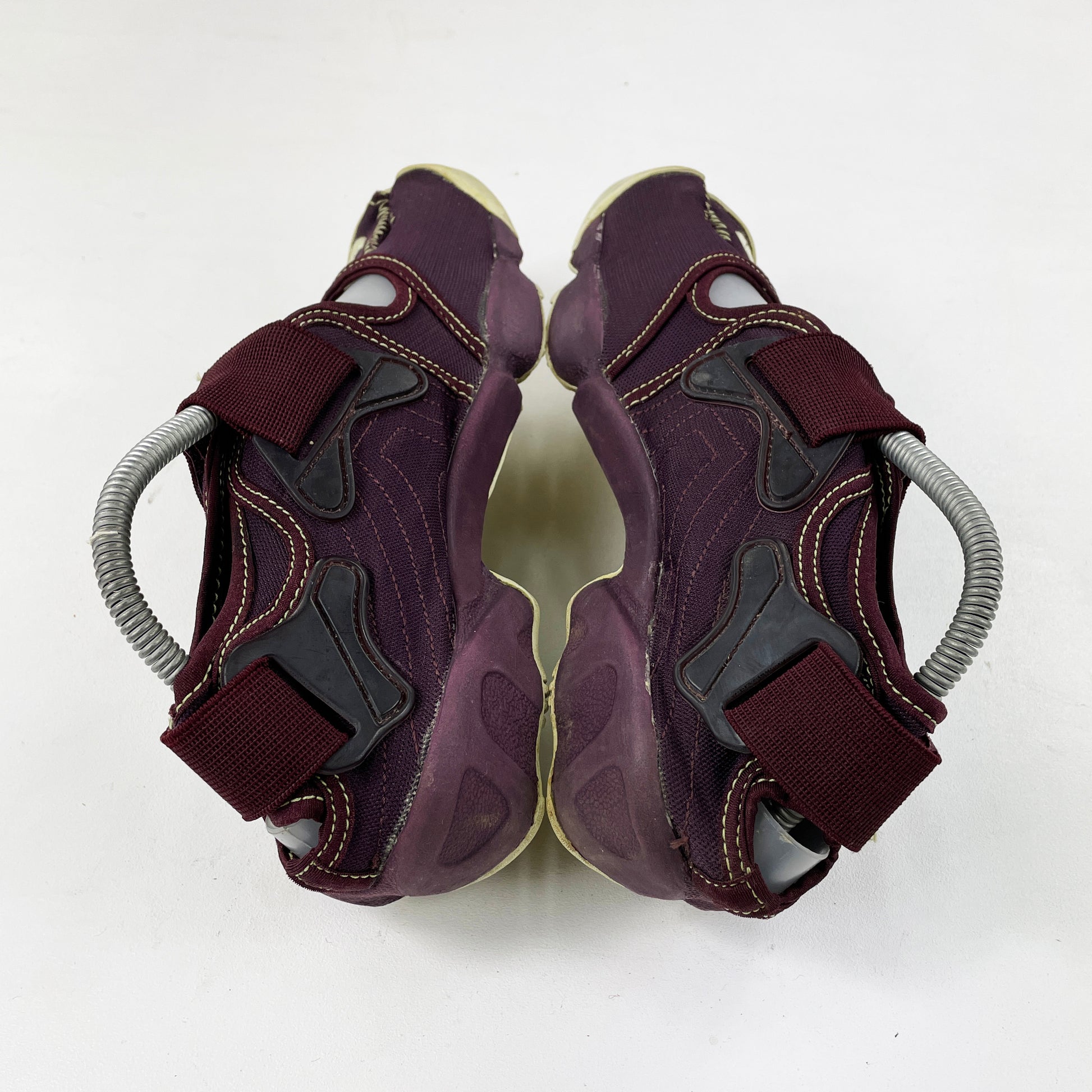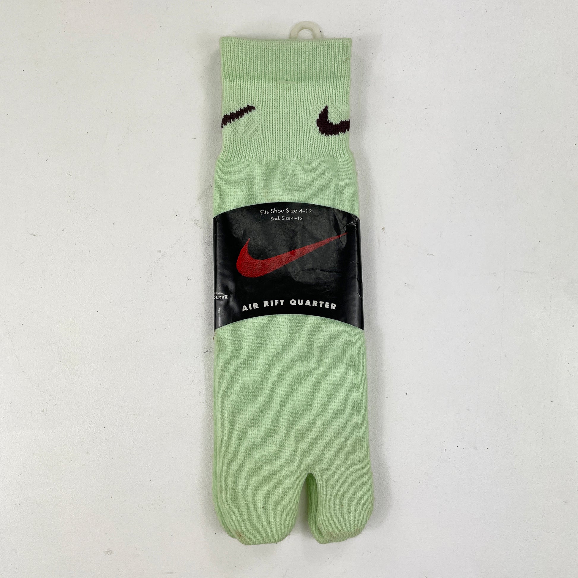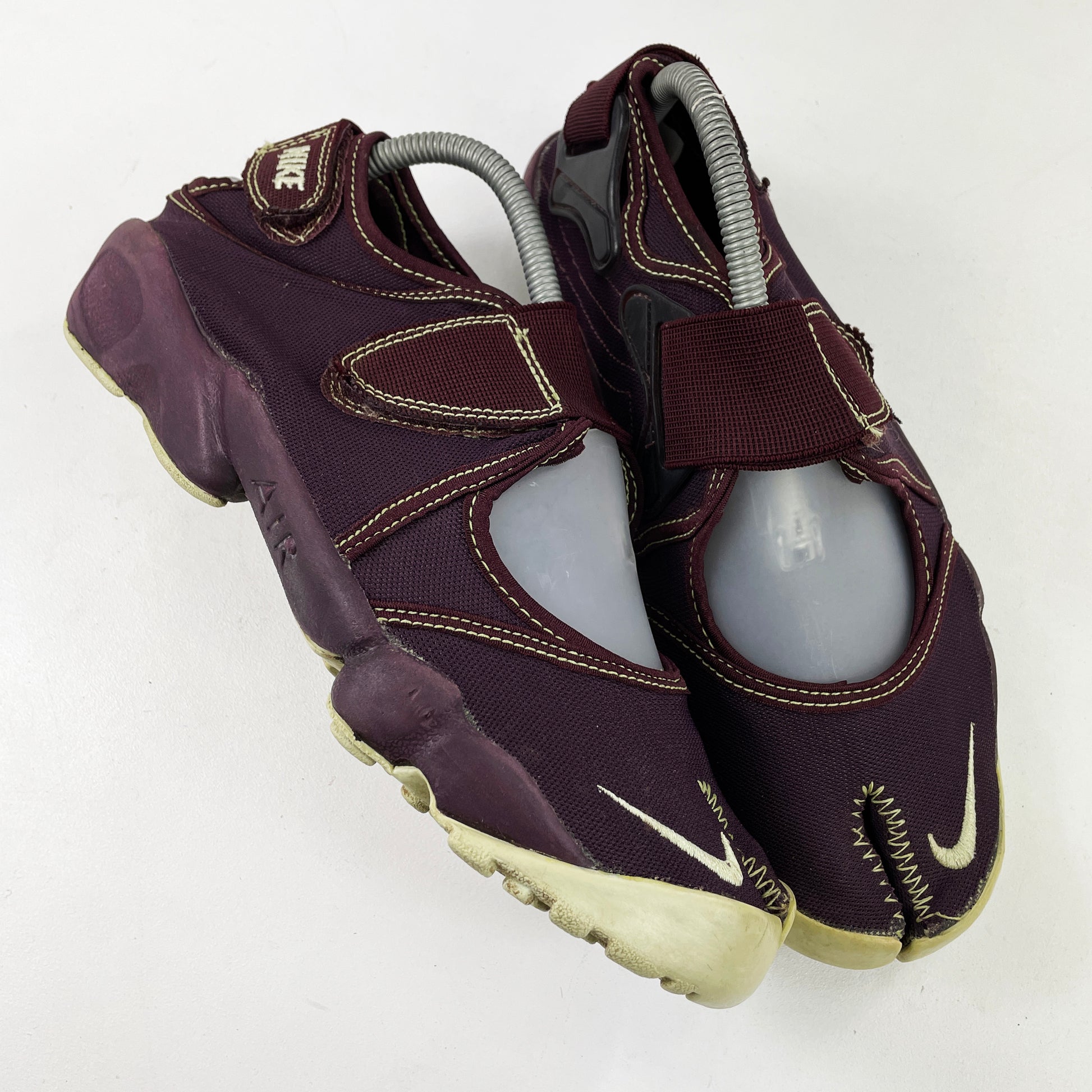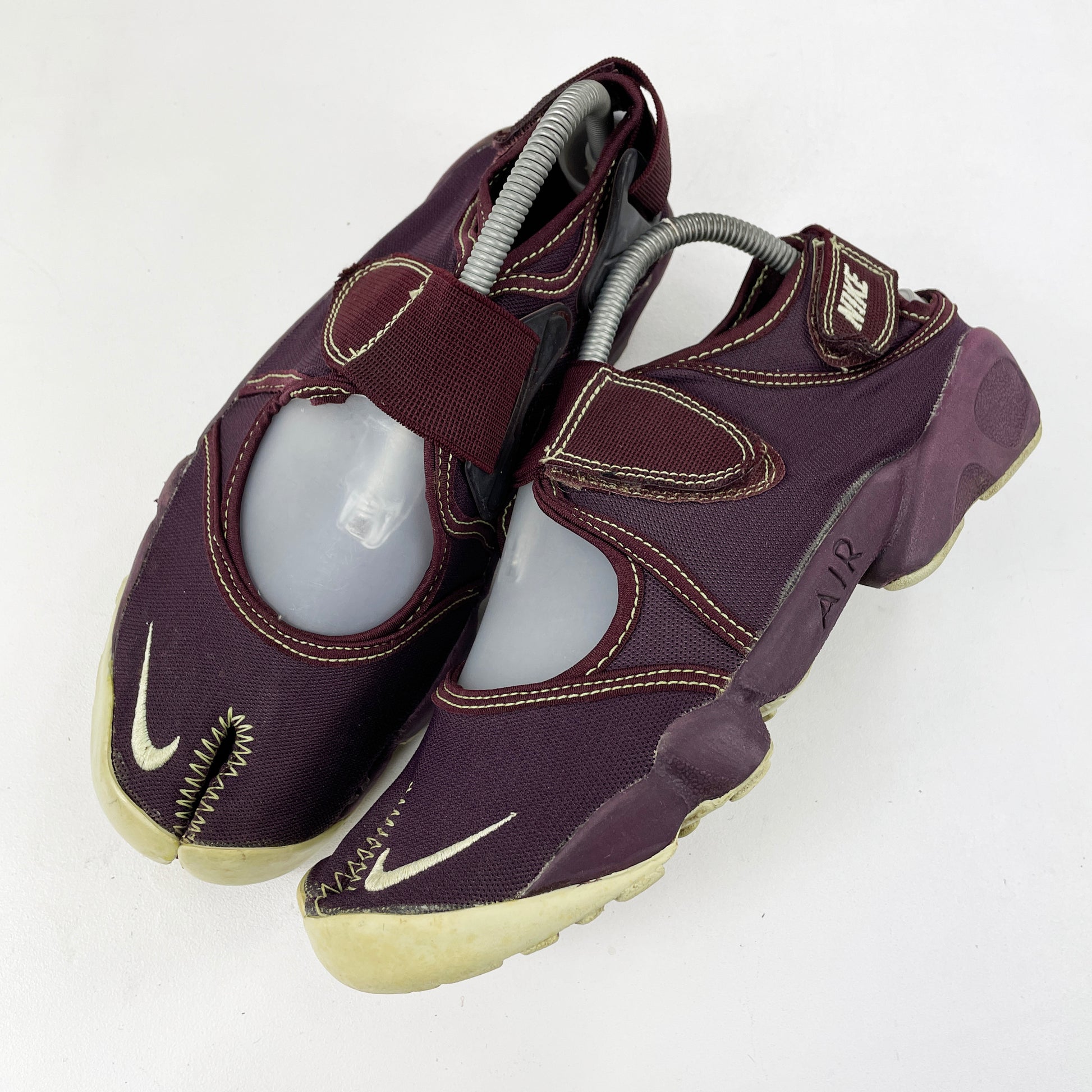 The original Air Rift was designed by Kip Buck and Tinker Hatfield with the aim of replicating the feeling of bare foot running. The original release, in 1996, featured a black pair with green and red accents, a colourway which was inspired by the Kenyan flag. The model is named after the Great Rift Valley in Kenya, where the country splits in two, this is one of the reasons behind the split toe design. Here we have 6 rare, colourful pairs from 2001 and 2002, all with OG box. This pair comes with deadstock matching socks. Good, used condition.