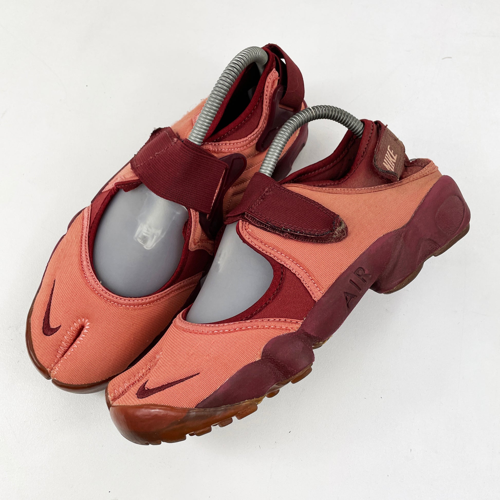 The original Air Rift was designed by Kip Buck and Tinker Hatfield with the aim of replicating the feeling of bare foot running. The original release, in 1996, featured a black pair with green and red accents, a colourway which was inspired by the Kenyan flag. The model is named after the Great Rift Valley in Kenya, where the country splits in two, this is one of the reasons behind the split toe design. Here we have 6 rare, colourful pairs from 2001 and 2002, all with OG box. Good overall used condition, some marks and minor flaws.