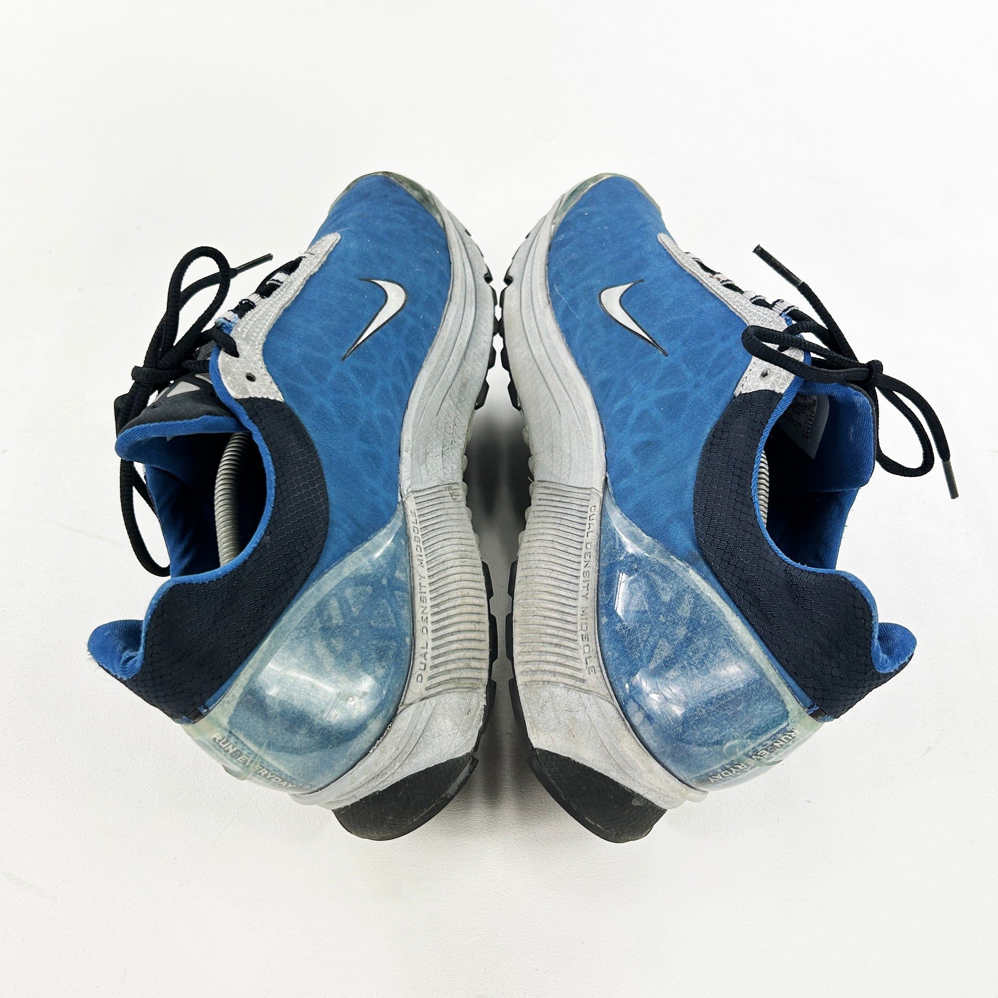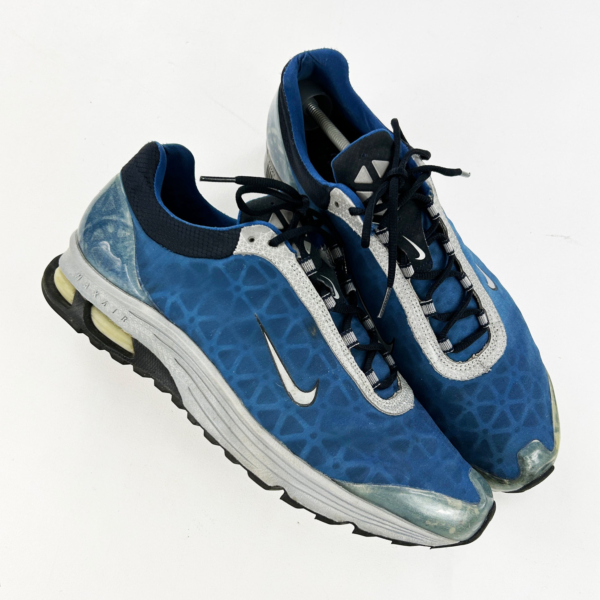 The Storm Beacon released as a shoe specifically designed for running in wet conditions. Nike also released a Summer Beacon a year later which of course, was designed for running in warmer weather, drier weather. Upon release there wasn't much love for the Storm Beacon and the silhouette surprisingly filled outlets. Fast forward nearly 20 years and the love for this model has been rekindled. We certainly hope for a retro one day. Pictured we have a blue colourway, remaining in good used condition. PLEASE NOTE THESE FIT HALF, TO A WHOLE SIZE UP. Please see policies before purchase.