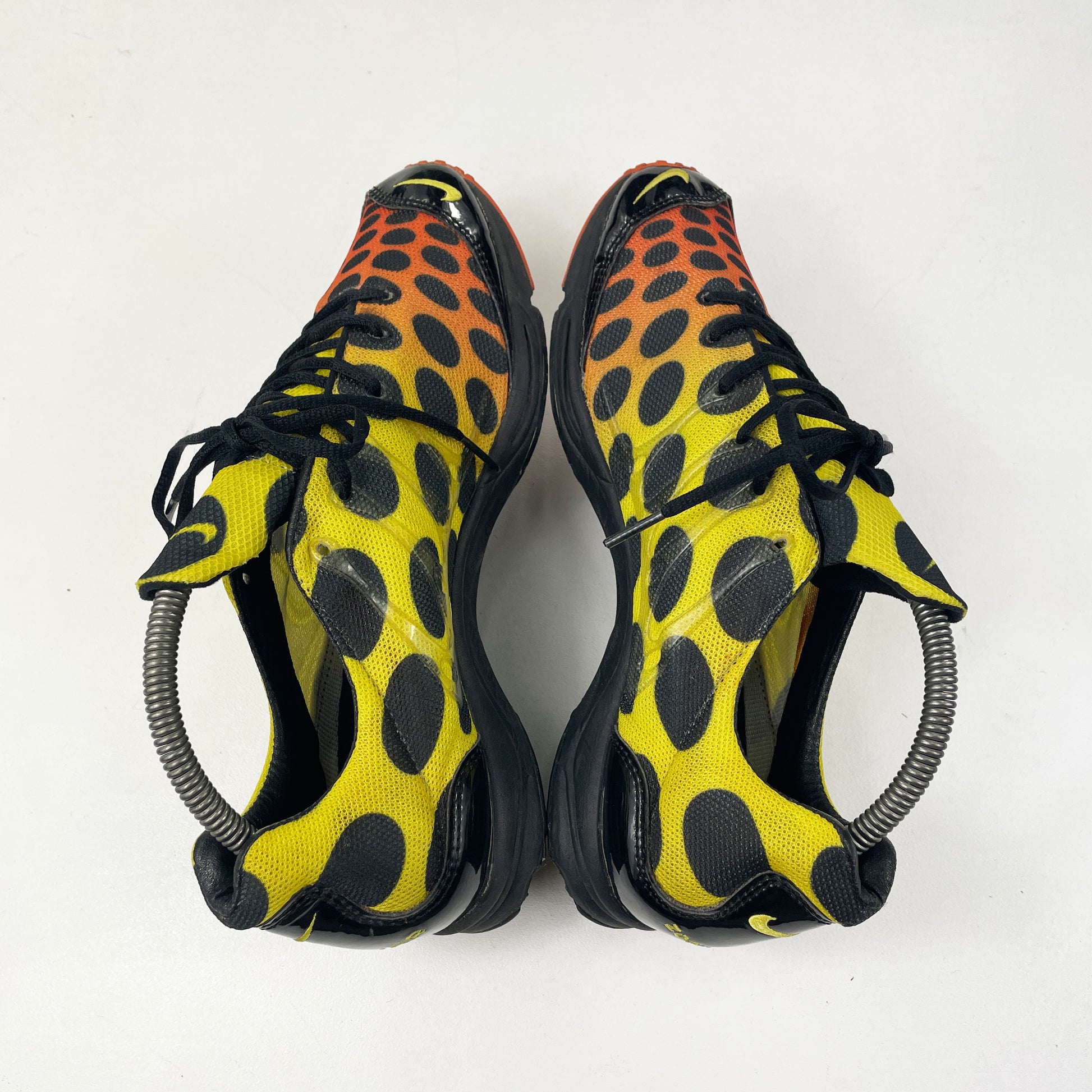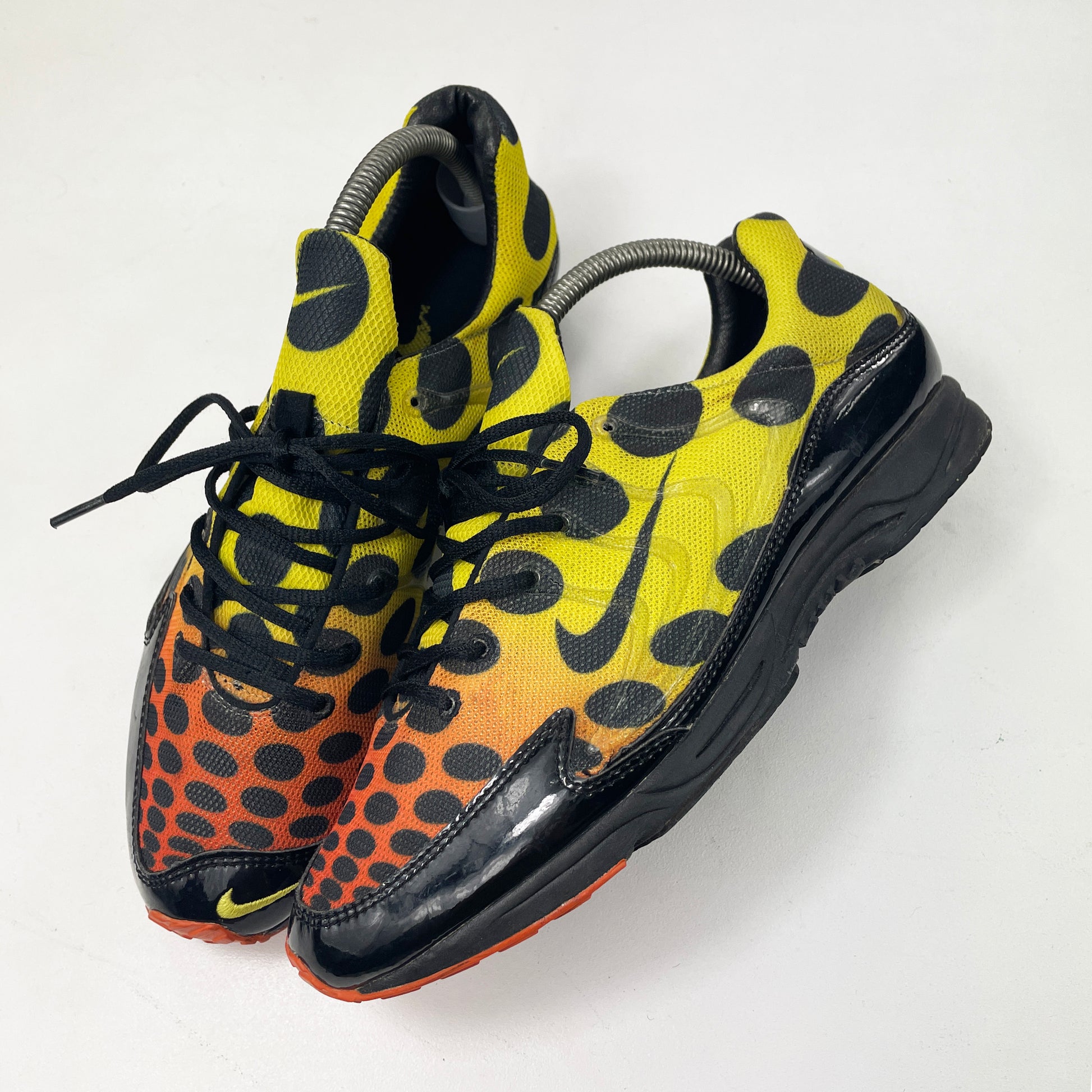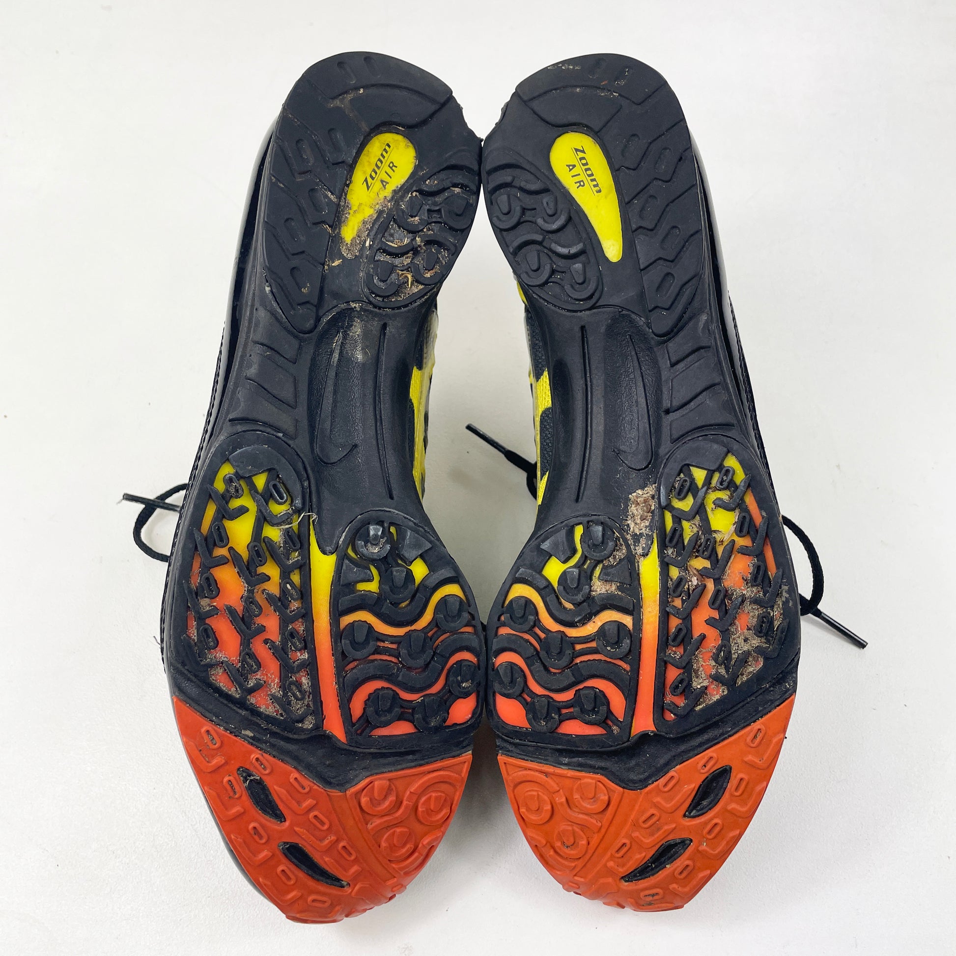 The Ventulus was originally introduced as a spiked runner through the Bowerman Series. Soon after, they released this version with a rubber sole for running off the track. They released in a variety of colourways, most notably this Black/Lightening/Orange colourway with the patent leather toe. They’re a super light-weight runner, with a mesh upper and supporting cage on the medial and lateral sides. This sample pair has been worn lightly, remaining in great condition.