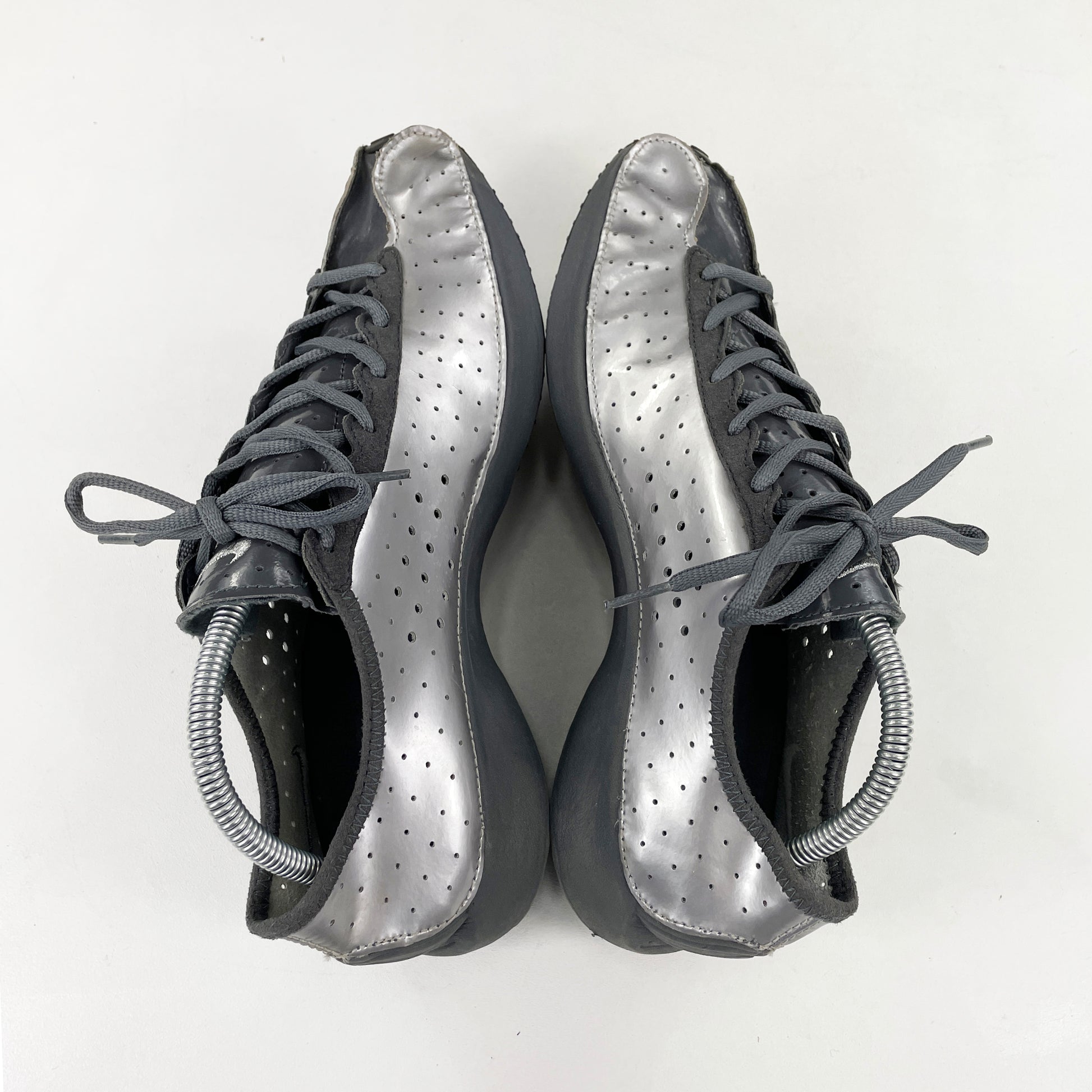 The Super Fly was introduced in 2001 as a minimalistic and lightweight running shoe. It features a simple upper with an inside-out like construction at the forefoot aiding with fit and comfort. The Super Fly went on to release in multitude of different colourways; there are chrome, snakeskin and even argyle print pairs. It didn’t take long for the Caprice Neely designed shoe to catch Junya Watanabe’s eye. His Super Fly iteration was the third collaboration between himself and Nike, however it was the first time he actually altered a silhouette to better fit with the Comme Des Garçons aesthetic. Worn lightly, comes with OG box.