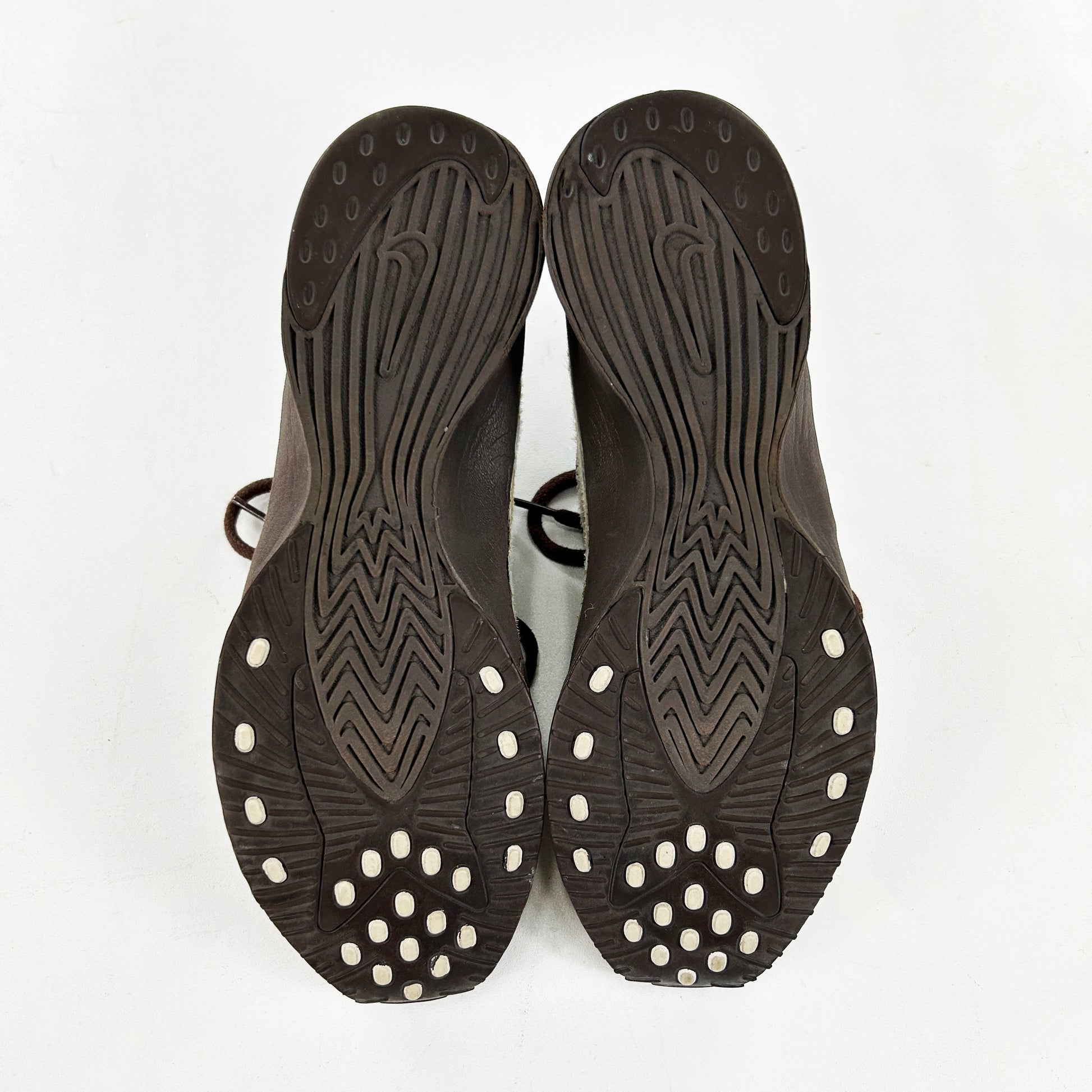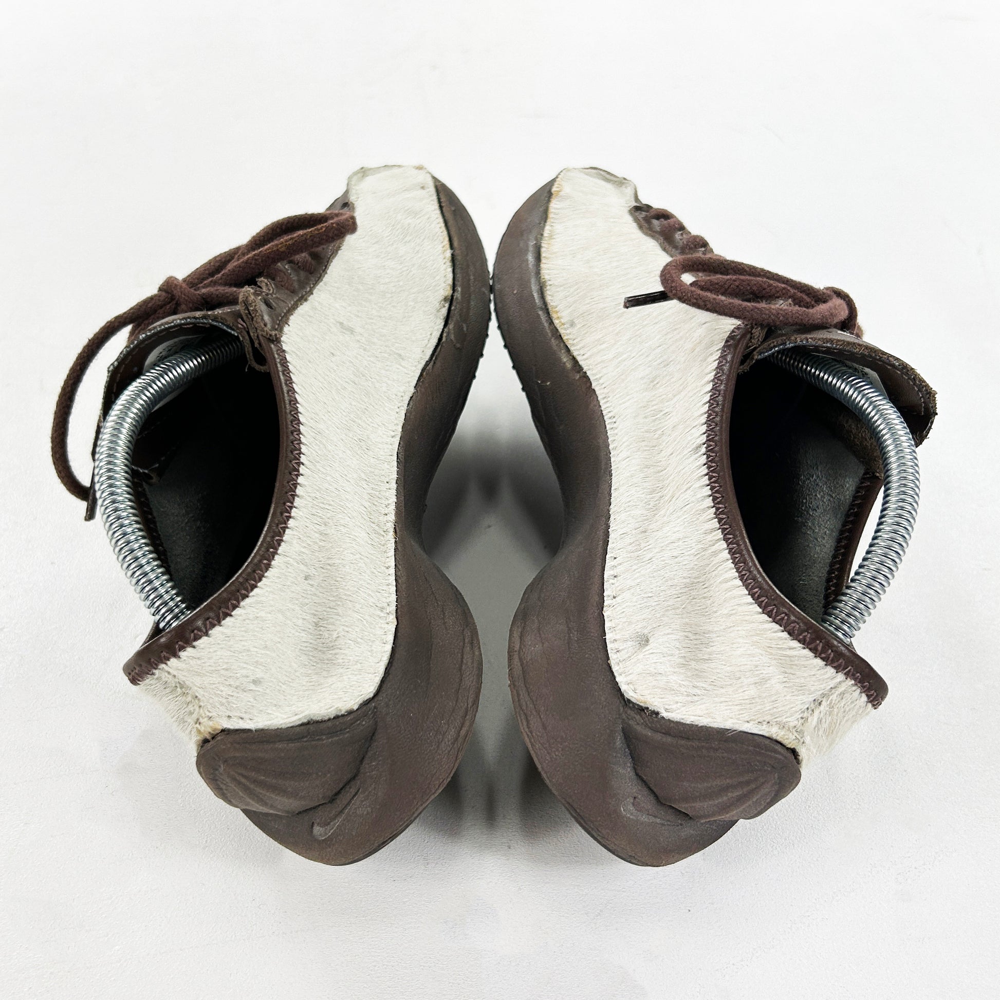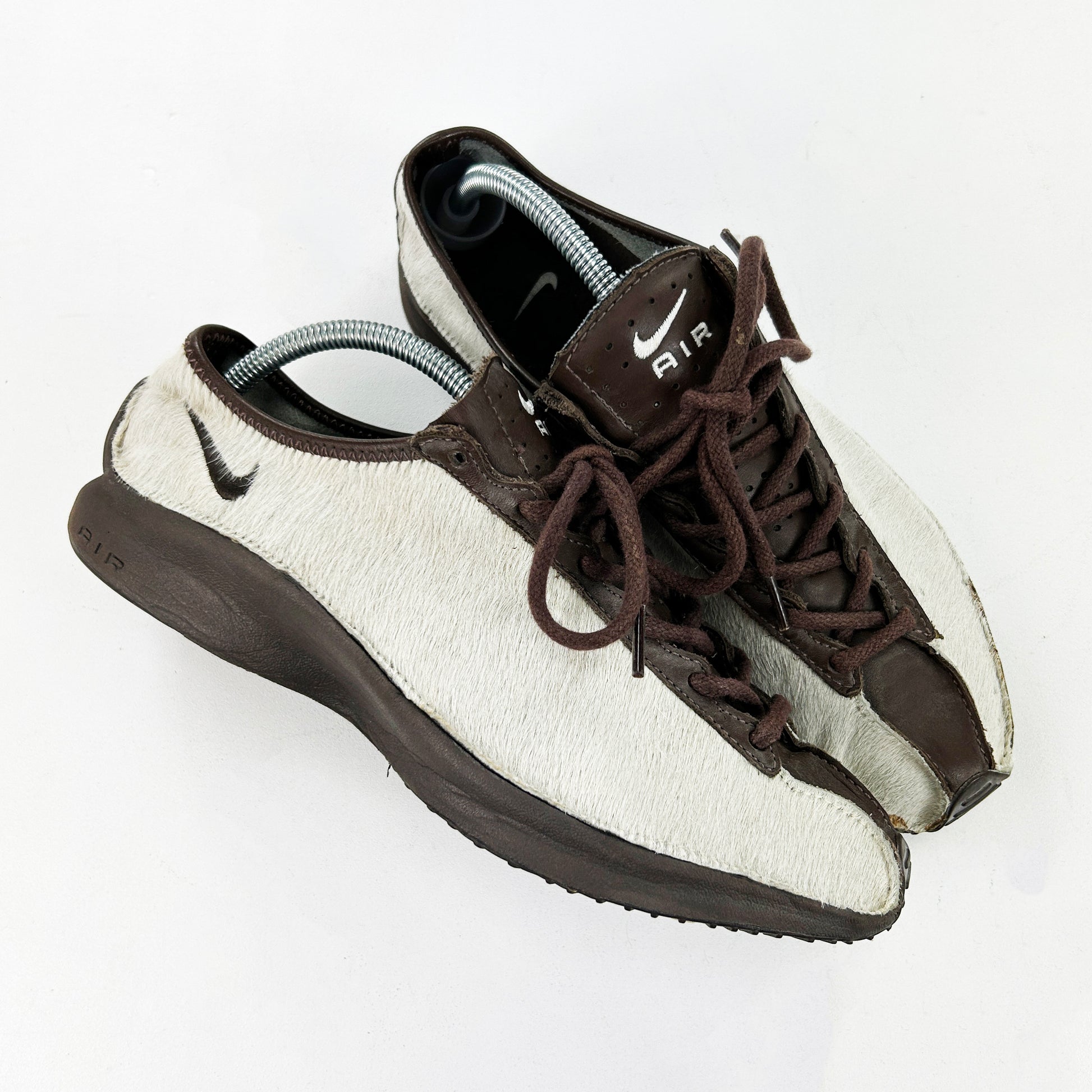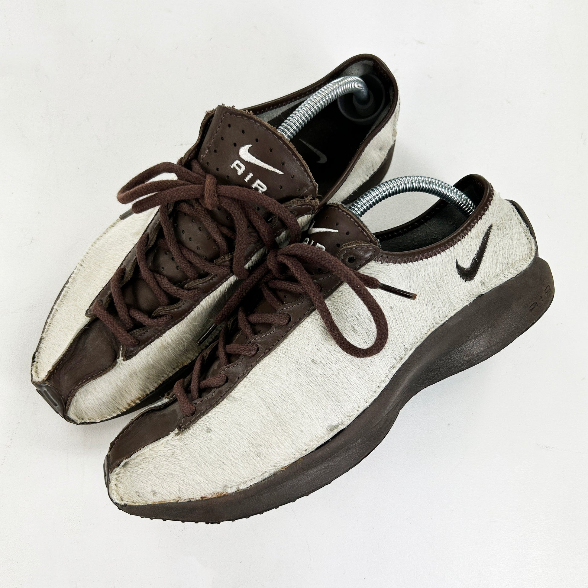The Super Fly was introduced in 2001 as a minimalistic, lightweight running shoe. It features a simple leather upper with an inside-out like construction at the forefoot aiding with fit and comfort. The Super Fly went on to release in a multitude of different crazy colourways, there are chrome pairs, snakeskin pairs and even argyle print pairs. It didn’t take long for the Caprice Neely designed shoe to catch Junya Watanabe’s eye. His Super Fly iteration was the third collaboration between himself and Nike, however it was the first time he actually altered a silhouette to fit in with Comme Des Garçons aesthetic. In 2002 'The Untouchable Collection' released, it was the brainchild of Hiroshi Fujiwara and featured a Dunk High Premium, ACG Air Baked, Air Superfly and a previously unseen iteration of the Air Rift - the Rift Cover. The collection saw the aforementioned models made up in high quality leathers and pony hairs. Vintage condition. See policies before purchase.