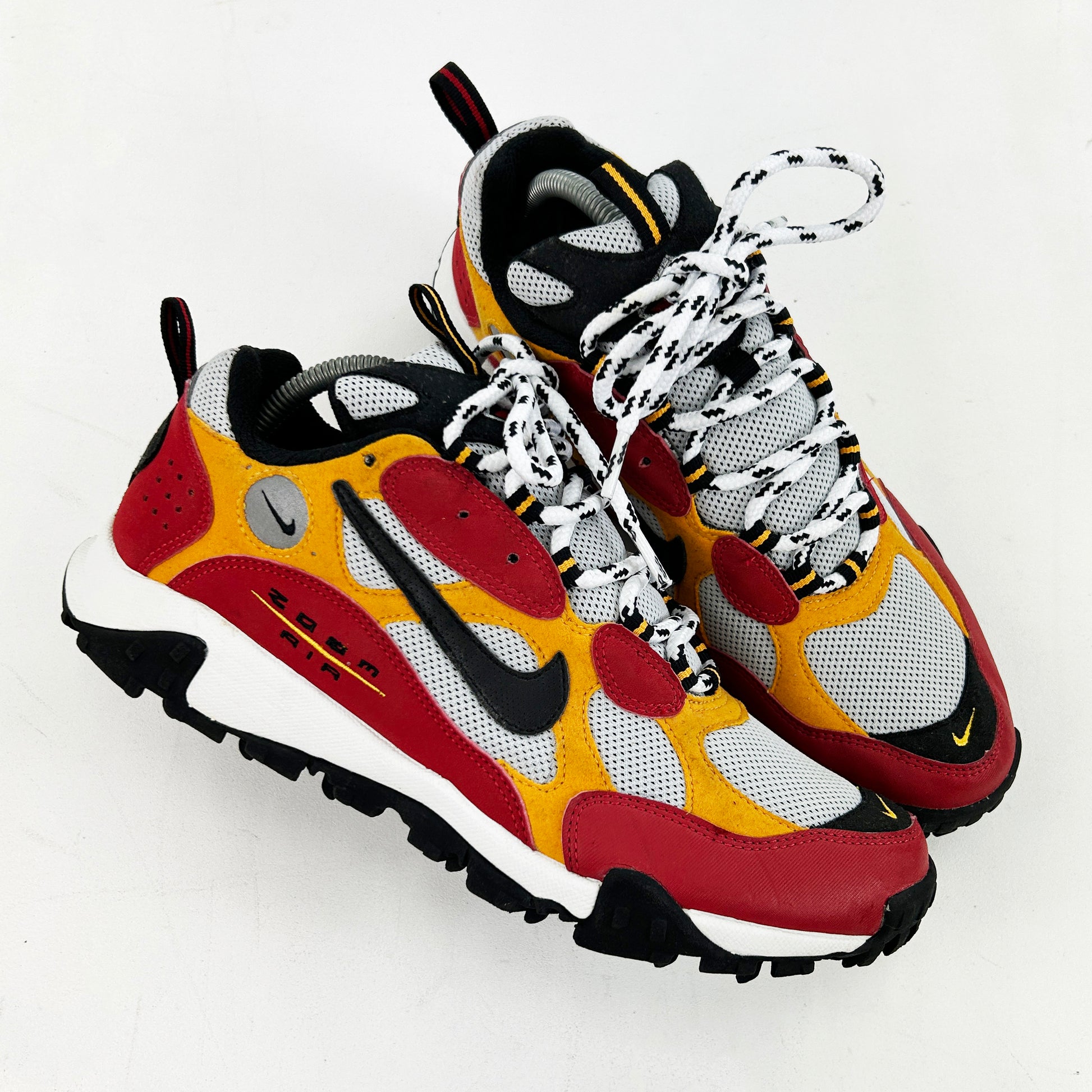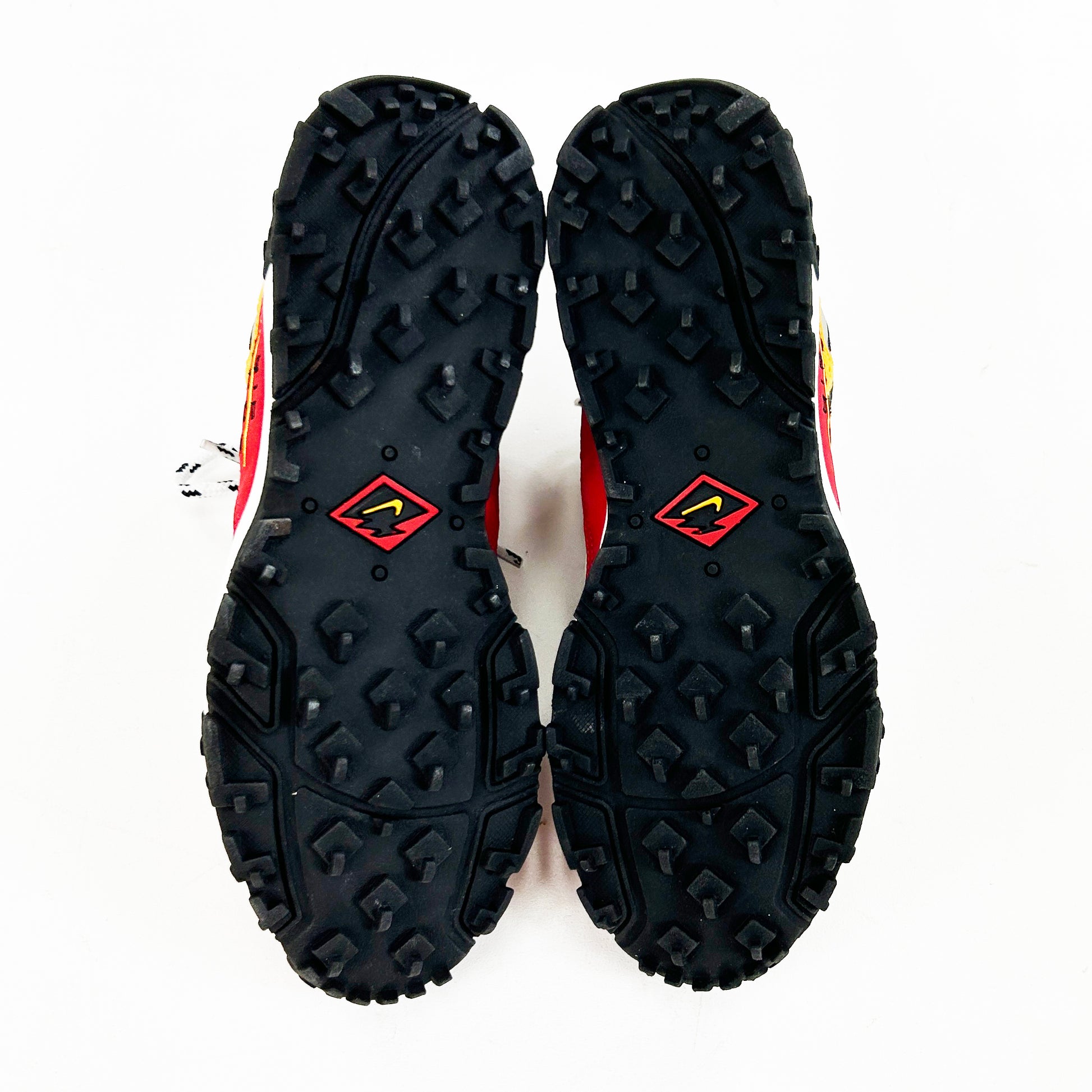 Undeniably one of the most iconic shapes in trail footwear, since its release the Peter Fogg designed Albis has made waves both in the forest and on the streets. The panelling, the mesh, the branding and of course the colour ways are what made this model stand out, everything works harmoniously. When deciding the colours for the Albis, Fogg looked towards what a European consumer would want – he took influence from race cars and mountain bikes of the time. Deadstock, unworn pair of the Red/Taxi colourway - find another pair! See policies before purchase.