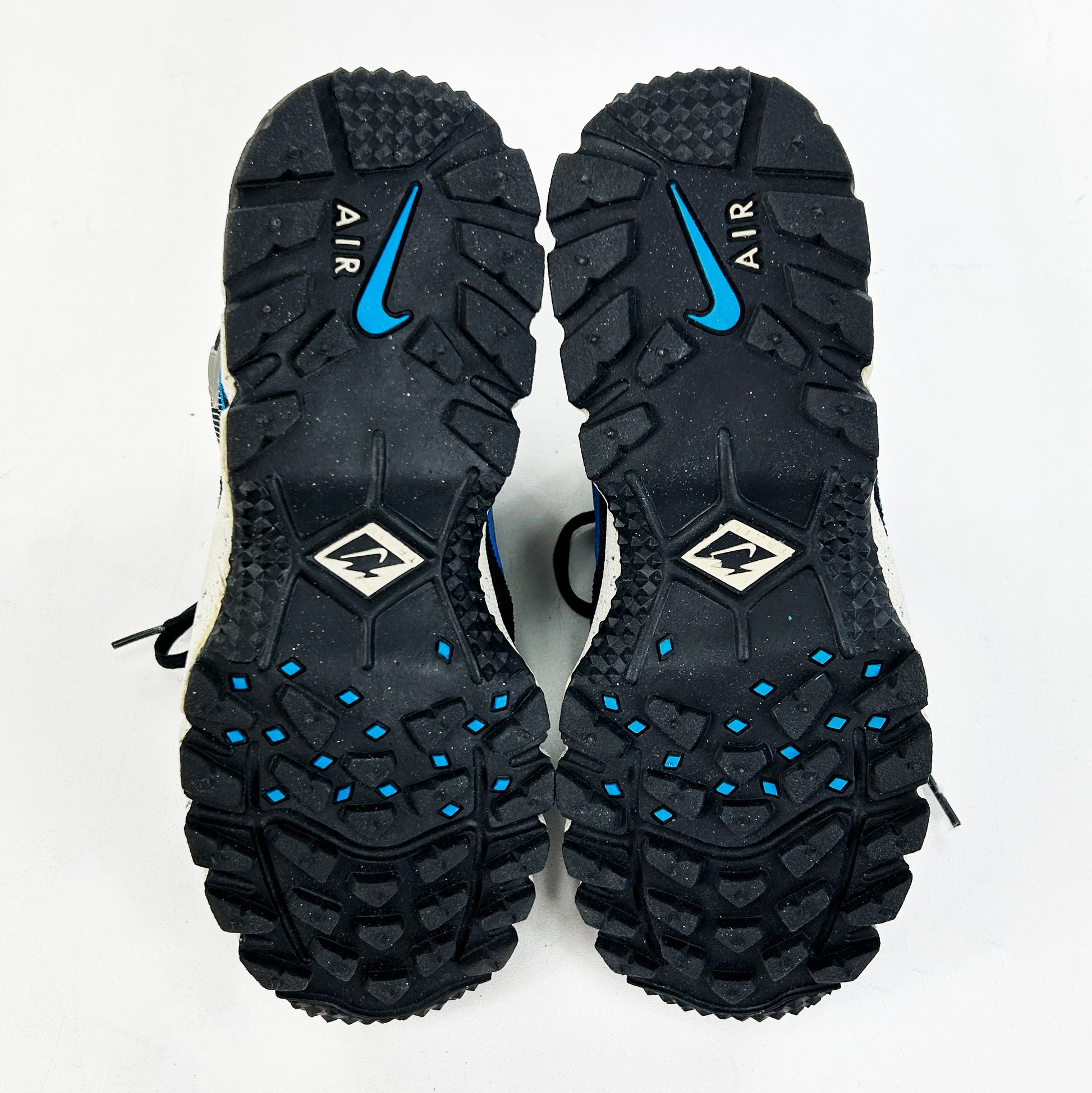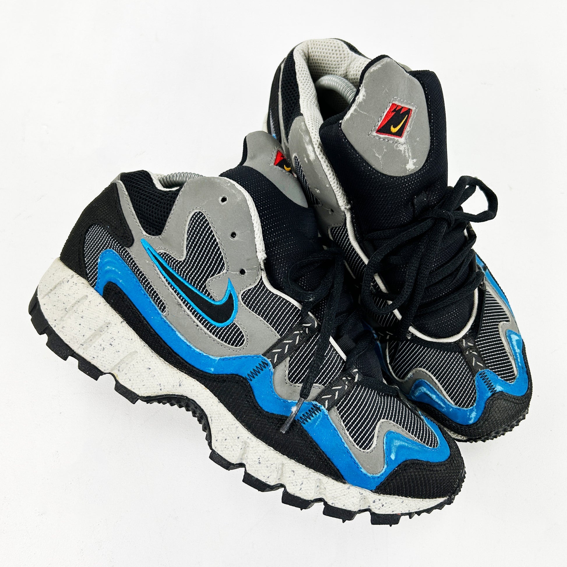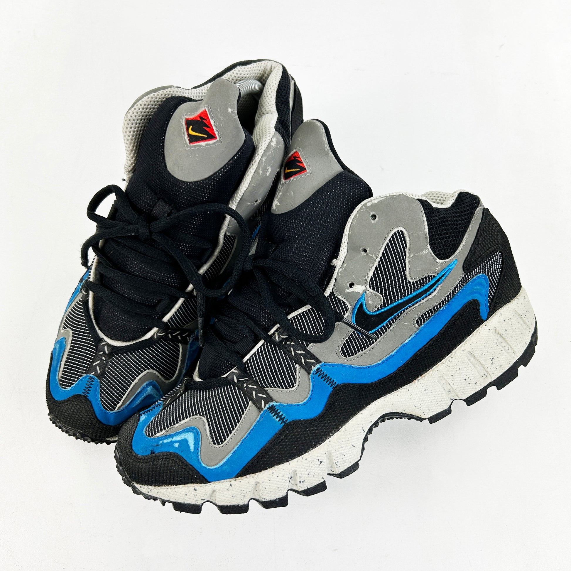After nearly 10 years of sourcing obscure Nikes (especially Terra models), I feel as if I can say with fair confidence that the Terra Bryce is one of, if not the, rarest / hardest Terra models to come by. This is the second pair I've ever seen for sale, and they're one of my favourite Nike's of all time. Everything about them embodies that late 90s trail styling so many of us love; the fabrics, materials, tooling and proportions - they're all on point, especially that unwrapped Humara midsole. If these were my size, I'd absolutely be keeping them. Despite some minor storage/age related marks on the uppers, these are in great condition, with plenty of nipples left on the outsoles. See policies before purchase.