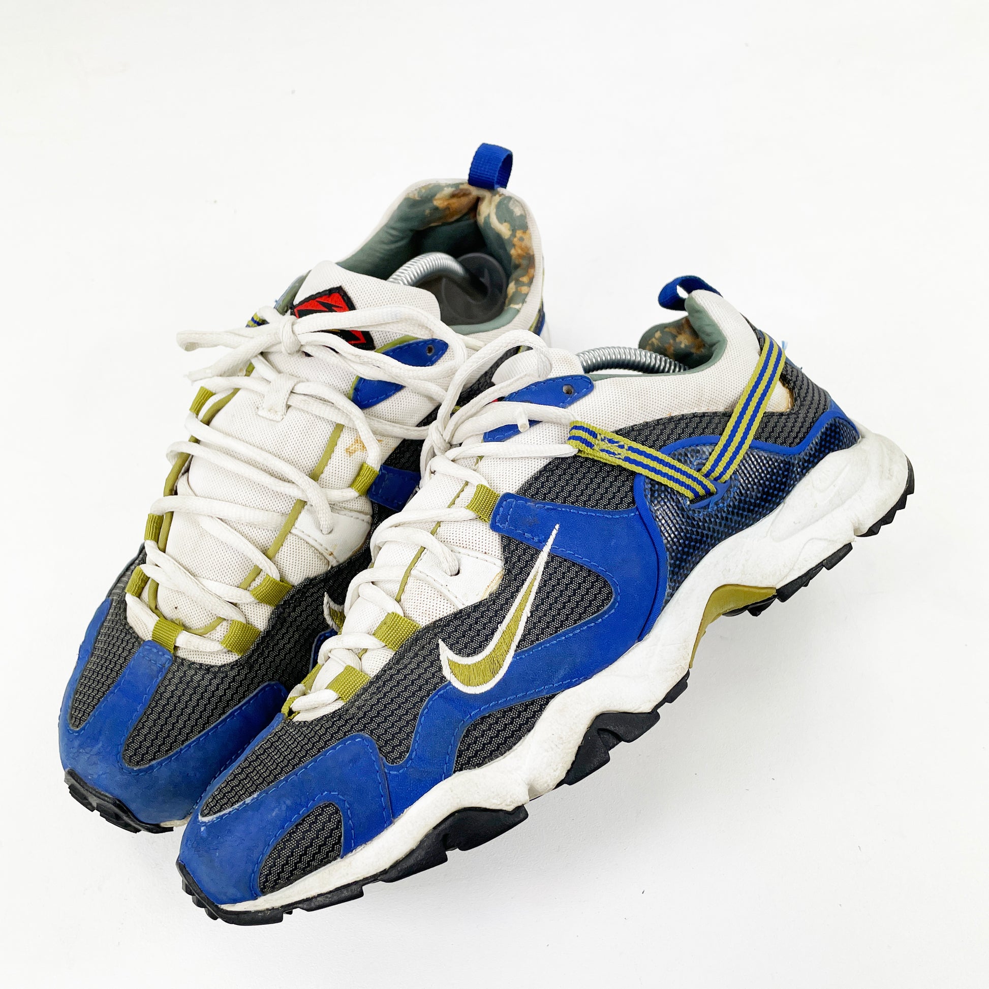 This is serious Terra obscurity! The Terra Fire 2 was designed to be a versatile training shoe for both the trail and the road. It was released in the second year of Nike’s iconic ‘Terra’ line and designed by none other than Peter Fogg. Fogg was responsible for some of Nike’s greatest trail running shoes. This model features a water resistant upper with synthetic leather and durable mesh and a low-profile midsole with heel and forefoot air units.