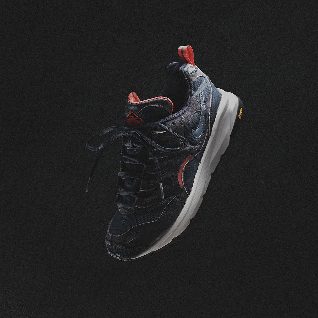 A classic Peter Fogg design that has seen countless re-releases, colourways and iterations. There has been slip on Humaras, considered Humaras and an Air Max Humara. They are named after the Tarahumara, an indigenous group living in the state of Chihuahua in Mexico who are renowned for their long-distance running ability. This OG women’s colourway has never seen a retro, the uppers feature a mix of heavy-duty nylon mesh, suede and leather. These have been re-soled using a Vibram August sole unit, adding a more lifestyle look to this technical runner.