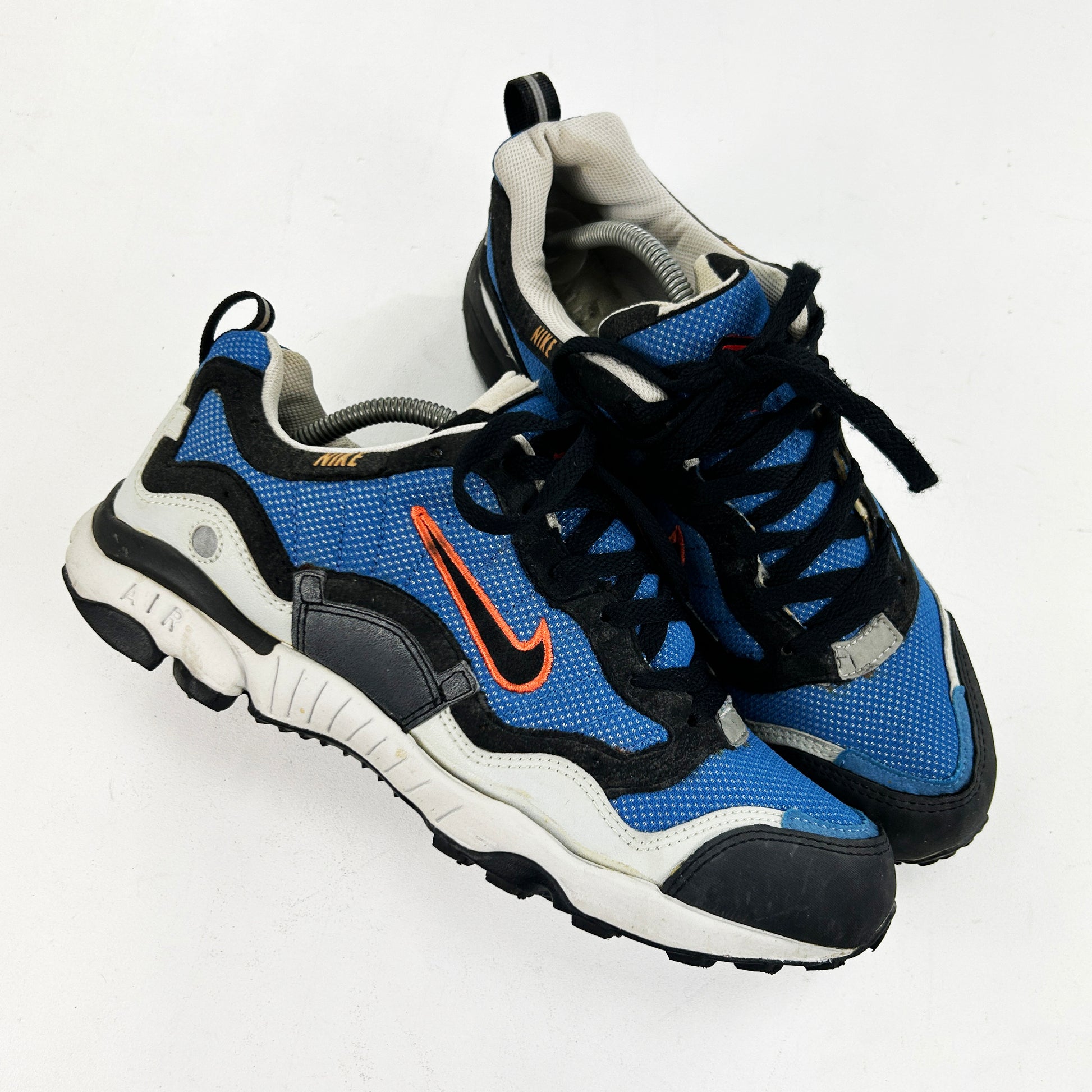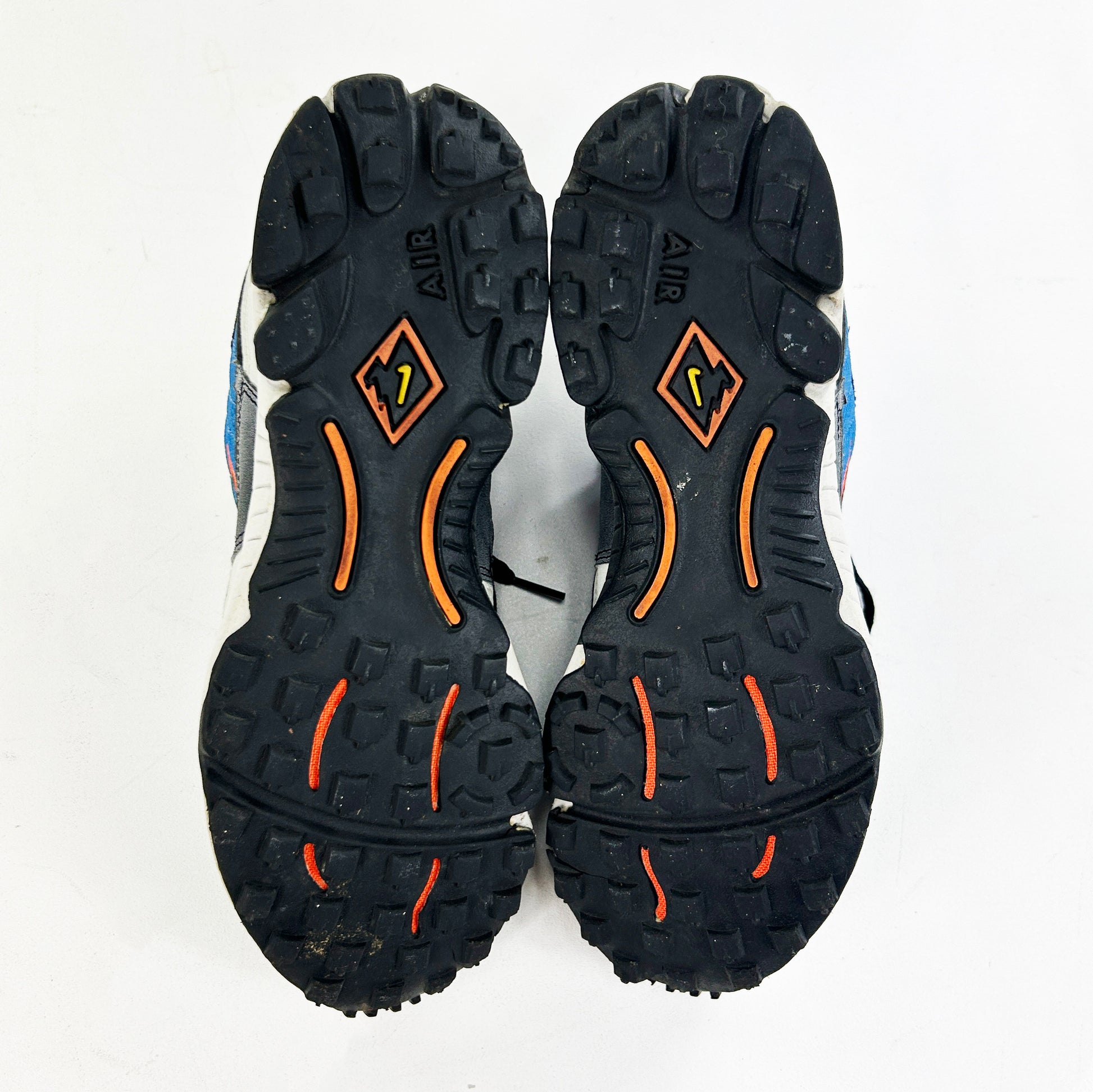 This silhouette was released around the same time as the Air Terra Humara as a more affordable option for trail running. Here in a later blue/orange colourway, they feature lots of intricate details including various shaped reflective panels and a contrast orange stitch-trimmed Swoosh. Peter Fogg was inspired by bull-bars on the front of trucks when designing this model! Vintage, worn condition. In need of work. No insoles. See policies before purchase.