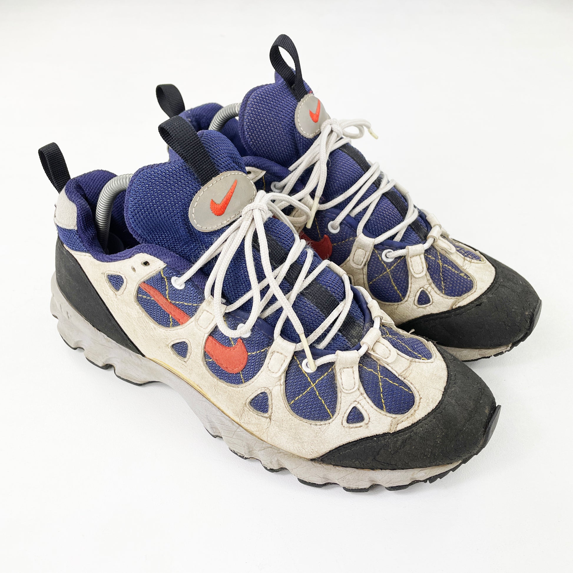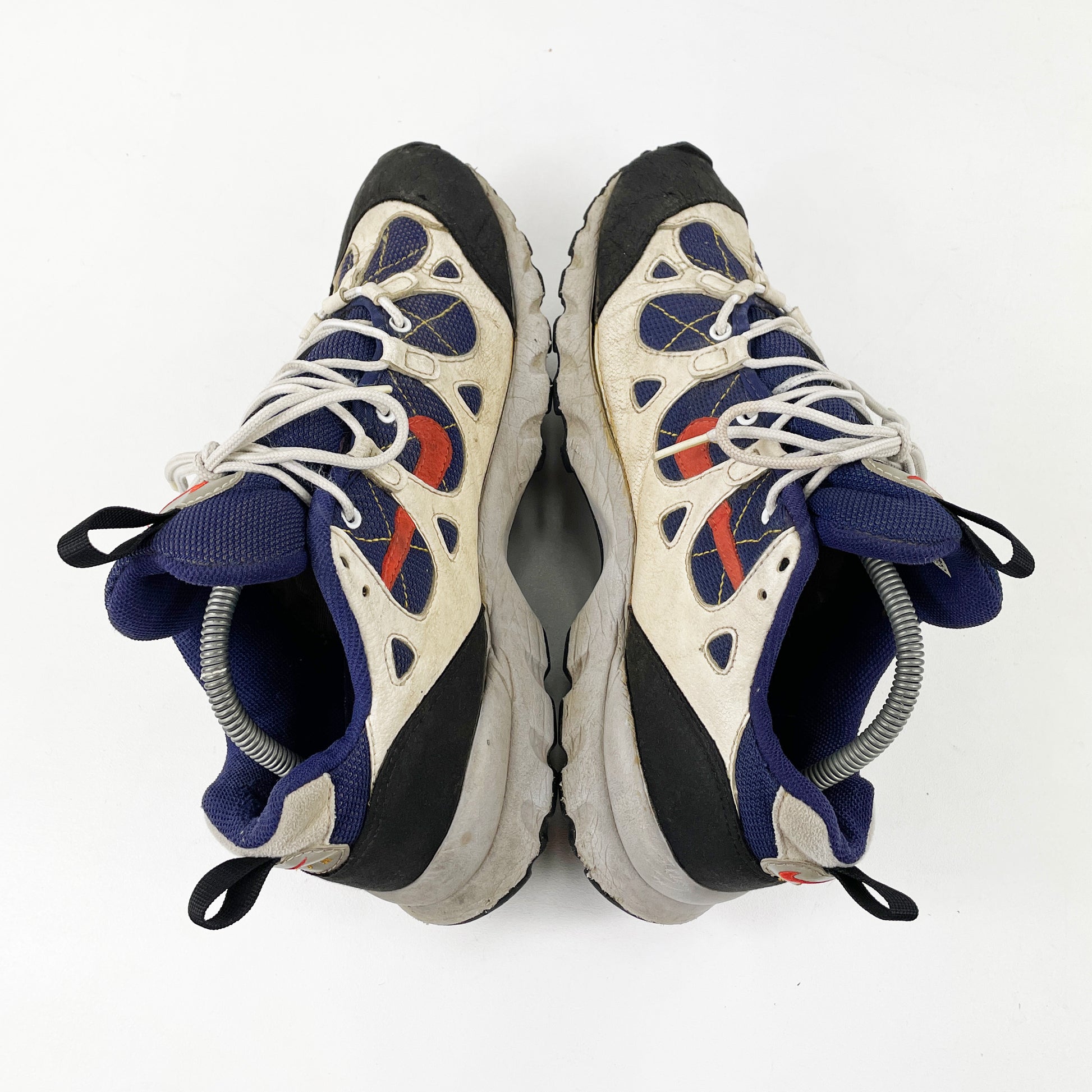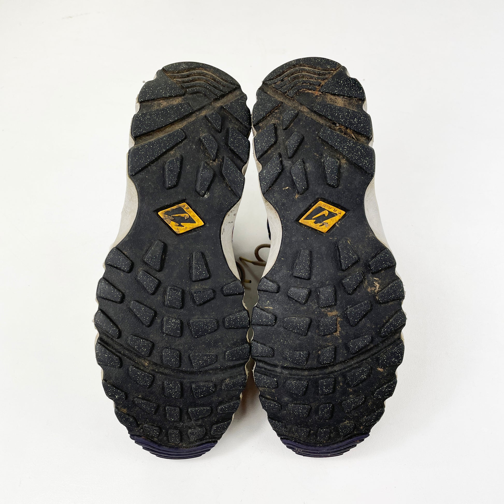 As far as Terra models go the Zori is up there with one of the rarest and certainly most sought after by trail running collectors. The silhouette is one of the earliest models from the Terra line and has never seen a retro since the original release. They feature a mesh upper with contrast stitch details, with full grain leather overlays. The lacing on the Zori is also worth noting, very unique. Worn vintage condition, with no signs of crumbling and spots of separation. We recommend buying these for collection purposes only.