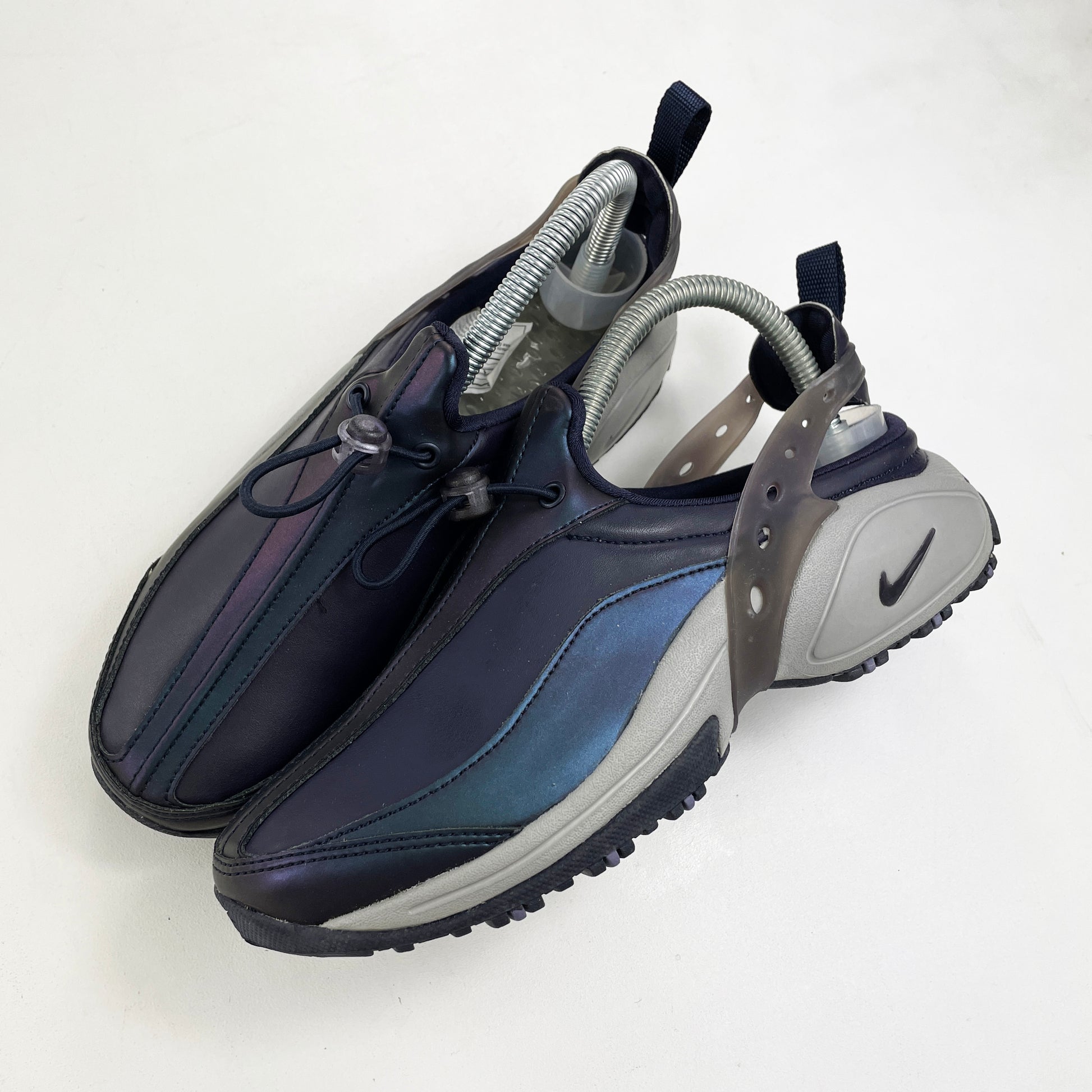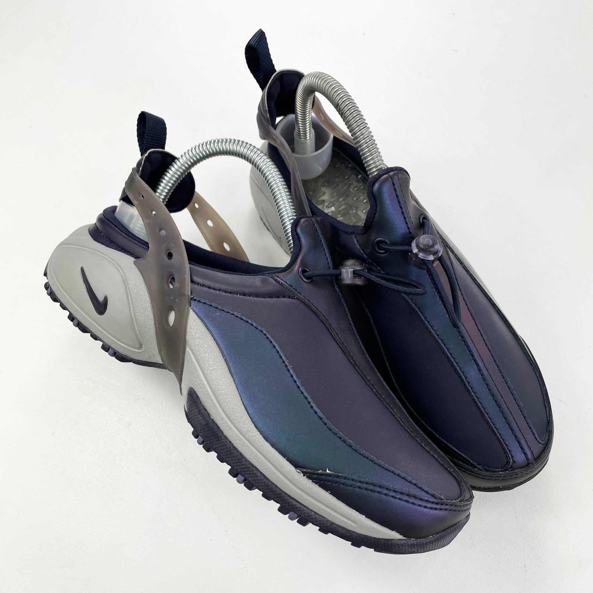The Air Visi Havoc was a women’s model released in a wide array of colourways as a toned-down predecessor to the Air Max Craze. The slip-on model features a toggle tightening system, an upper constructed of leather and the same heel strap as the Air Max Craze. This particular colourway features an iridescent leather upper with contrast grey midsole. Vintage shoes, please take this into consideration when deciding to wear. Brand new, in OG box.