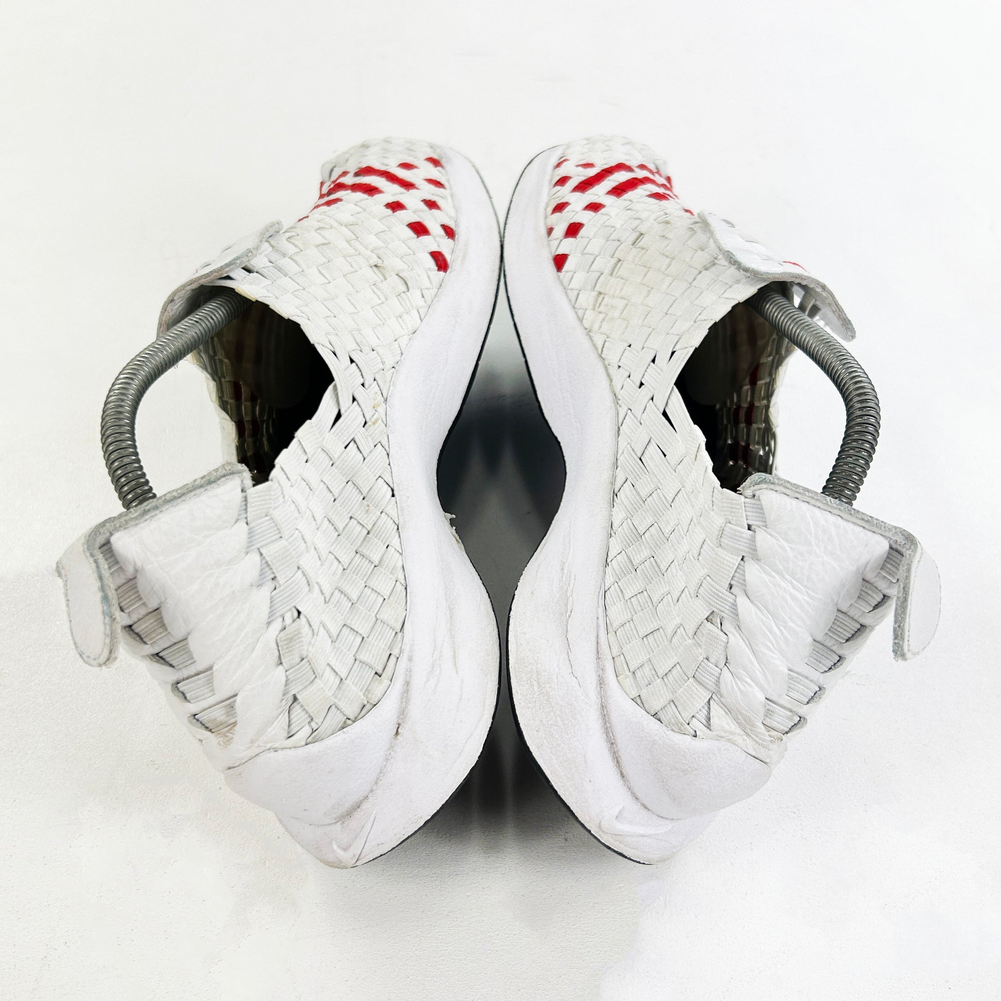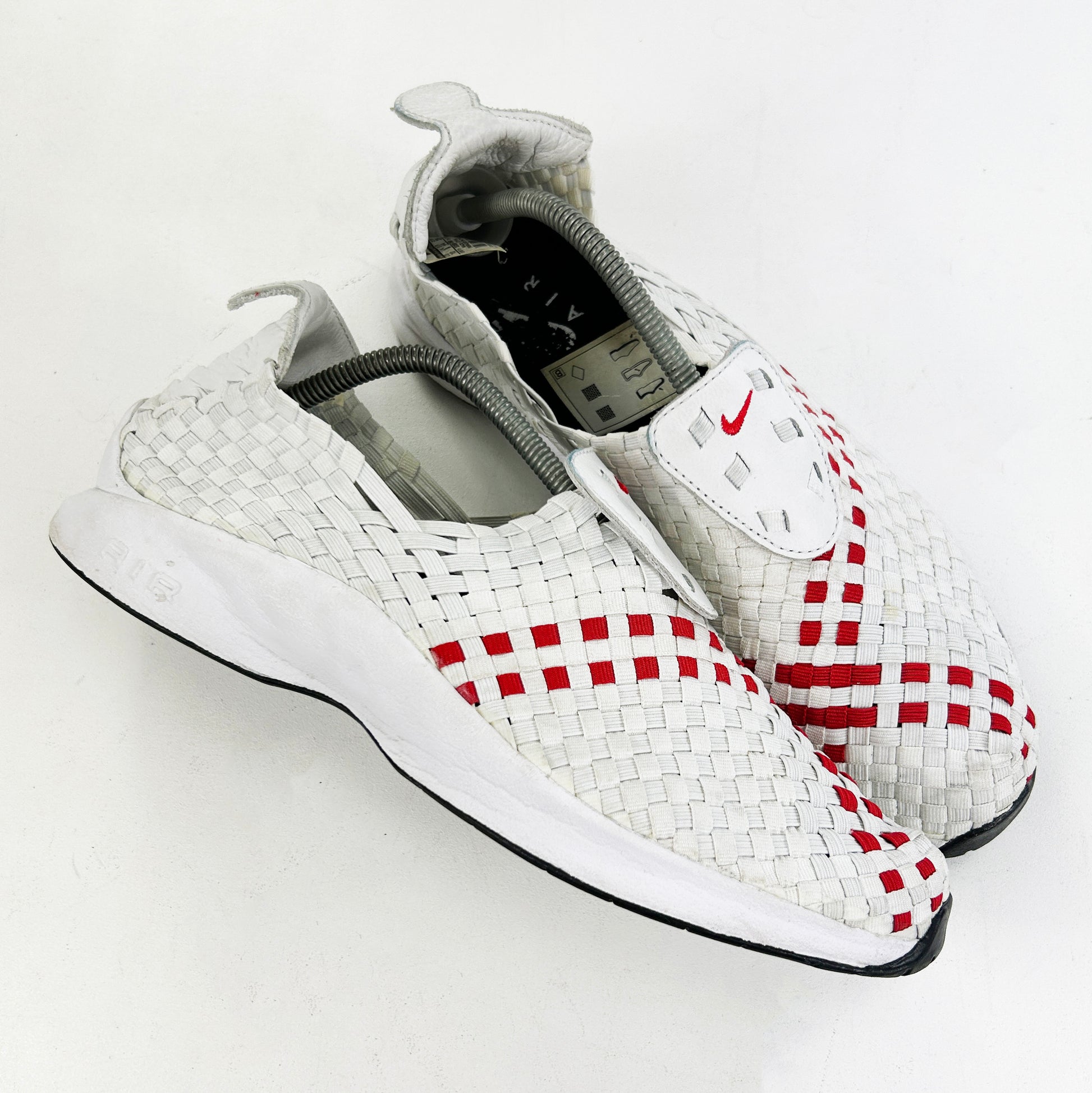 The Air Woven was first sampled in 2000 as a result of Mike Aveni's clever handywork. Later, the Air Woven was further released in a handful of limited colourways under Nike HTM, a coveted design team consisting of Hiroshi Fujiwara, Tinker Hatfield and Mark Parker. This hand-woven shoe is regarded as one of the most fascinating sneakers of the millennium, almost looking more ancient than contemporary. The Phylon midsole with Air technology makes for maximum comfort. This 2012 retro remain in good used condition, and come with OG box. Please note, these tend to fit roomy.