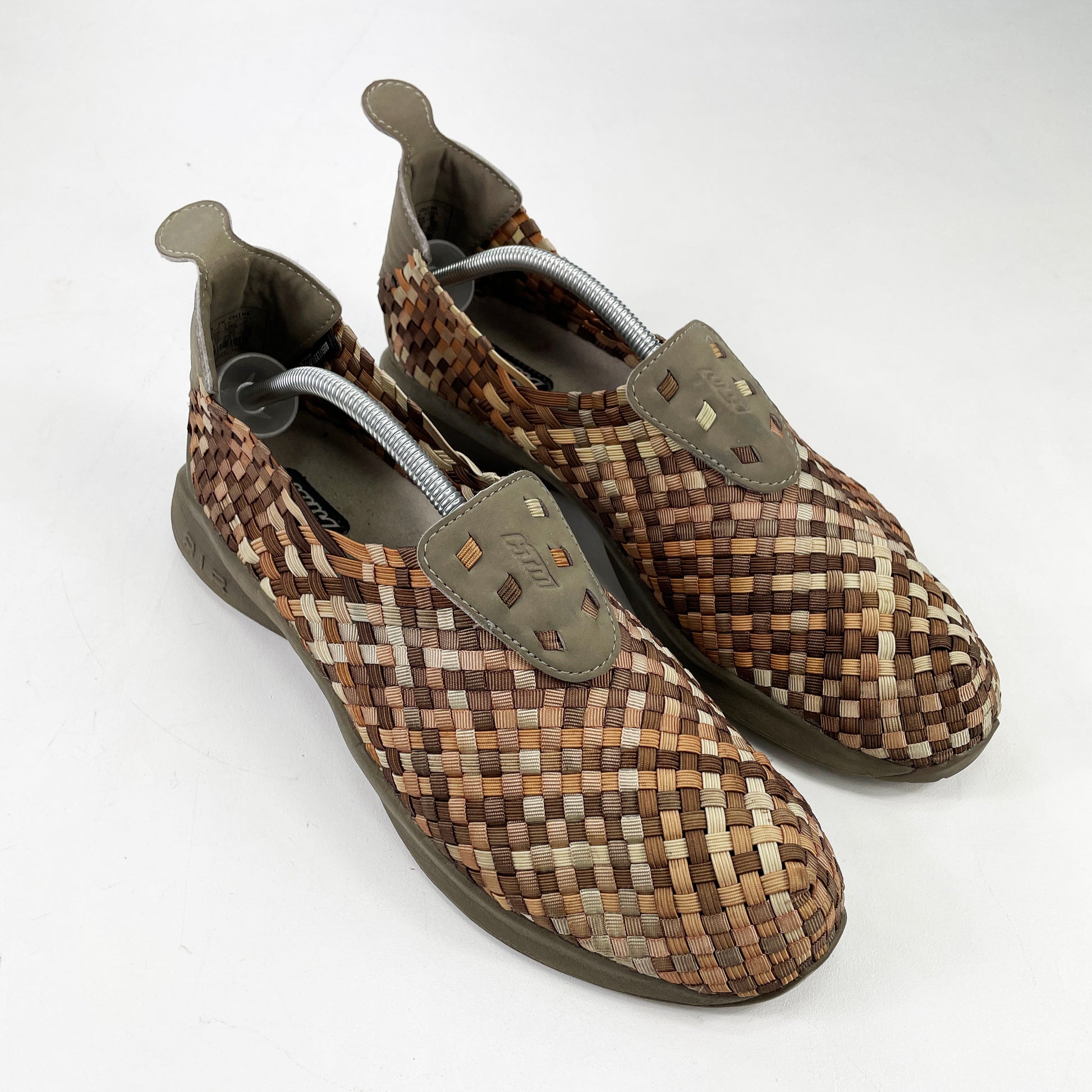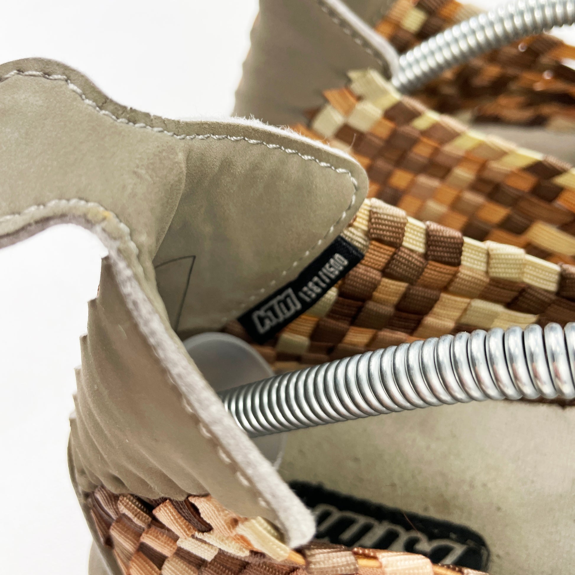 The Air Woven was first introduced in 2000, it was designed by Mike Aveni. Here we have 2 of those pairs, which were limited to 1500 per colourway. This hand-woven shoe is regarded as one of the most fascinating sneakers of the millennium, almost looking more ancient than contemporary. The Phylon midsole with Air technology makes for maximum comfort. The brown pair is numbered 1387/1500 and the rainbow pair is 1146/1500. Both pairs are immaculate with OG box. Both pairs fit big!