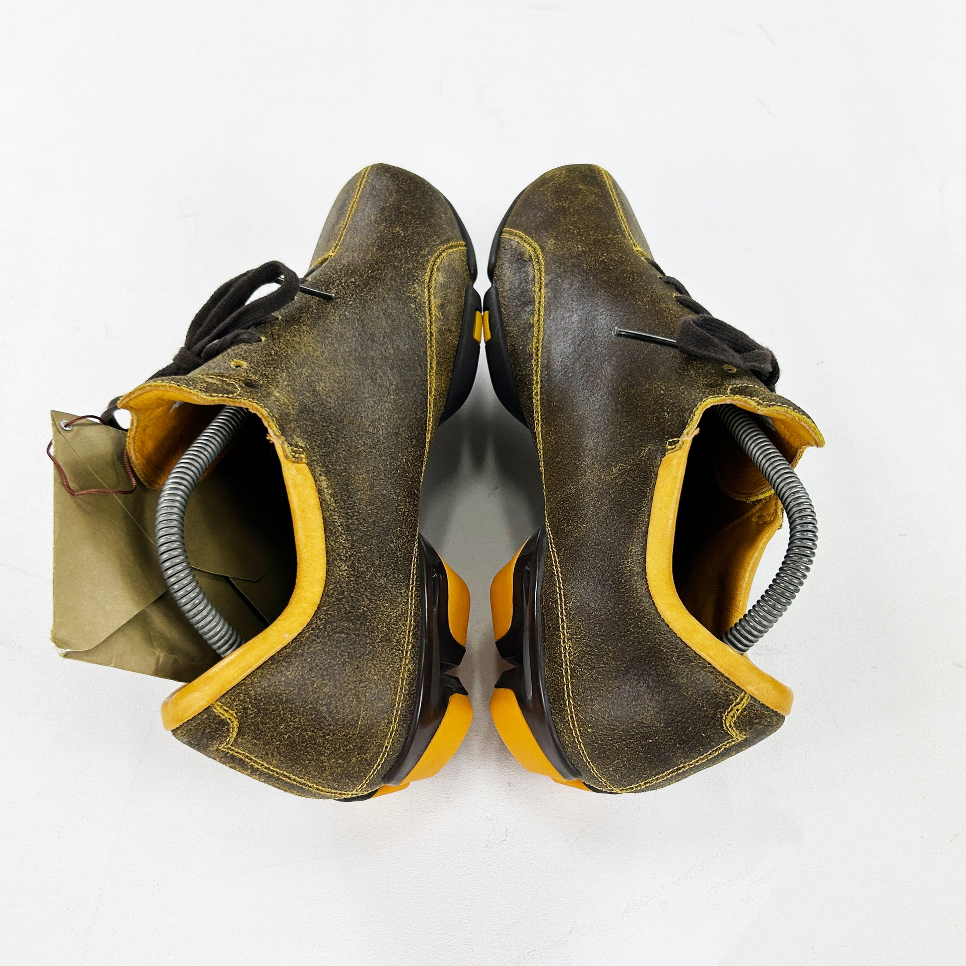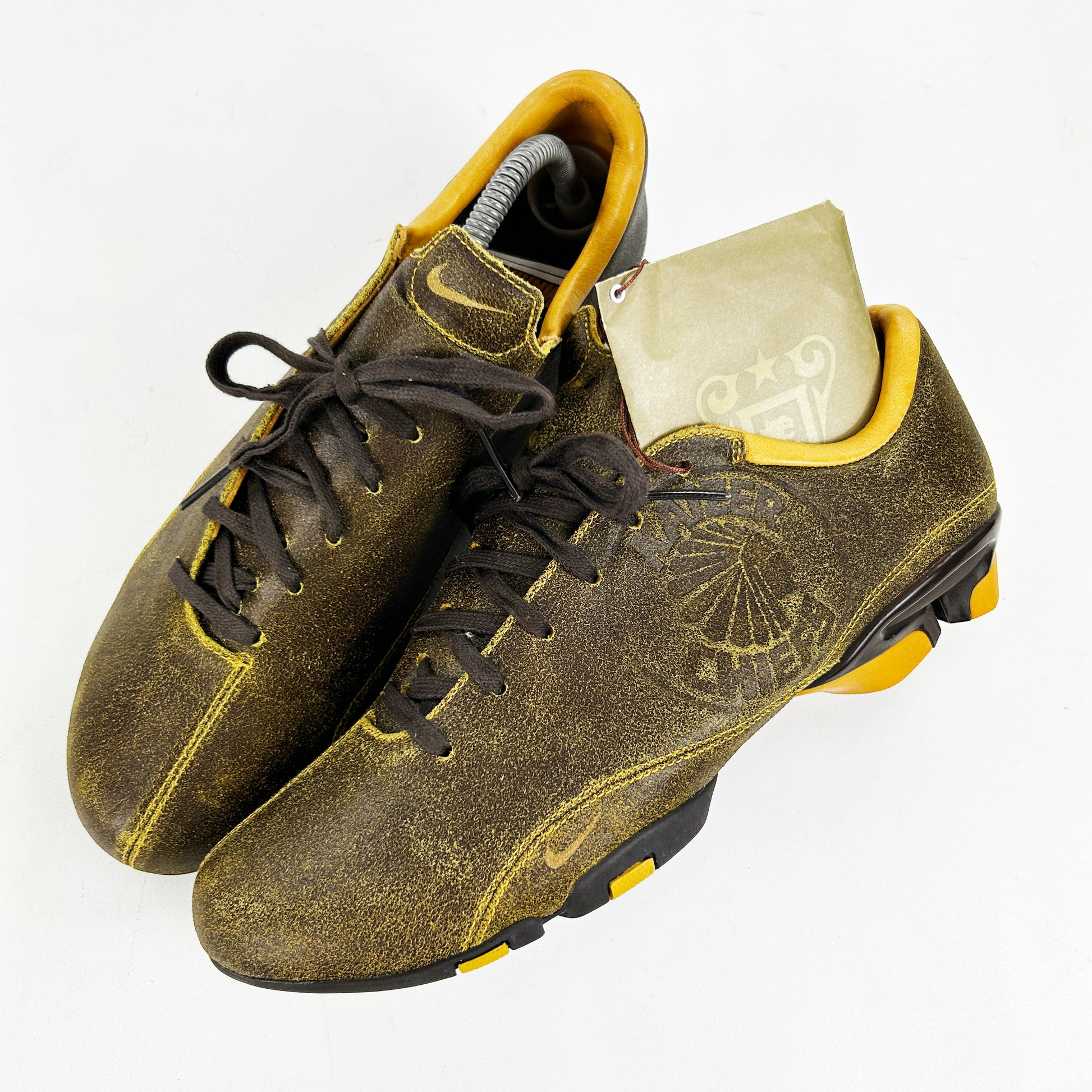 In 2005 Nike released the 'World Football' pack - surprisingly information on this pack is fairly scarce. What we do know is that it was a deep dive into global football from all corners of the globe, "uncovering stories that celebrate what makes the world's game the beautiful game". Nike chose 7 teams and released shoes inspired by each of them. Previously, we've had the Republica de la Boca Zoom FCs in stock, we also house New York Americans Zoom FC in our archive. This particular pair however is a serious step above the rest, the materials, panelling and sole tooling are all nothing short of remarkable. Particularly fond of the dart detailing on the tongue, adding shape for the Swoosh to protrude more. Alongside this model, the Kaizer Cheifs (a club hailing from South Africa), got a second model, which resembles a Zoom FC with some slight alterations, albeit in the same cracked leather. If you know anymore about this project please shed some light in the comments! These are undeniably rare. A seriously beautiful example of footwear design, made even better by the project they represent and the mystery that surrounds them. Brand new, with the extras pictured - no box. Pure obscurity. See policies before purchase.