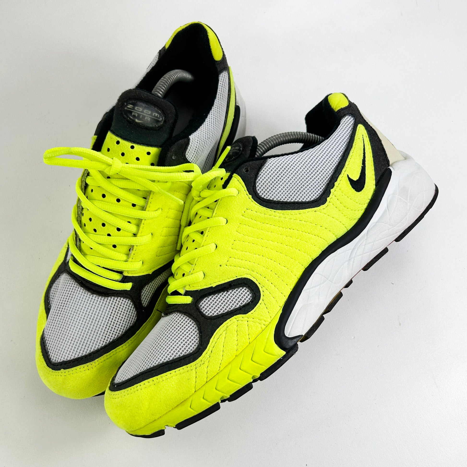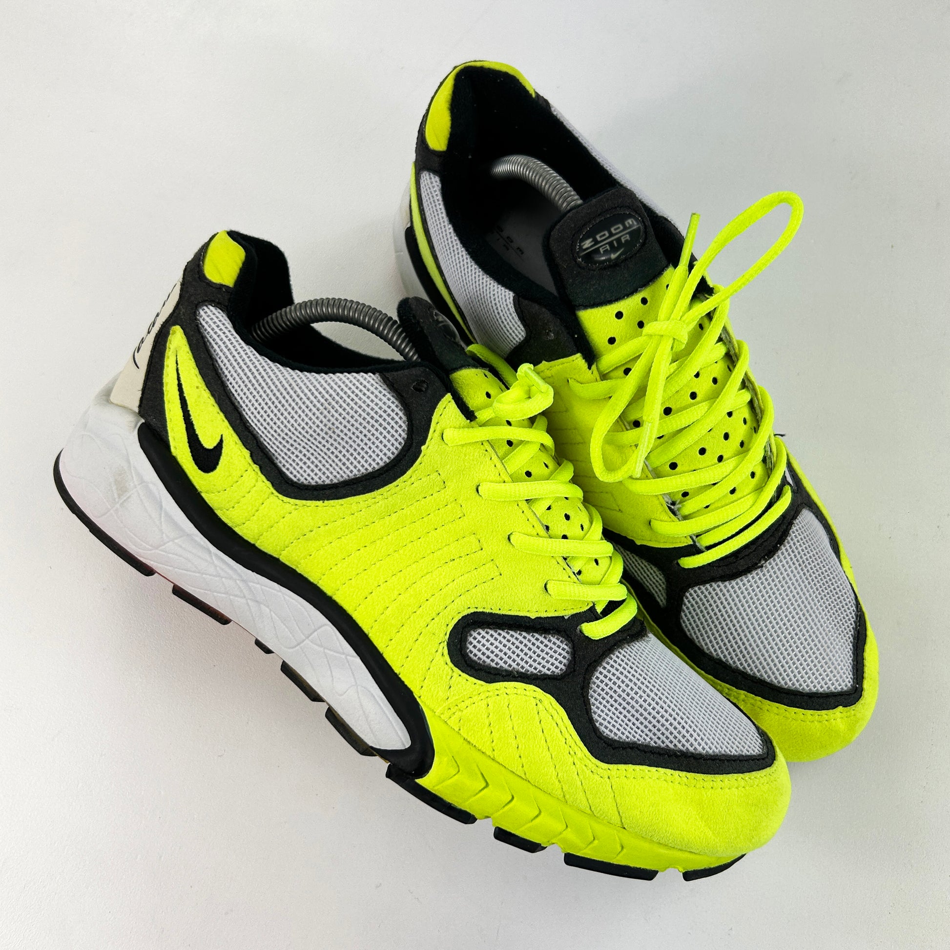 The original Nike Air Zoom Talaria made its debut in 1997 as one of the first Nike running sneakers to feature Nike Zoom Air. In addition, the sneaker featured flex grooves on the outsole and a combination of running suede and mesh on the upper. The nostalgic sneaker gets its name from the sandals worn by a messenger to the gods. This original 1997 pair remains in amazing condition, worn once or twice since new. Comes with OG box. Please read policies before purchase.