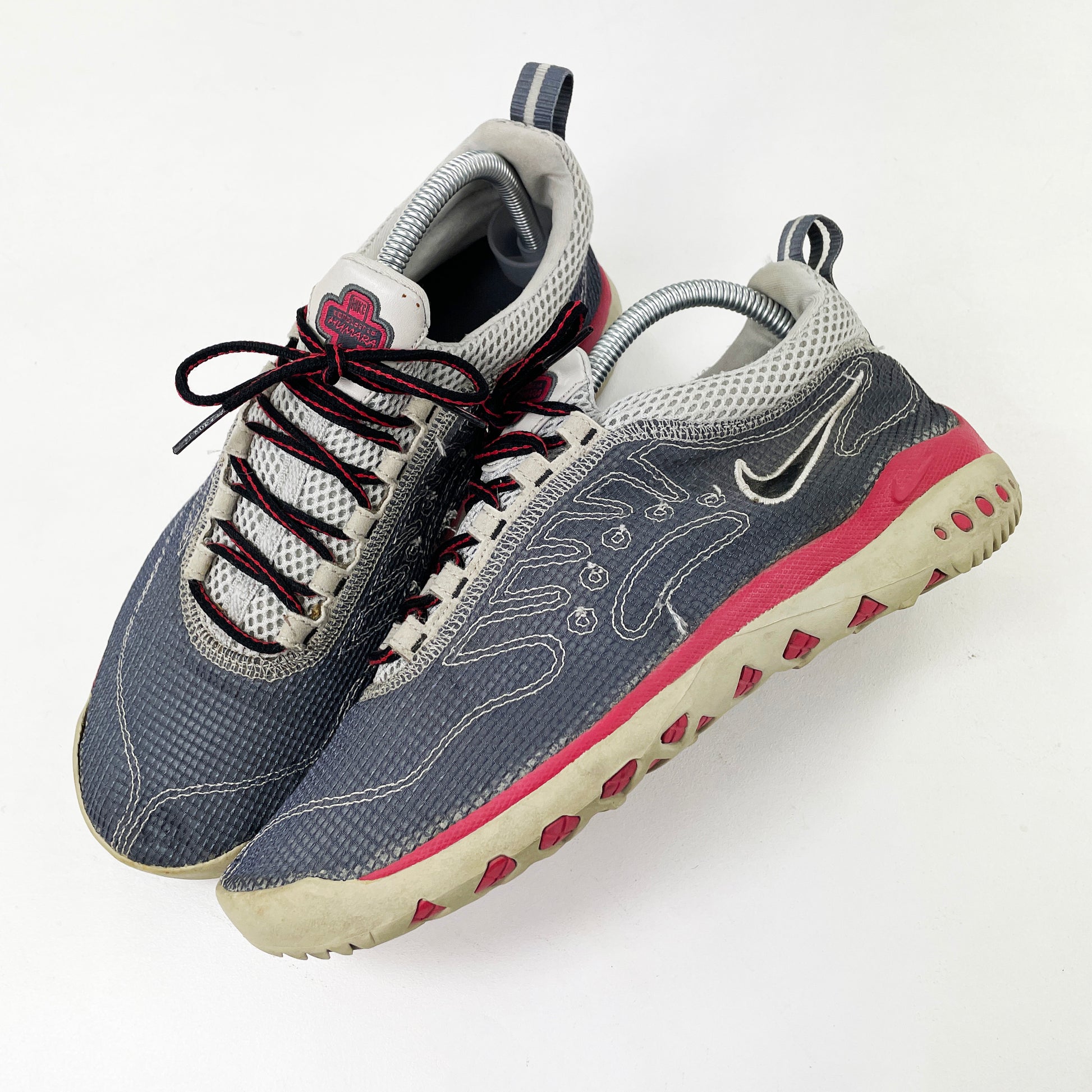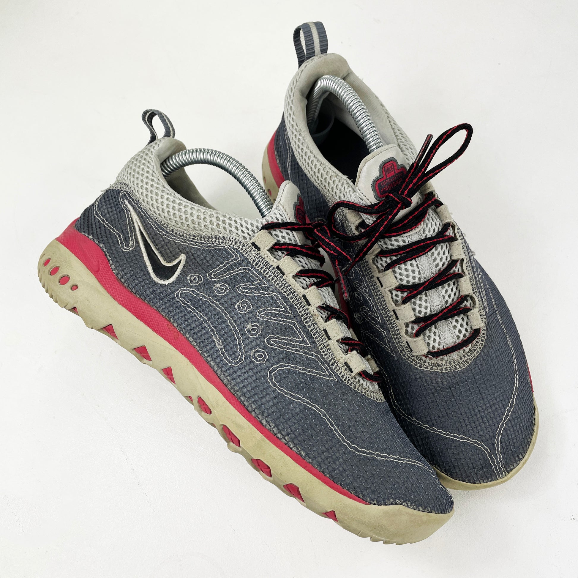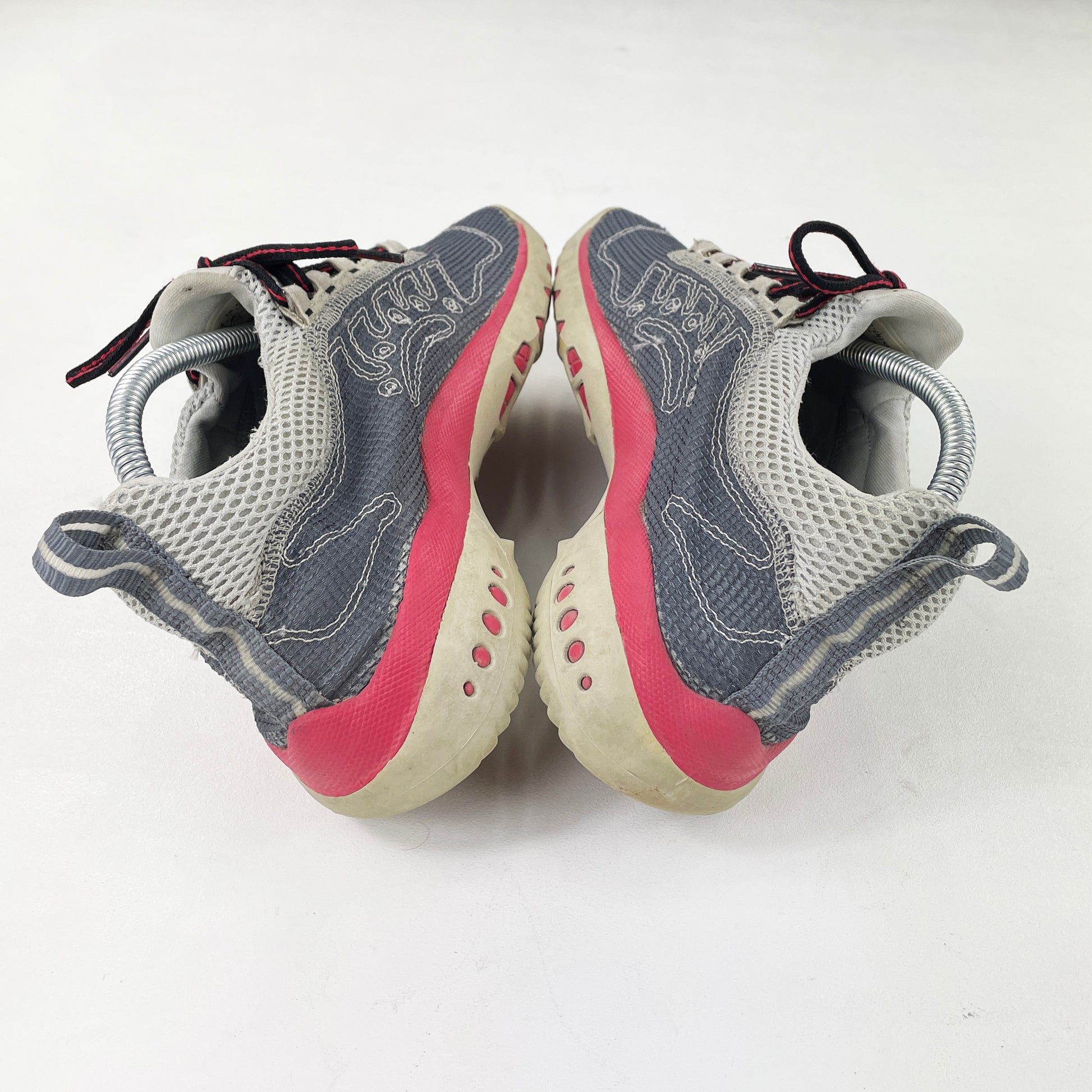 A classic @peterfogg design eco-consciously reimagined. The design has been simplified, with an entirely mesh upper and stitch detailing resembling the original Humara panelling. The sole unit has also been simplified, with the air unit removed. Circular detailing can still be seen on the heel, again resembling the original design. Good used condition, rarely come up for grabs.