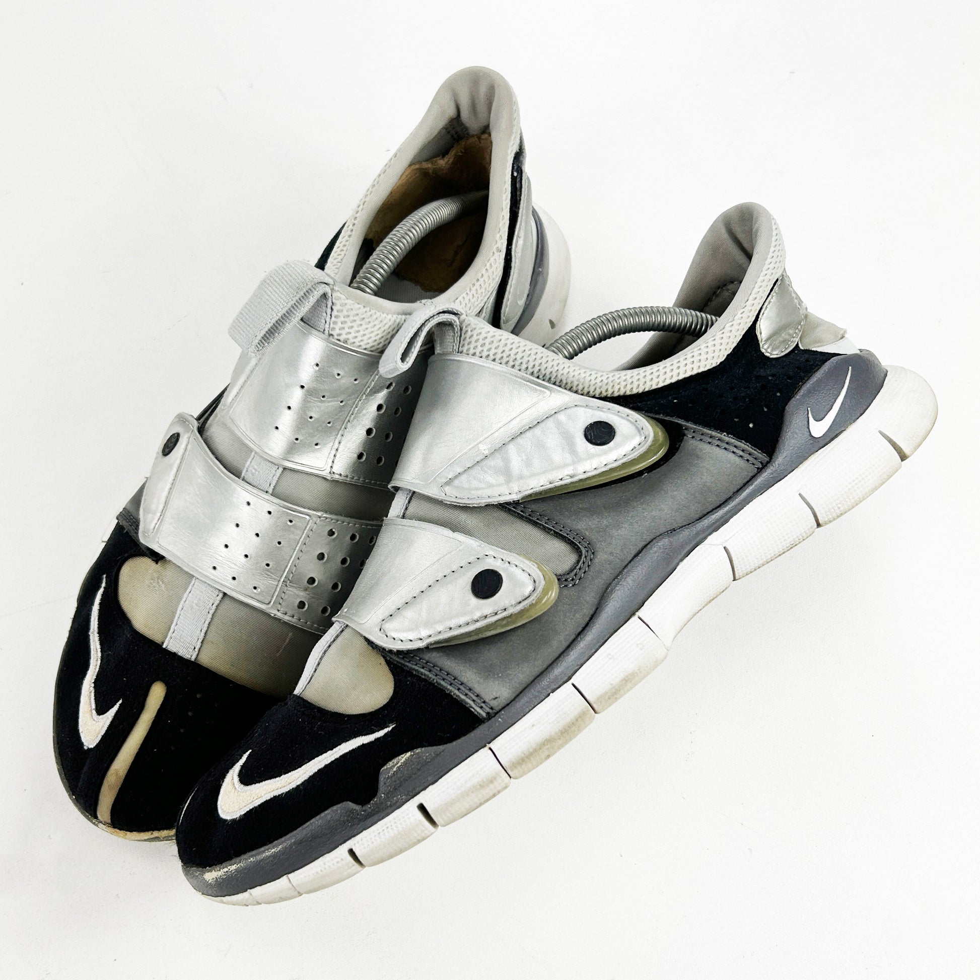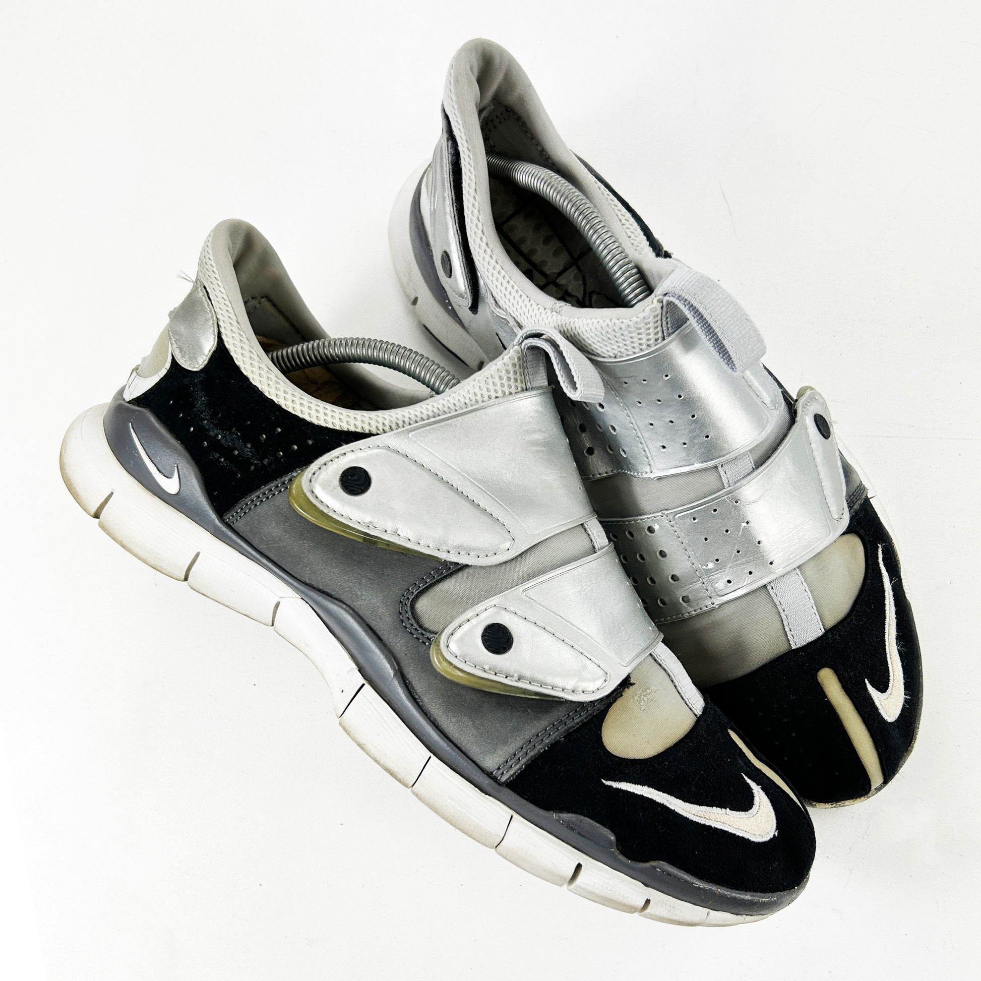 One of a handful of early Nike models featuring the Free Run 4.0 sole tooling. This 'Triple Strap' model (don't think that's the actual name..) was by far the most futuristic looking silhouette from the early Free Run lineage, I can see some design cues leaching through from the 04 HTM models. Absolutely love these, would be keeping if they were my size. Never seen another pair, besides a UK9 we have coming in soon! Worn, vintage condition. Incredibly rare, and weirdly hard to find any info on! See policies before purchase.